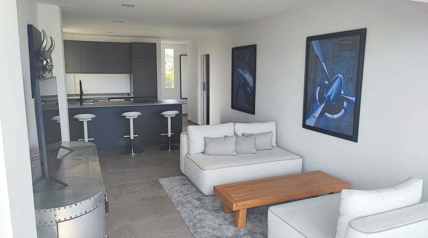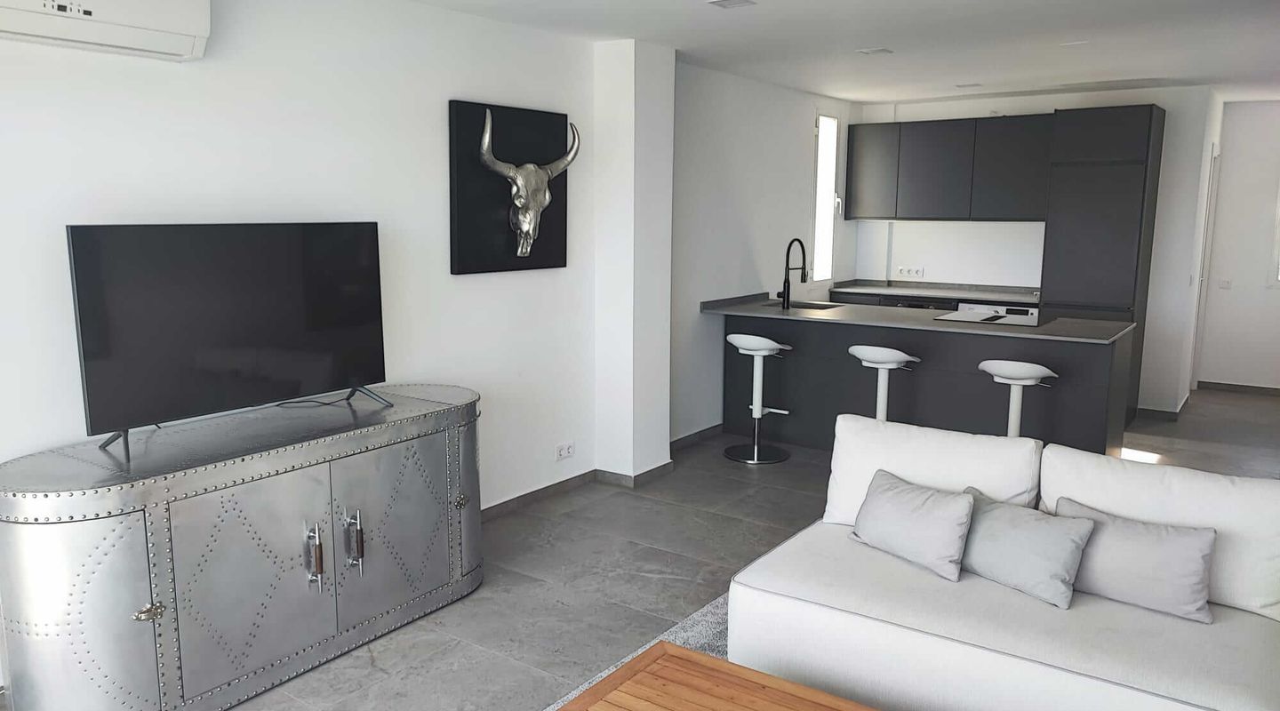 La cocina, moderna y bien diseñada, está perfectamente equipada y conduce al salón, luminoso y acogedor. Éste dispone de aire acondicionado para el verano o de calefacción en invierno.