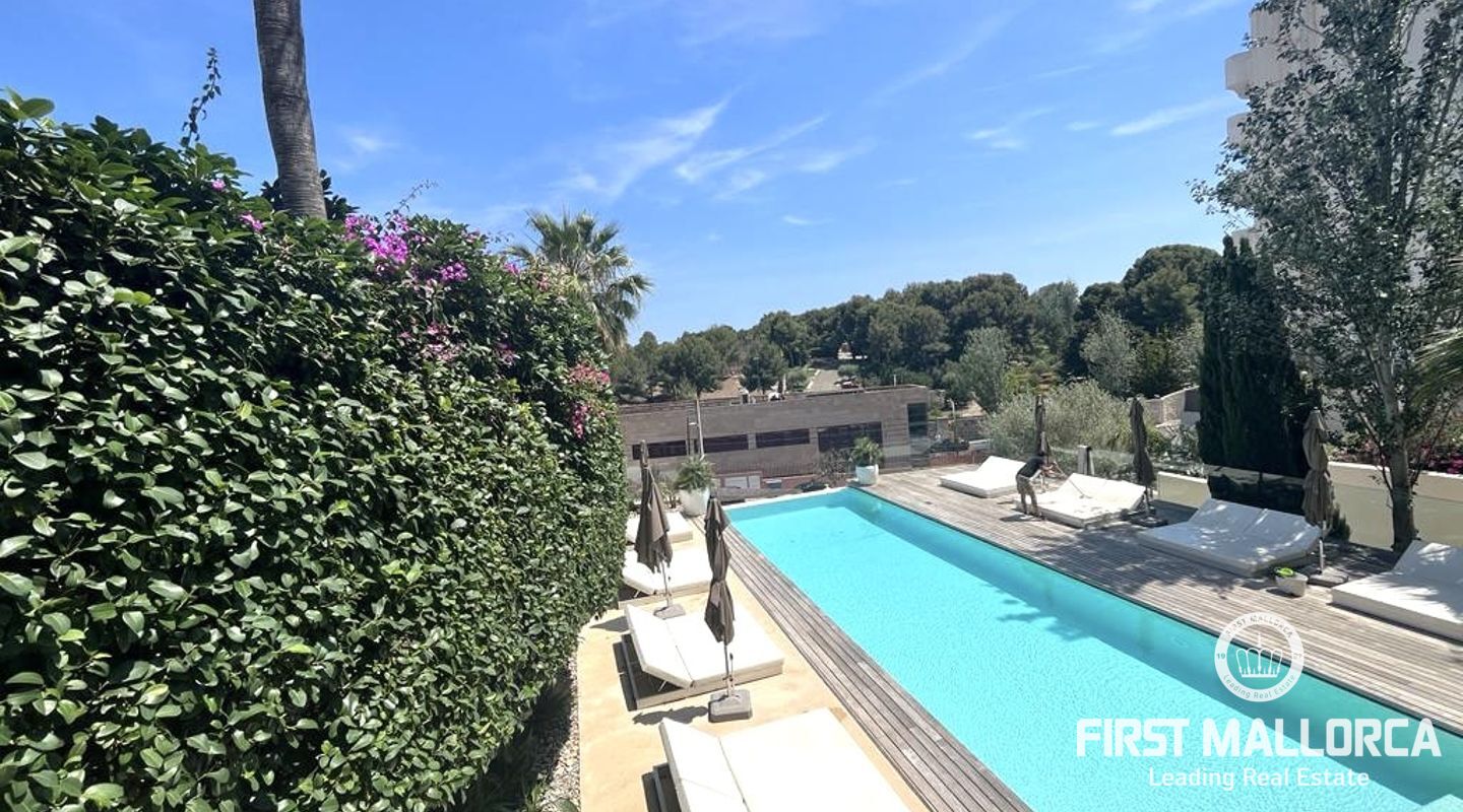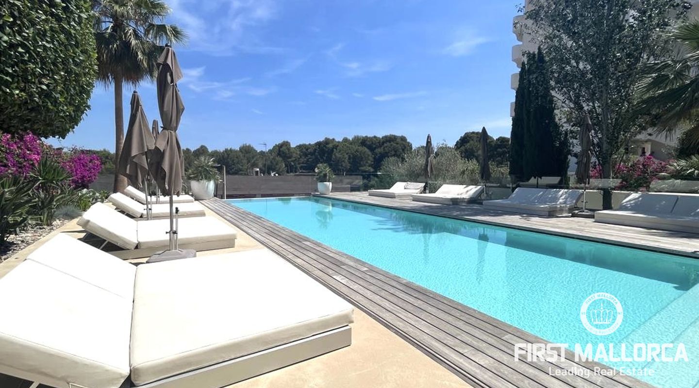Descubra la casa de sus sueños en Cala Major: ¡un moderno apartamento totalmente amueblado en un exclusivo complejo de solo 10 unidades! Con una superficie aproximada de 110 m², le espera un elegante salón-comedor, una cocina abierta de alta calidad, tres luminosos dormitorios, dos elegantes baños y un vestidor, todo ello diseñado con gran atención al detalle. Disfrute de los días soleados en la magnífica piscina comunitaria, rodeada de exuberante vegetación mediterránea. El elegante equipamiento incluye aire acondicionado, calefacción por suelo radiante, ventanas de doble acristalamiento y televisión por satélite, para disfrutar del máximo confort durante todo el año. ¿La ubicación? ¡Perfecta! A solo unos pasos de la playa, supermercados, bares de moda y excelentes restaurantes. Esta propiedad no solo ofrece lujo, sino también calidad de vida al más alto nivel. Ideal como segunda residencia o inversión en Mallorca.