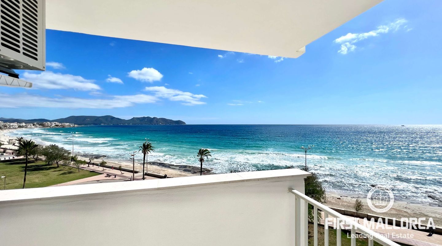 Este exquisito apartamento fue recientemente reformado en 2024 y ofrece no sólo un confort moderno, sino también impresionantes vistas al azul del mar Mediterráneo. Disfrutará de una ubicación privilegiada en Cala Millor, uno de los complejos costeros más codiciados de Mallorca. La propiedad está situada en primera línea de mar, a pocos pasos de la playa de arena fina de Cala Millor. La exclusiva ubicación no sólo le ofrece acceso directo a la playa, sino también una gran variedad de tiendas, restaurantes y opciones de entretenimiento en las inmediaciones para jóvenes y mayores. El piso tiene un dormitorio, que es espacioso y ofrece mucho espacio para noches de descanso. El cuarto de baño cuenta con una amplia cabina de ducha y grifería de alta calidad que combina comodidad y funcionalidad. La flamante cocina amueblada está totalmente equipada con frigorífico-congelador, lavavajillas y una elegante placa vitrocerámica. Lo más destacado de esta propiedad es sin duda la amplia terraza con vistas panorámicas al mar. Ofrece mucho espacio para pasar agradables veladas al aire libre y relajarse tomando el sol. Los aparatos de aire acondicionado instalados garantizan temperaturas agradables durante todo el año. Los modernos azulejos y la atractiva iluminación realzan el apartamento. Un ascensor en el edificio proporciona un cómodo acceso directo al piso. Todos los servicios se encuentran en las inmediaciones y por lo tanto a poca distancia a pie. Tanto si desea relajarse en la terraza, dar un paseo por la playa o explorar las numerosas actividades de ocio del barrio, aquí podrá experimentar el estilo de vida mediterráneo en su máxima expresión. No dude en aprovechar esta oferta única y concertar una visita hoy mismo.