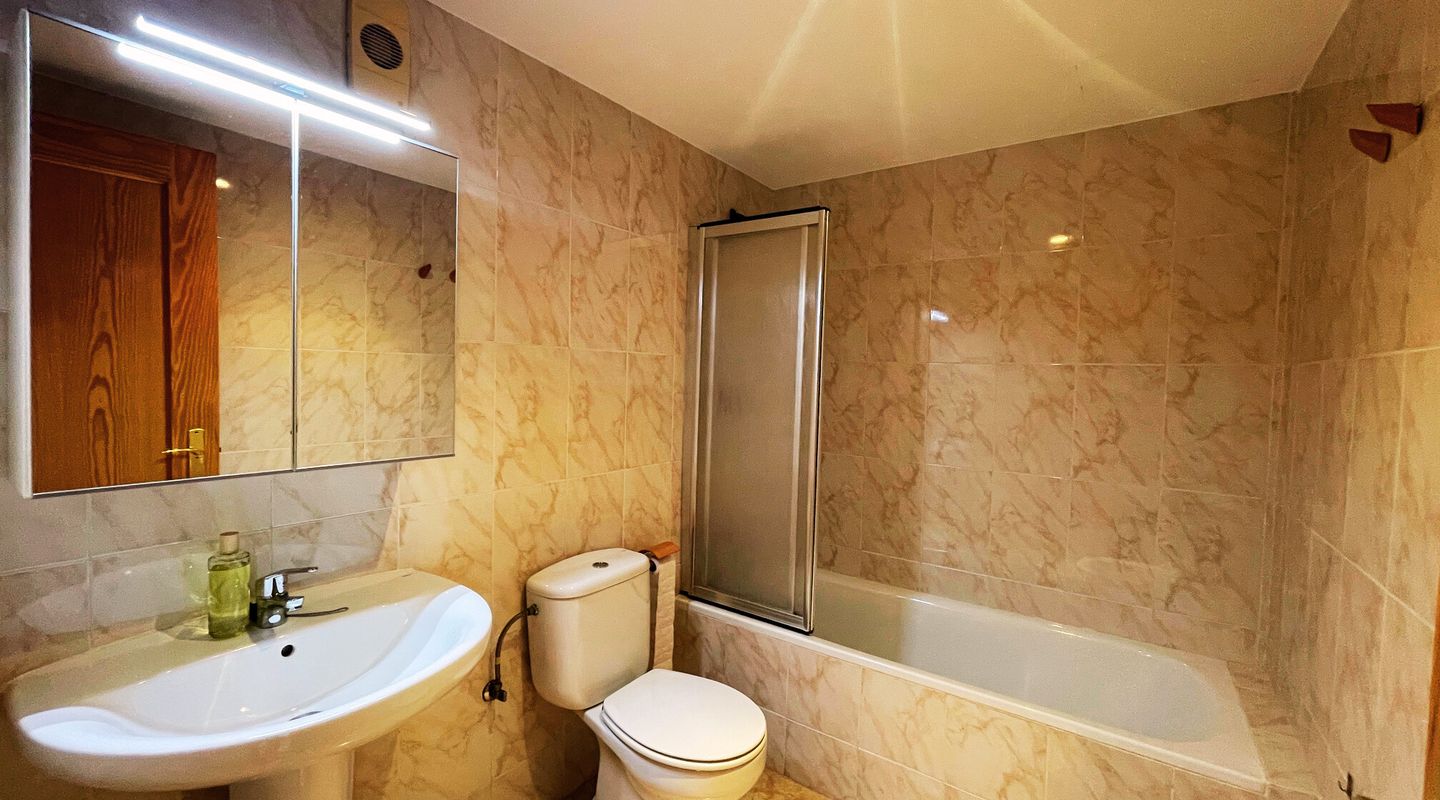 El apartamento se encuentra en un edificio de tan solo 6 viviendas y ofrece las siguientes estancias en 96 m² de superficie habitable: 3 habitaciones dobles con armarios empotrados, 2 baños (uno en suite), salón-comedor, una soleada terraza orientada al suroeste y cocina con lavadero. Dispone de ventanas de aluminio, cocina totalmente equipada, aire acondicionado (frío/calor), ascensor, etc. Dispone de una plaza de parking privada justo enfrente del edificio. Excelente ubicación, cerca de zonas verdes, supermercados, restaurantes, la playa, etc.