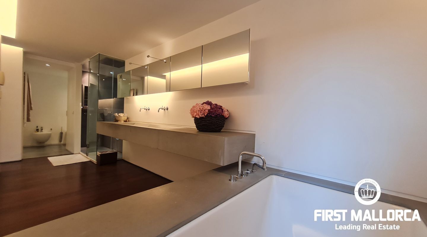 Este apartamento muy singular goza de un ambiente maravilloso y vistas parciales al mar a través de las verdes vistas de Cas Catala. El interior de diseño invita a relajarse y descansar en un oasis privado dentro de una comunidad muy pequeña con piscina y ascensor a todos los niveles. La propiedad fue reformada hace varios años y está en excelentes condiciones con la siguiente distribución que comprende un luminoso salón con zona de comedor y grandes puertas de cristal que dan a la terraza. La cocina moderna tiene un lavadero adyacente con mucho almacenaje y además hay 2 dormitorios y 2 baños, el principal es una habitación muy generosa con dos vestidores, un baño lujoso con sensación de spa, una ducha sauna turca, una bañera grande y vistas a la terraza.