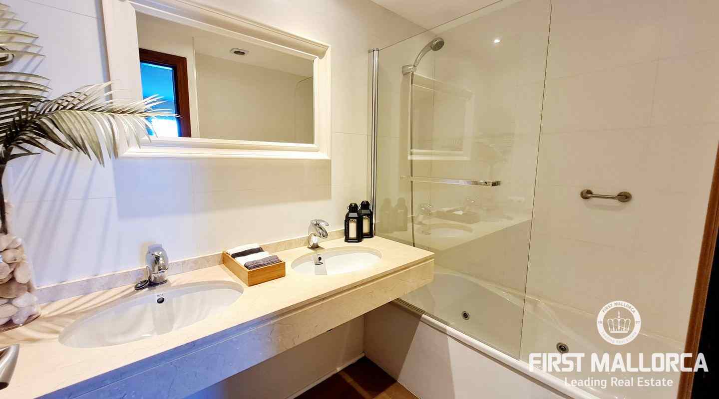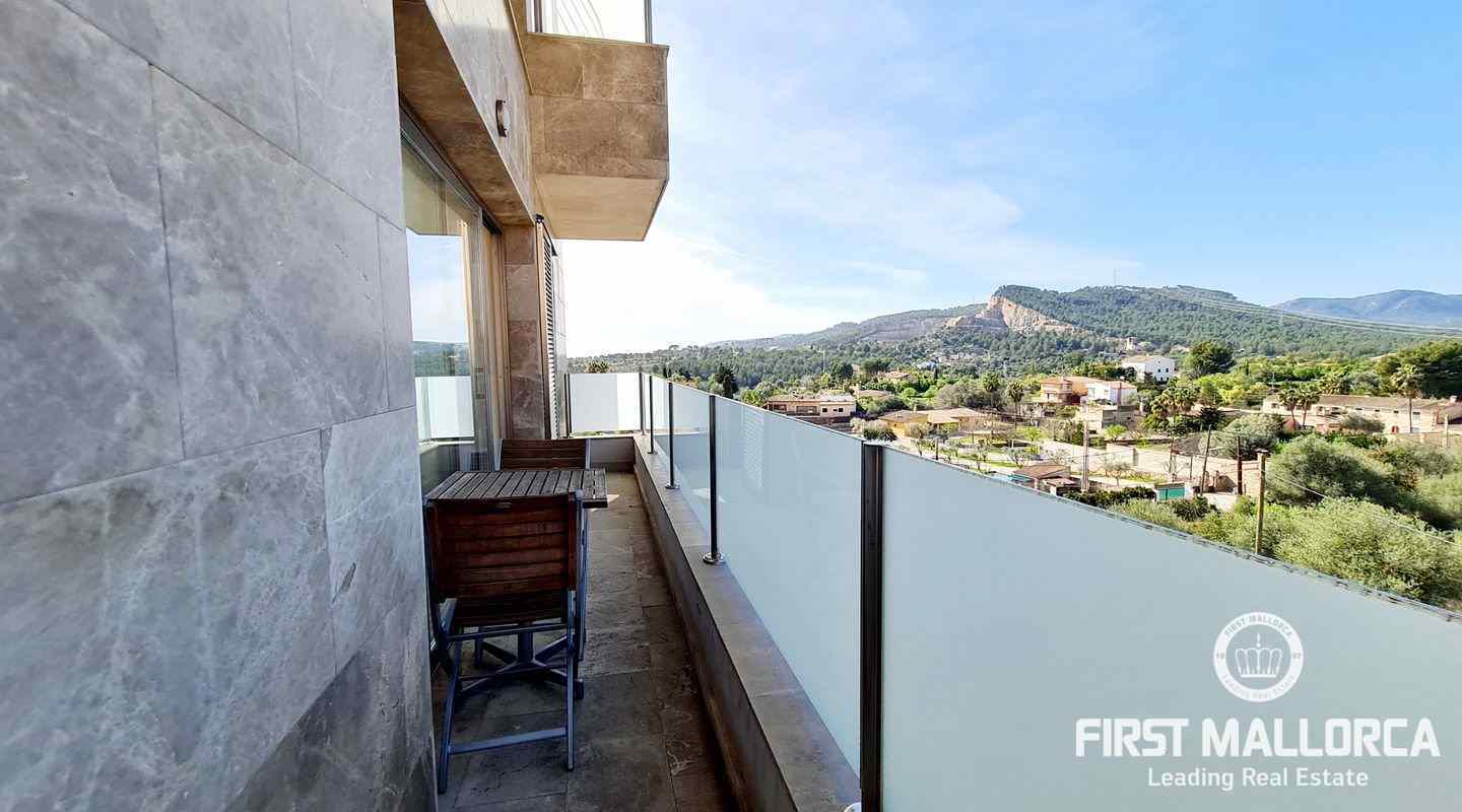 Se trata de un acogedor y confortable apartamento en primera planta, en un edificio de reciente construcción, con asensor, de tan solo seis viviendas. Se encuentra a 10 minutos del centro de Palma en coche y a poca distancia a pie del centro de Establiments. Perfecto para disfrutar de la tranquilidad que nos ofrece su ubicación y de su importante vista al valle y a la Sierra de la Tramuntana. Consta de una cómoda cocina completa, totalmente equipada y abierta a un elegante y moderno salón-comedor, dos luminosos dormitorios de buen tamaño y dos baños en suite. Cabe destacar su largo balcón con sus esplendidas vistas. Plaza del parquing incluido en el precio.