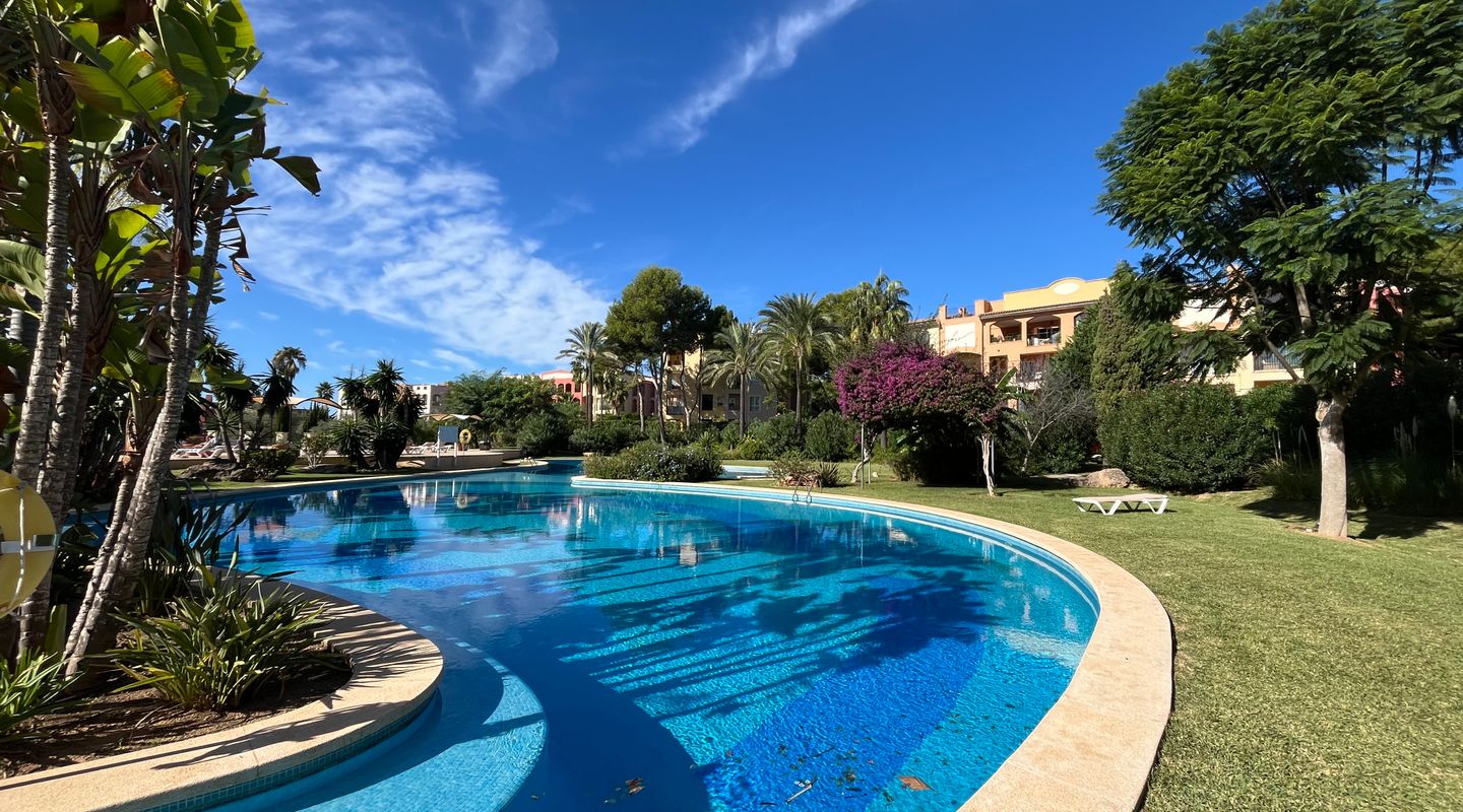Un moderno y elegante apartamento de dos dormitorios y dos baños con una soleada terraza en una exclusiva comunidad cerrada junto a campos de golf y cerca de la playa. La propiedad se encuentra a pocos minutos del elegante puerto deportivo de Port Adriano, con sus boutiques, cafeterías y restaurantes. La comunidad ofrece encantadores jardines y una gran piscina.