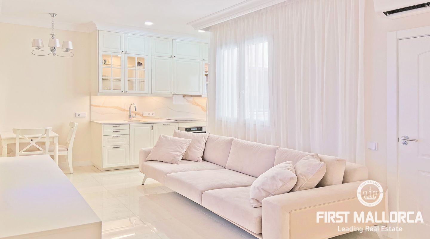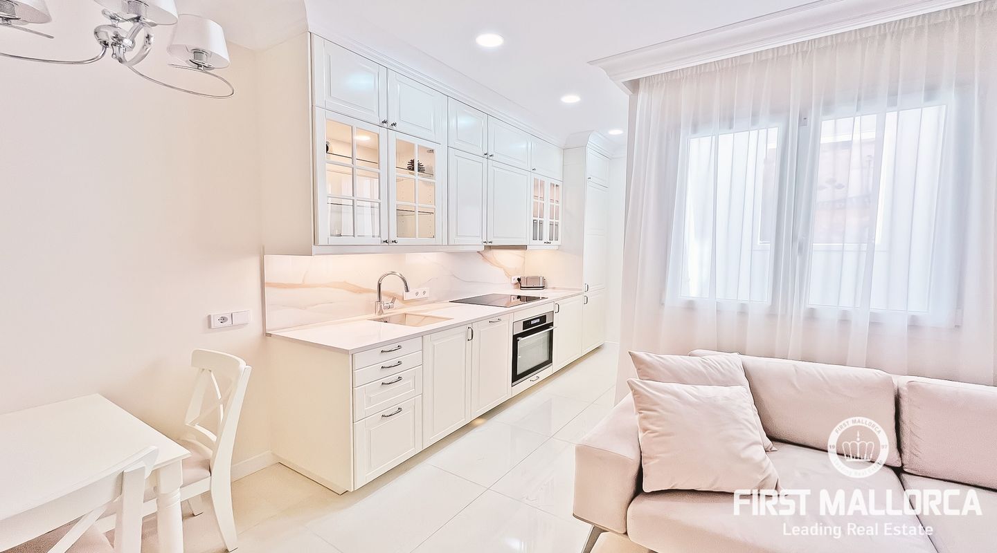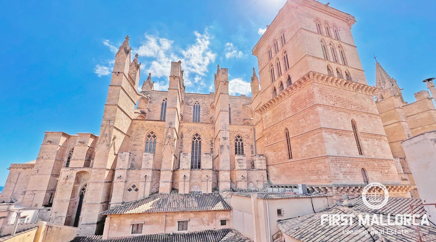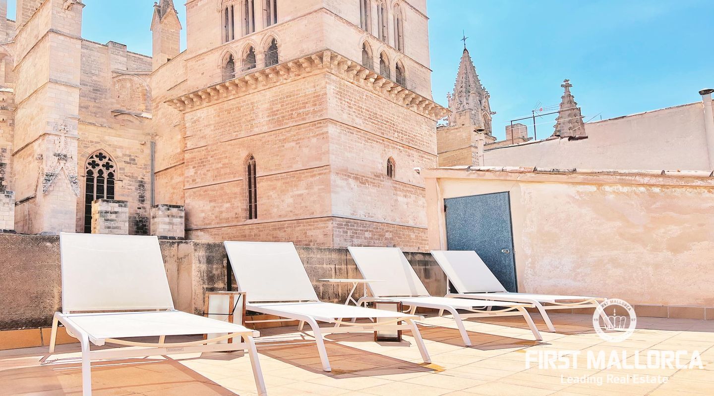 Este singular piso, completamente reformado, está situado en el centro histórico de Palma de Mallorca, junto a la Catedral de Palma. La vivienda se distribuye en un salón con comedor, una cocina americana totalmente equipada, dos dormitorios, un baño completo y dispone de aire acondicionado frío/calor, suelos de parquet y armarios empotrados. Su estratégica ubicación le permite estar cerca de tiendas de moda, centros culturales y restaurantes, bares y cafeterías, y a tan sólo 5 minutos del Borne o Plaza Mayor y a un corto paseo del Paseo Marítimo. El piso dispone de una amplia terraza comunitaria con magníficas vistas a la catedral y al encanto del casco antiguo, así como vistas al mar. Se encuentra en una segunda planta sin ascensor.