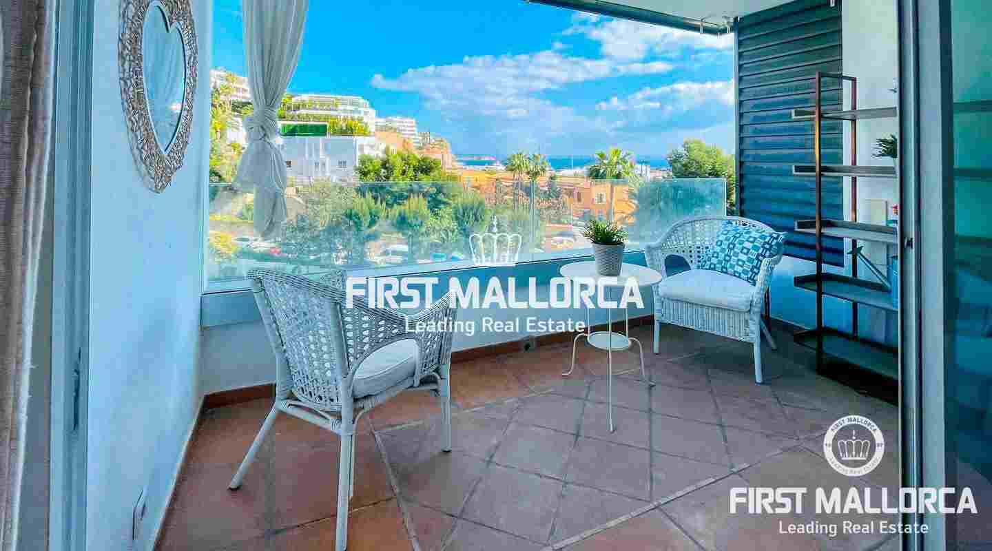 Disfrute de una vista indescriptible del puerto y el mar en este acogedor apartamento en una ubicación exclusiva en primera línea de mar directamente en el moderno puerto deportivo de Puerto Portals.