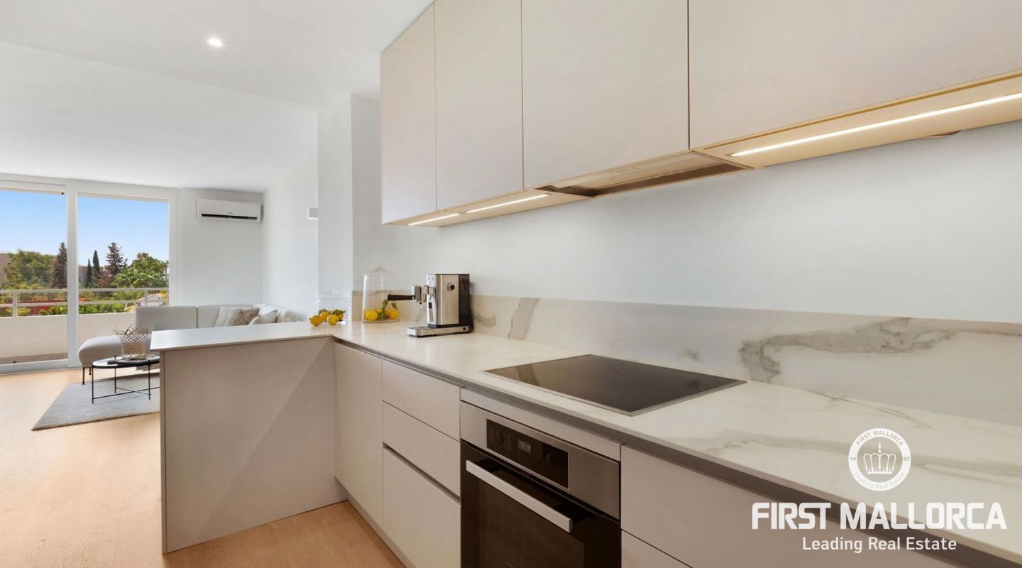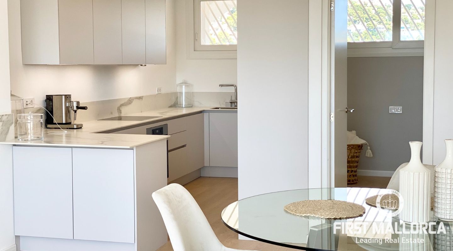 Este apartamento de 3 dormitorios completamente reformado cautiva con mucha luz y elegancia. Luminoso y amueblado con muy buen gusto, ofrece este apartamento un hogar moderno tanto para las vacaciones como para la residencia durante todo el año. La ubicación está a poca distancia de todos los servicios que Portals Nous tiene para ofrecer, así como la hermosa playa de Portals está a sólo 10 pasos de distancia. Preciosa terraza con vistas parciales al mar y lavadero independiente. Cocina abierta y moderna. La ciudad de Palma está a sólo 10 minutos en coche.