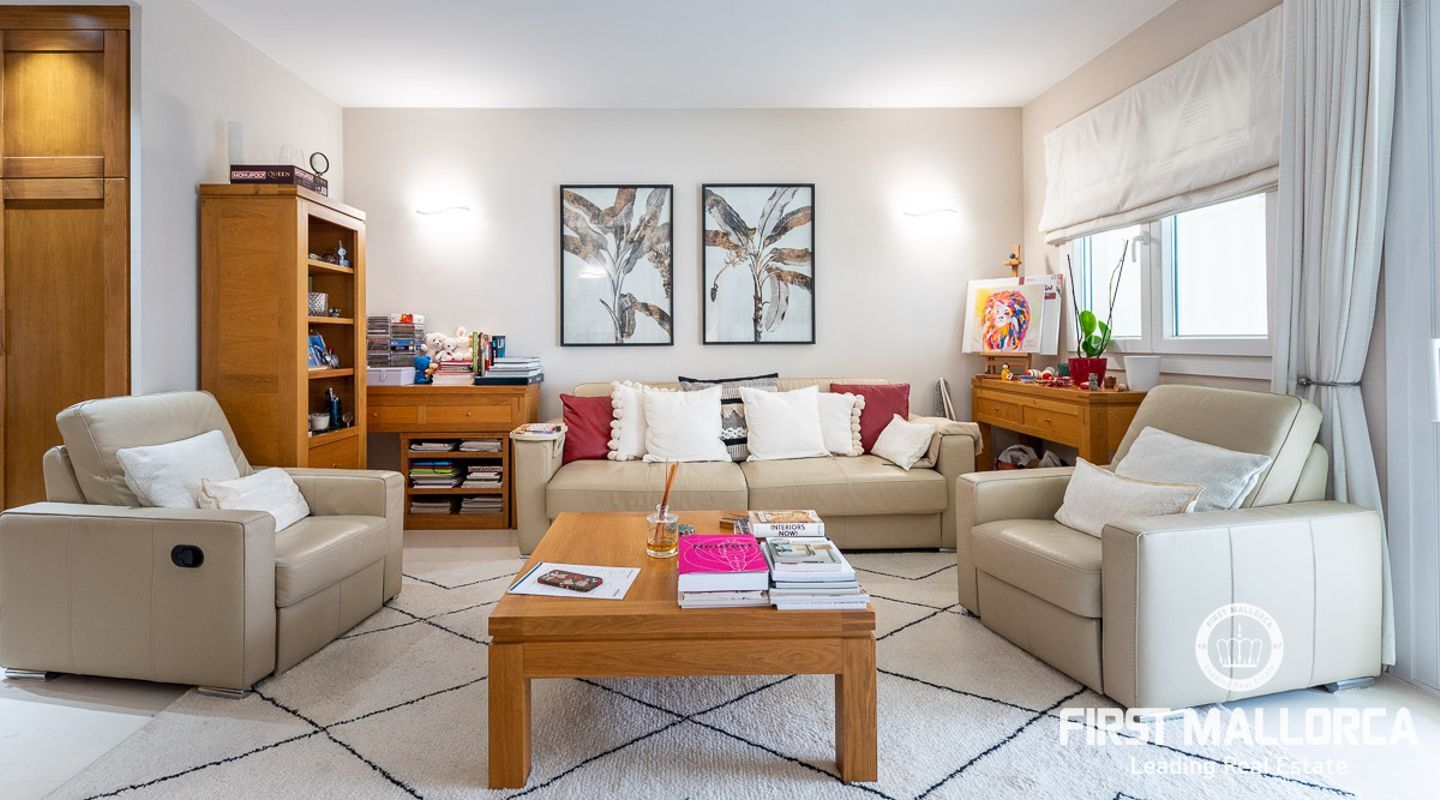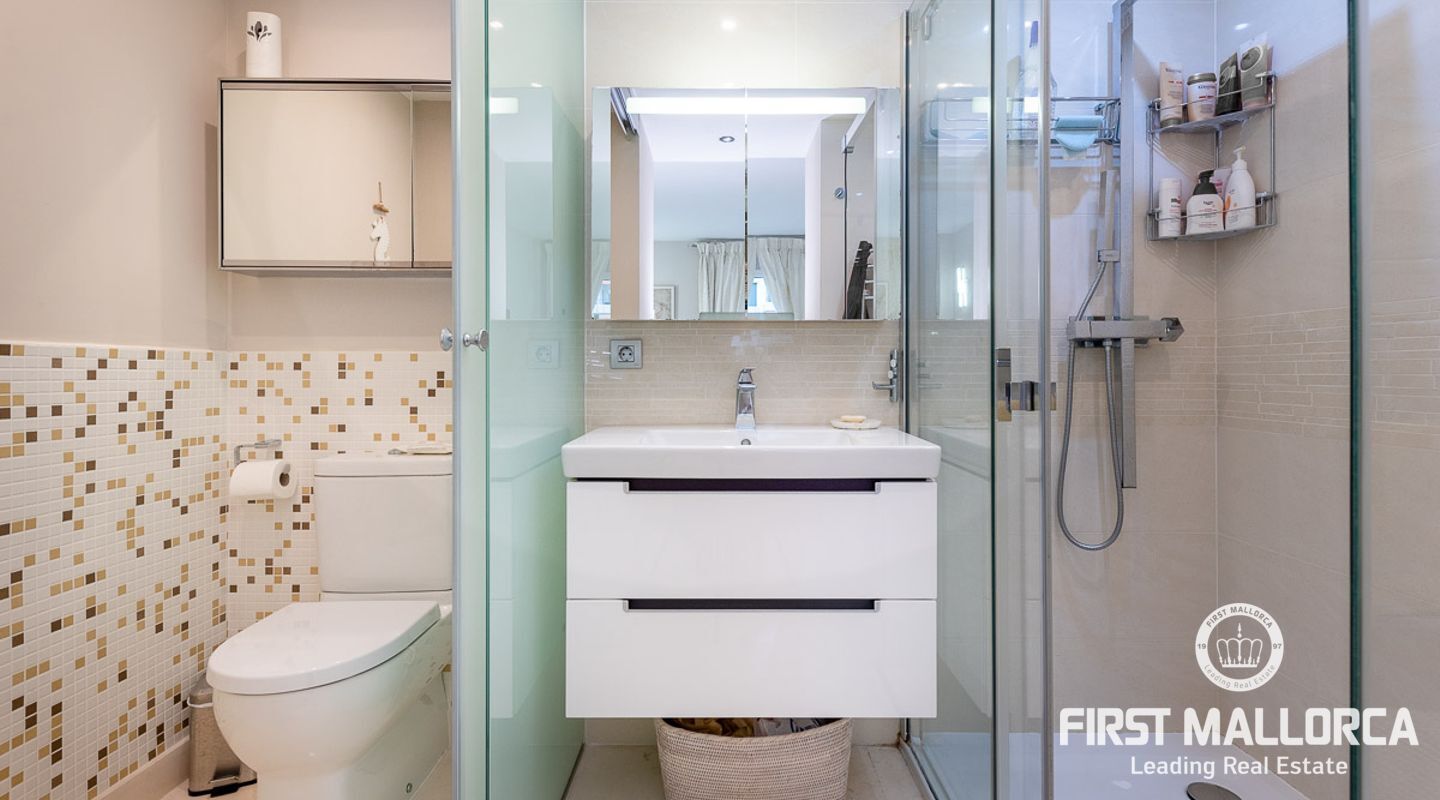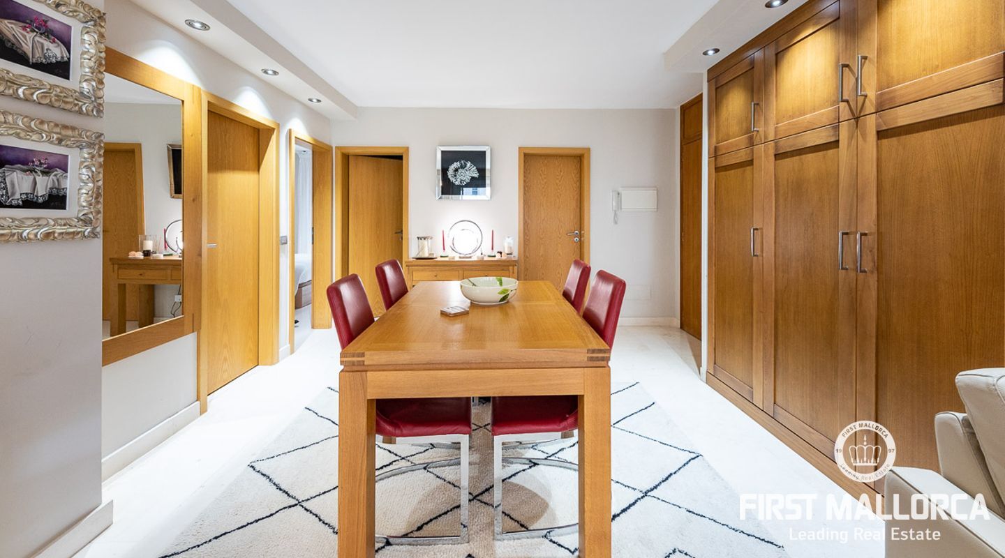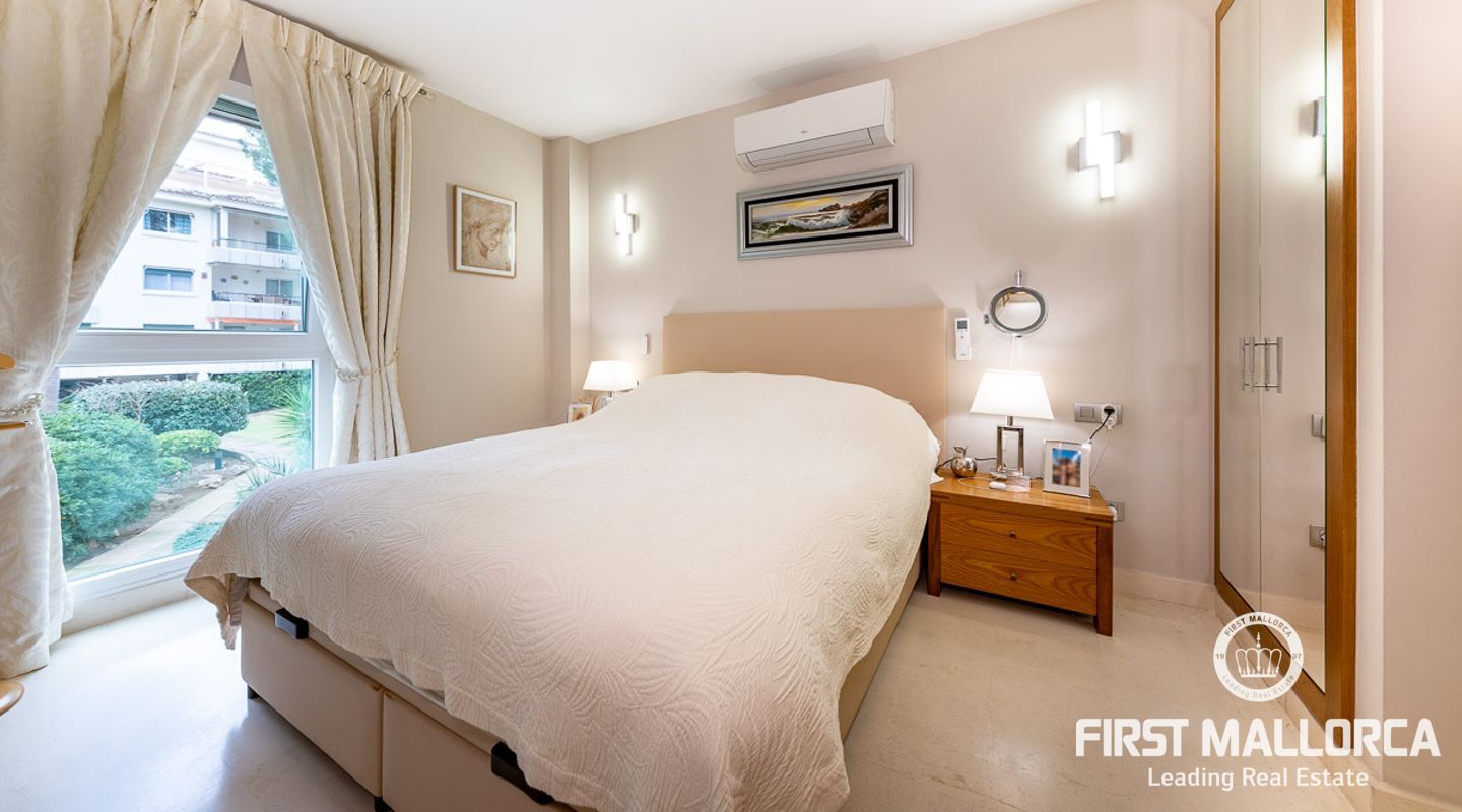 La propiedad se encuentra dentro de una urbanización bien cuidada que disfruta de preciosos jardines y acceso directo a una playa de arena desde la comunidad. El apartamento tiene vistas parciales al puerto deportivo de Puerto Portals desde su soleada terraza cubierta. El lugar ideal para vivir junto a la playa y poder ir andando a todos los servicios locales.