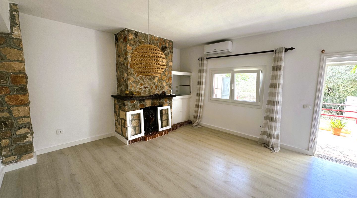 El piso ha sido recientemente renovado y modernizado por completo y ofrece espacio para dos dormitorios y un baño, así como una sala de estar de planta abierta con chimenea y acceso a la gran terraza y jardín.