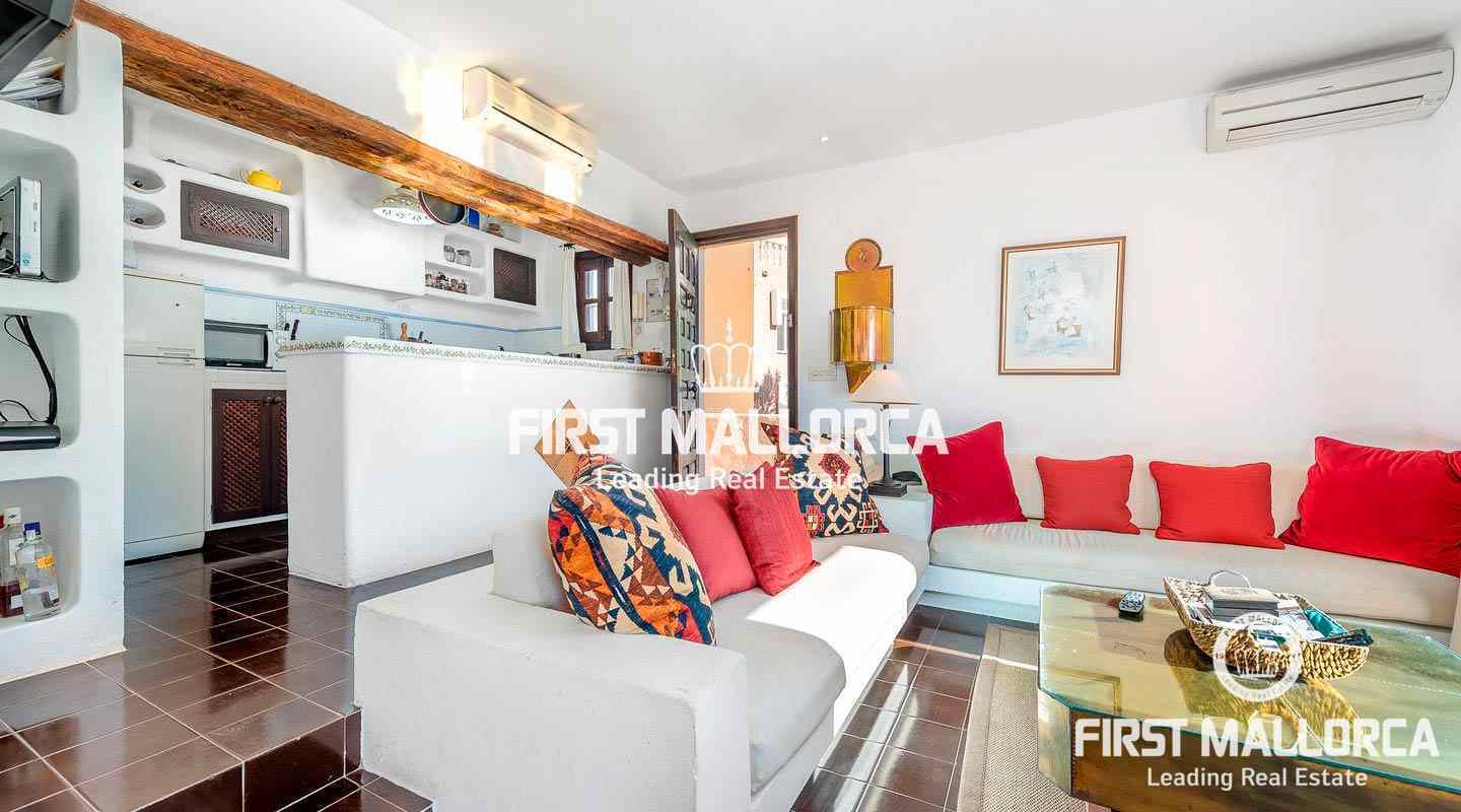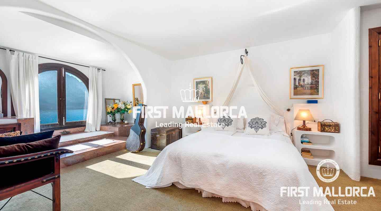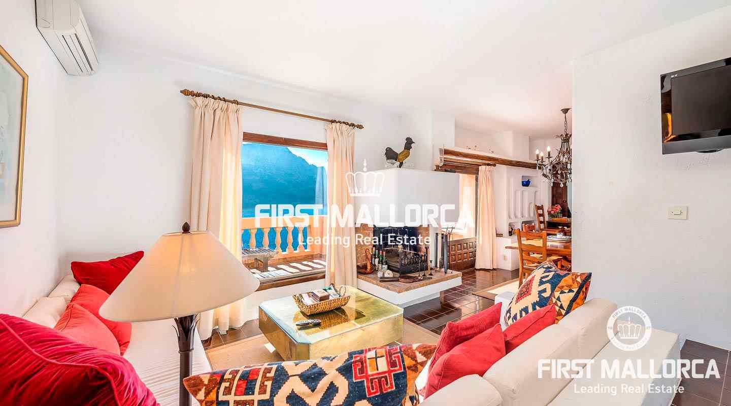 Este apartamento de estilo mediterráneo en primera línea goza de magníficas vistas de Cala Llamp y acceso directo al mar. La propiedad cuenta con 2 dormitorios, cada uno con baño en suite, y una cocina abierta al salón. El apartamento impresiona sobre todo con sus hermosas terrazas con vistas a los yates anclados en la bahía y la amplia área de piscina de la pequeña comunidad diseñada por el arquitecto Otzoup.