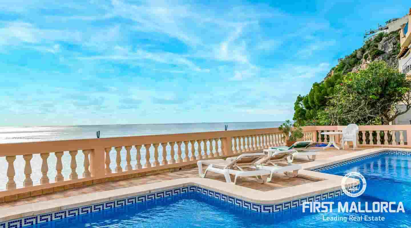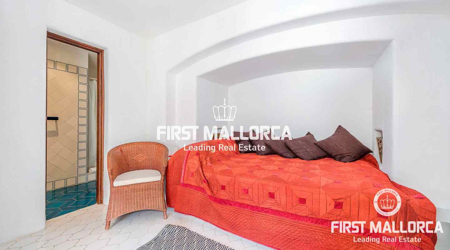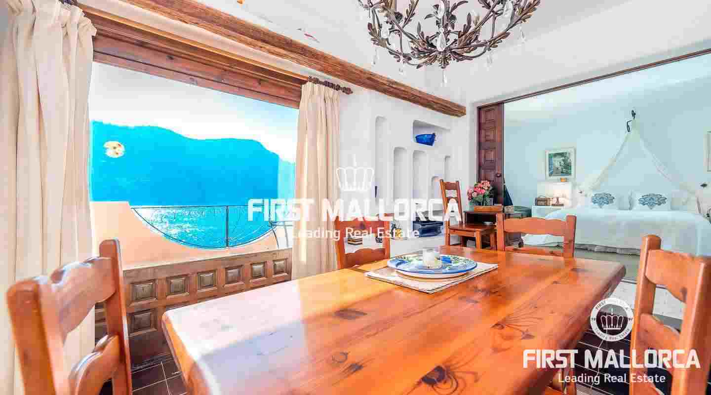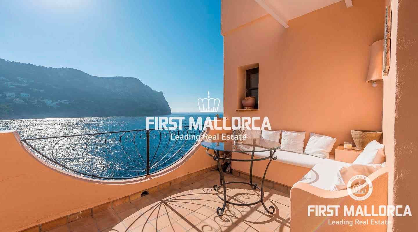 Este apartamento de estilo mediterráneo en primera línea goza de magníficas vistas de Cala Llamp y acceso directo al mar. La propiedad cuenta con 2 dormitorios, cada uno con baño en suite, y una cocina abierta al salón. El apartamento impresiona sobre todo con sus hermosas terrazas con vistas a los yates anclados en la bahía y la amplia área de piscina de la pequeña comunidad diseñada por el arquitecto Otzoup.