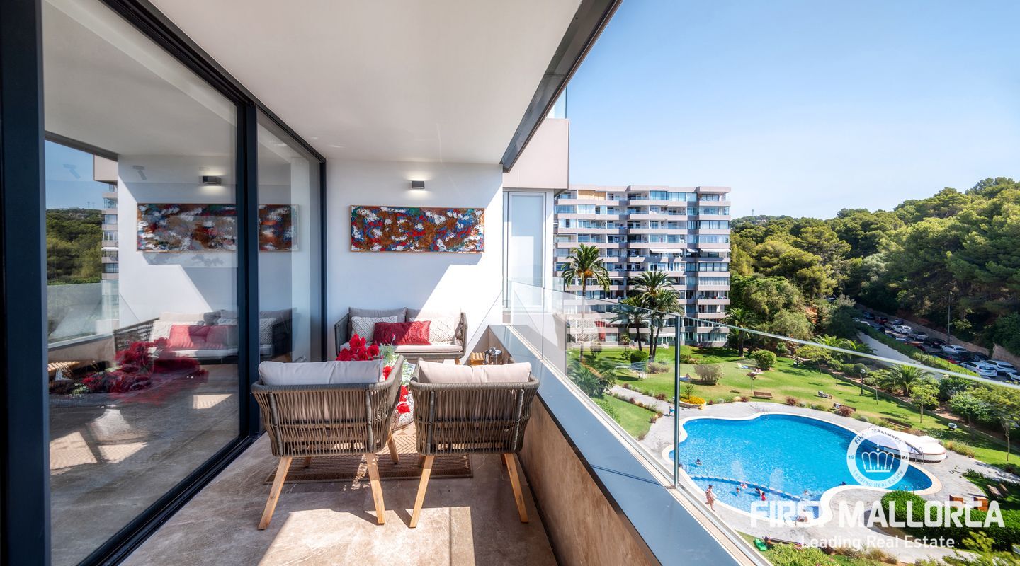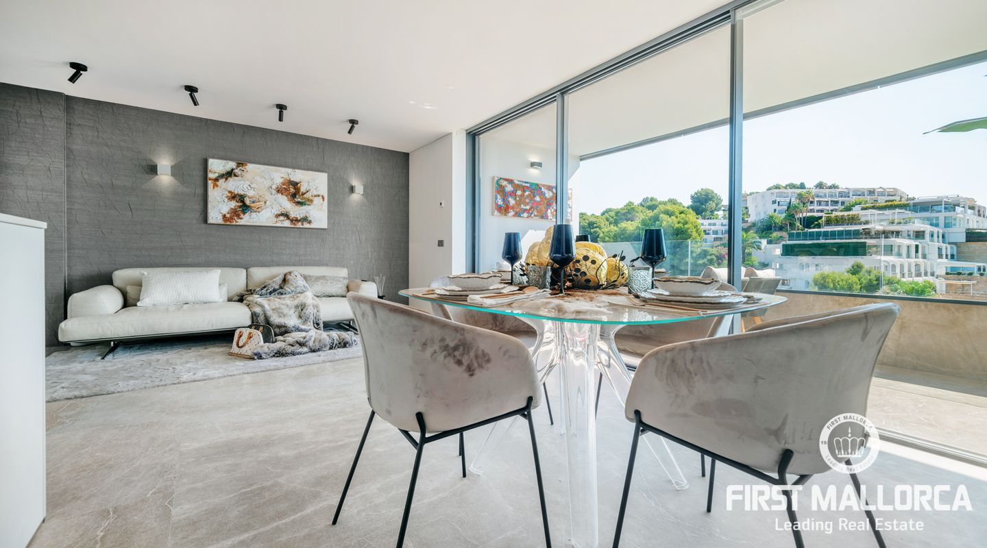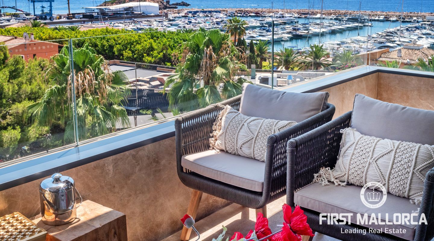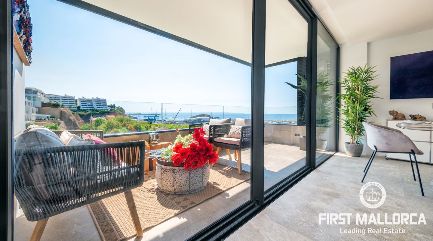 Este piso completamente reformado con altas calidades y vistas al mar y al puerto, está situado en un moderno y popular complejo con ascensor, piscina comunitaria y acceso directo al puerto de Puerto Portals.