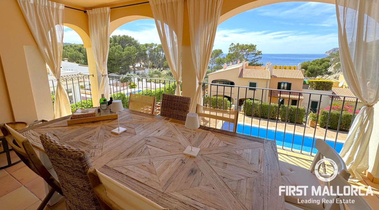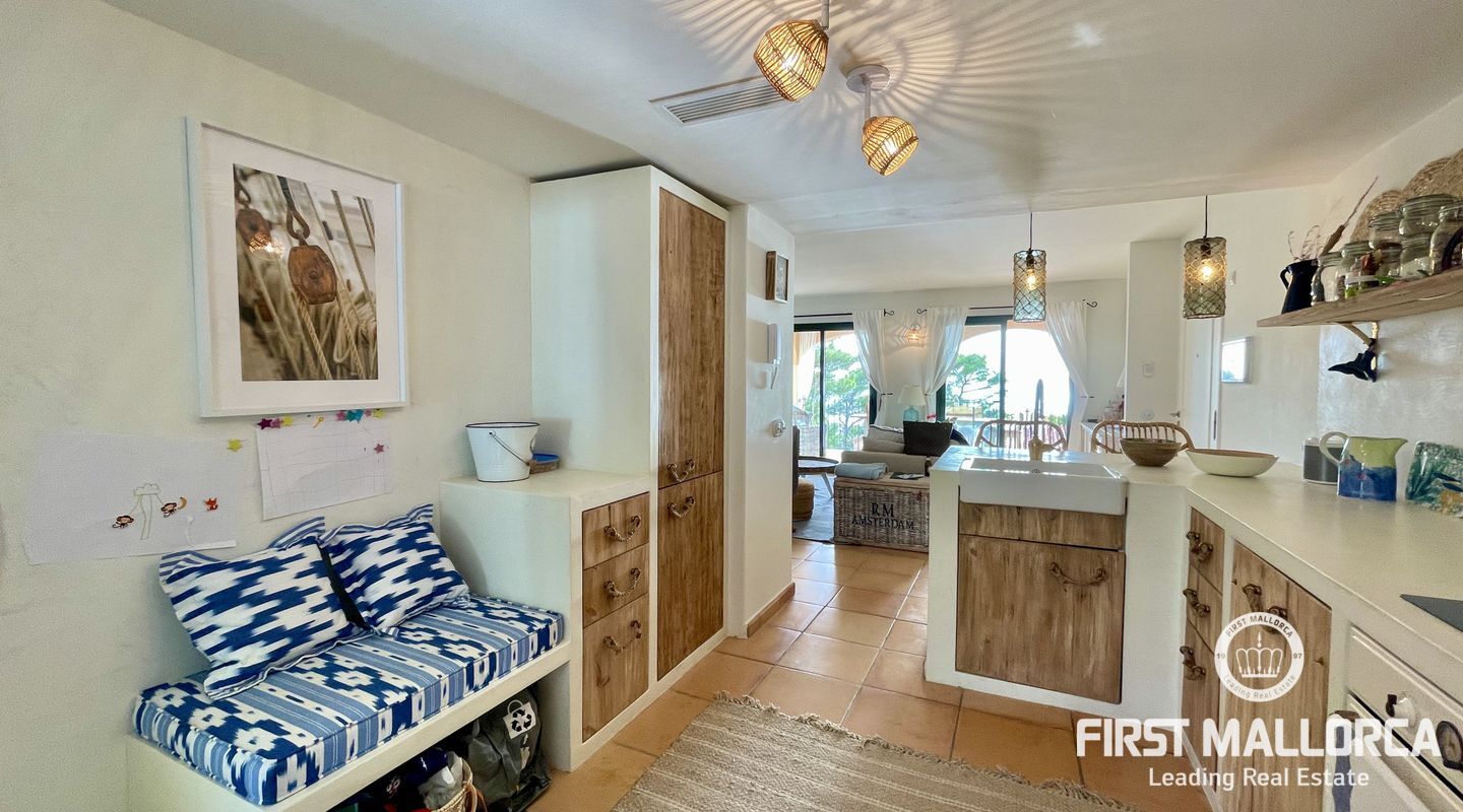 Este piso está situado en un complejo bien cuidado directamente en una pequeña bahía en Sant Elm. Tiene 2 dormitorios, 2 baños, una terraza con vistas al mar y la isla de Dragonera a la derecha - conocida por sus fantásticas puestas de sol.