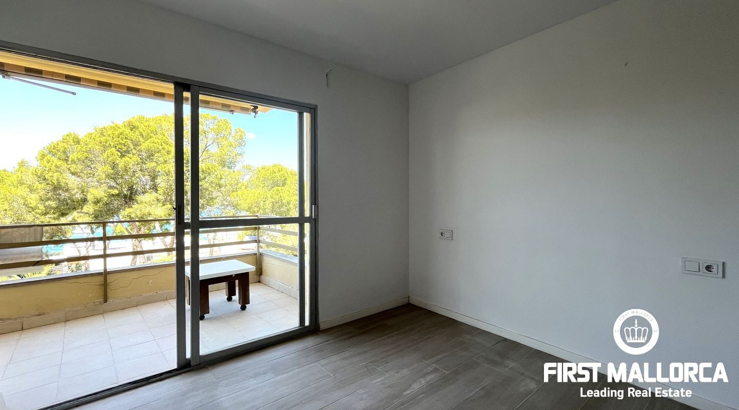 Ofrecemos un proyecto muy interesante, ubicado entre las dos playas de Santa Ponsa y todos los servicios. Con sus 130m2, este apartamento ofrece un amplio salón con chimenea y acceso a la terraza. La actual cocina se puede transformar completamente y sustituir por una moderna cocina abierta con isla. La zona donde se encuentra la cocina, eventualmente se puede utilizar como trastero o lavadero. Cuatro dormitorios están a los lados y todos tienen armarios empotrados, mientras que dos de ellos están orientados al norte y disfrutan de sus propias terrazas con vistas parciales al mar. Dos baños completan la propiedad y en el precio se incluye una plaza de aparcamiento privado.