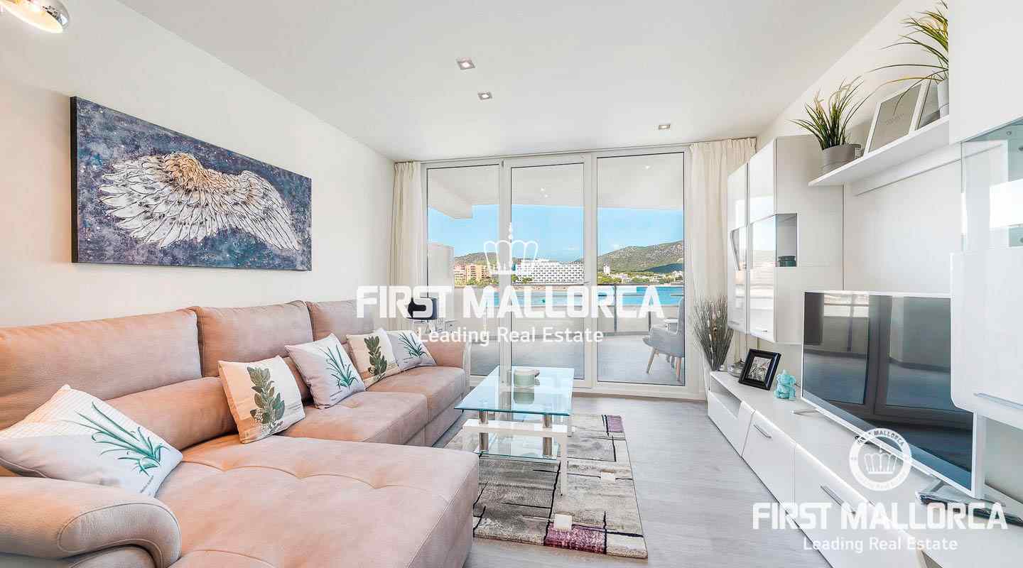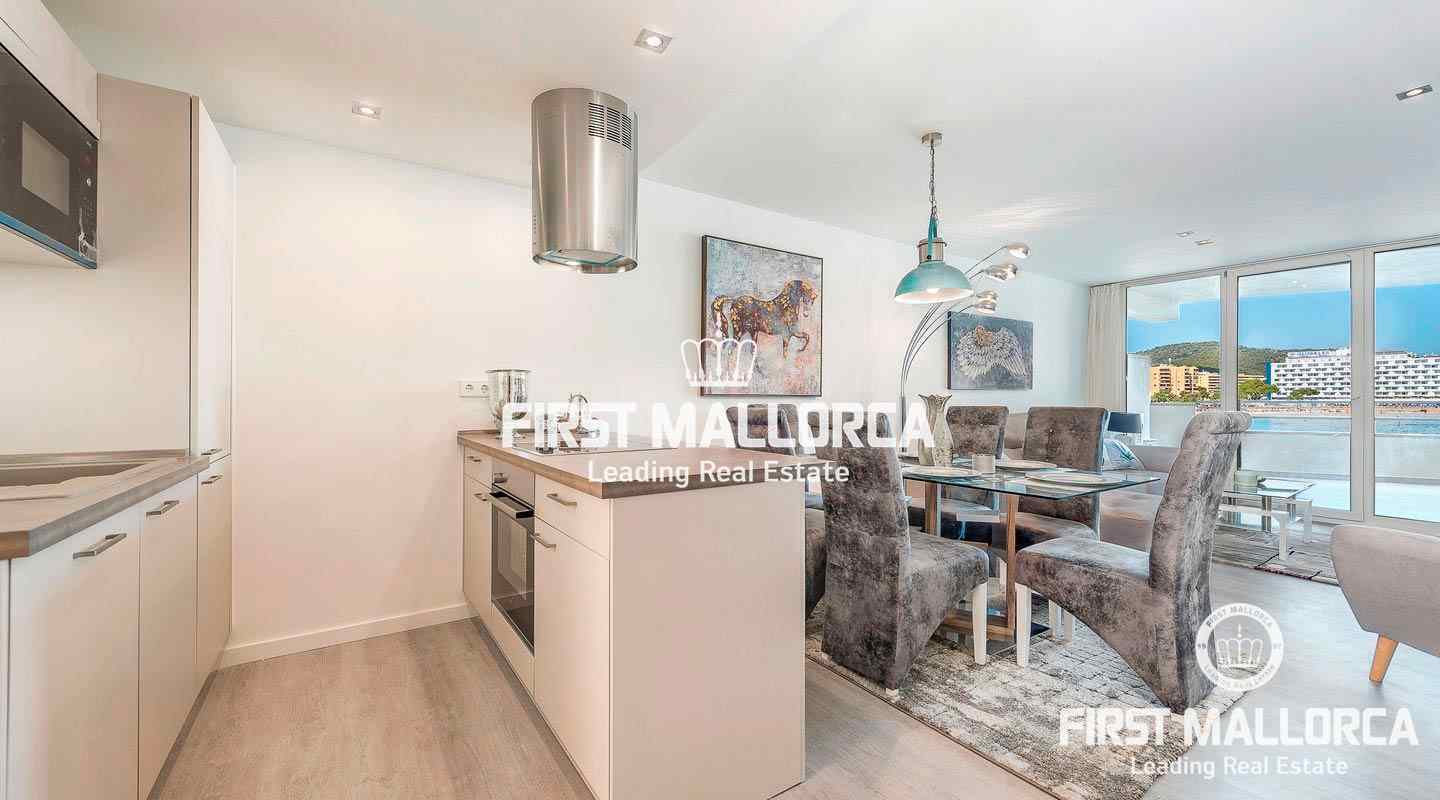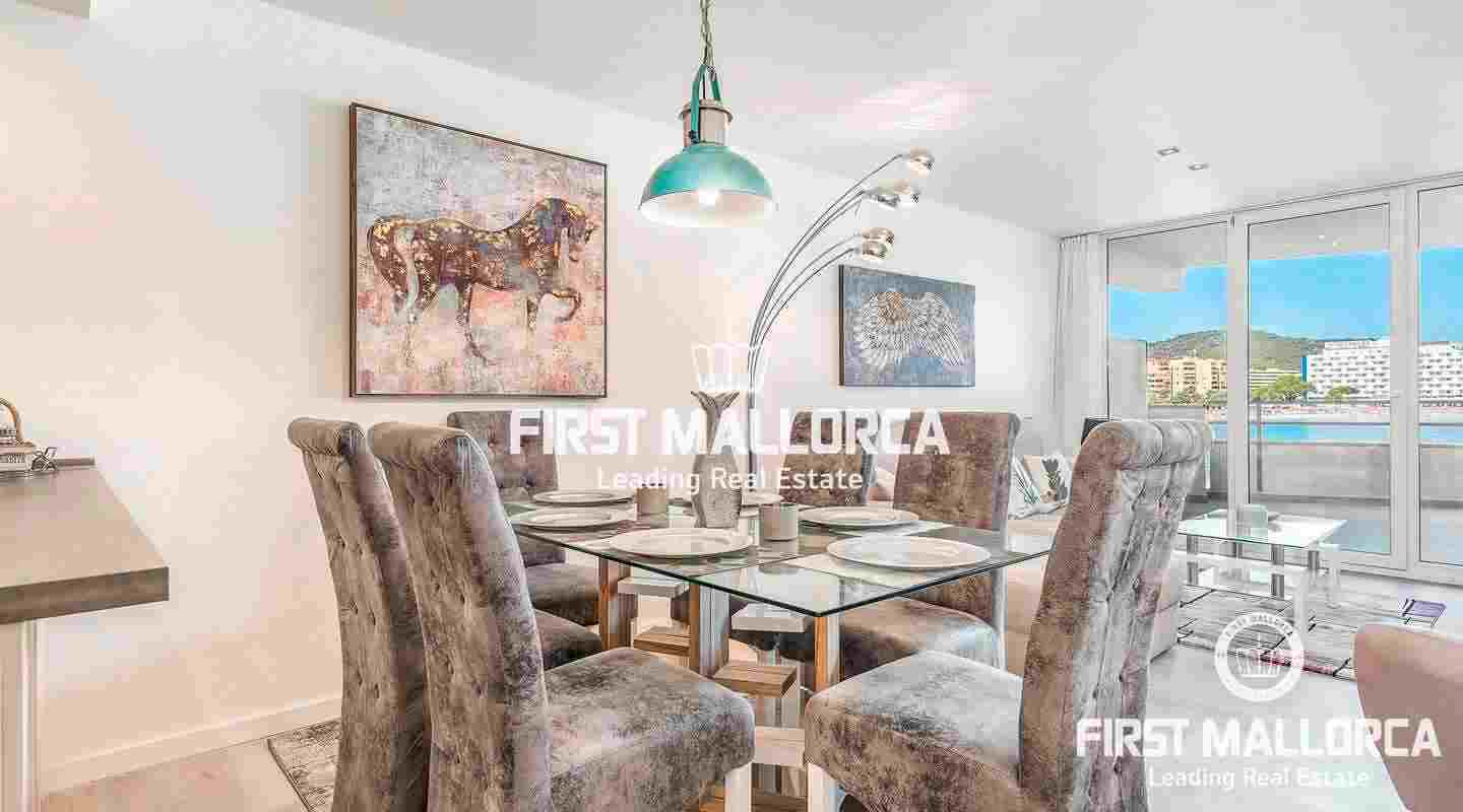 Este luminoso apartamento se encuentra en primera línea de mar, a pocos pasos de la hermosa playa. Tiene 3 dormitorios, 2 baños, de los cuales uno está en suite, y una amplia terraza con vistas magníficas al mar, la cual se puede acceder de casi todas las habitaciones. Además, esta propiedad dispone de aire acondicionado, ventanas de doble acristalamiento, muebles de alta calidad y un garaje doble.