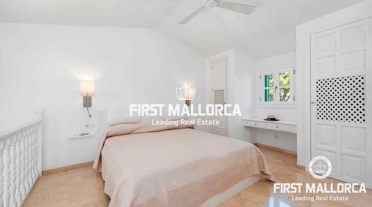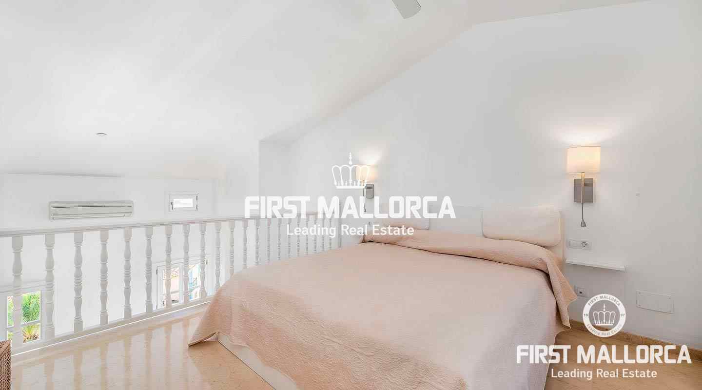 Dúplex de 1 dormitorio con vistas al mar, orientado al sur, situado entre los jardines subtropicales del Anchorage Club y a 50 m de la playa y el acceso al mar. El apartamento en dos niveles tiene una superficie construida de 95 m2 incluyendo 6 m2 de balcón . La distribución es la siguiente: en el nivel de entrada una sala de estar con comedor, cocina y baño. Las escaleras conducen al nivel superior donde hay un dormitorio principal con baño en suite. El Anchorage Club se encuentra a poca distancia de Illetas y las instalaciones de este exclusivo complejo incluyen una playa privada, 5 piscinas, un restaurante junto a la piscina, una pista de tenis junto al mar, agradables jardines subtropicales y seguridad las 24 horas. La ciudad de Palma está a menos de 10 minutos y el campo de golf de Bendinat y el puerto deportivo de Puerto Portals están a menos de 5 minutos en coche.