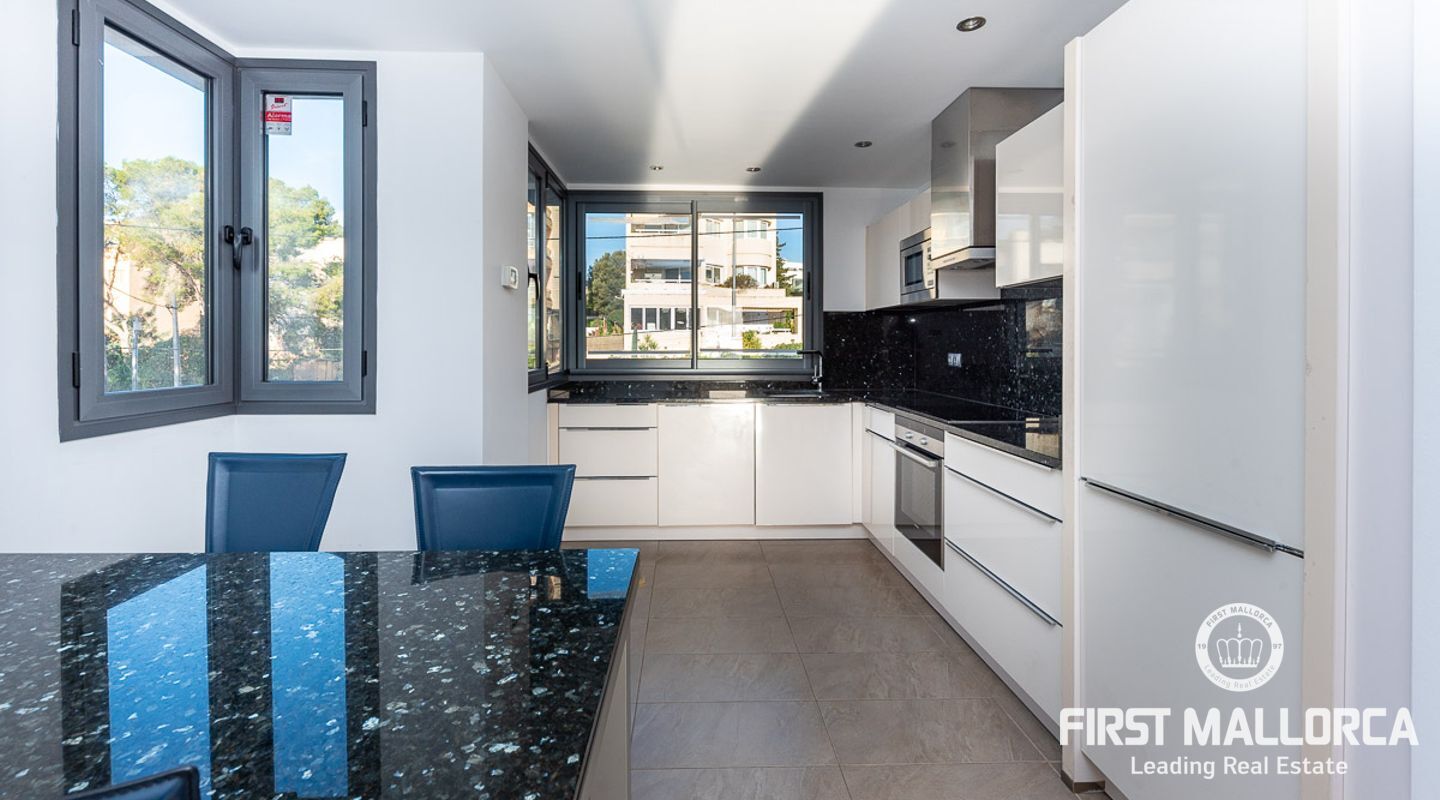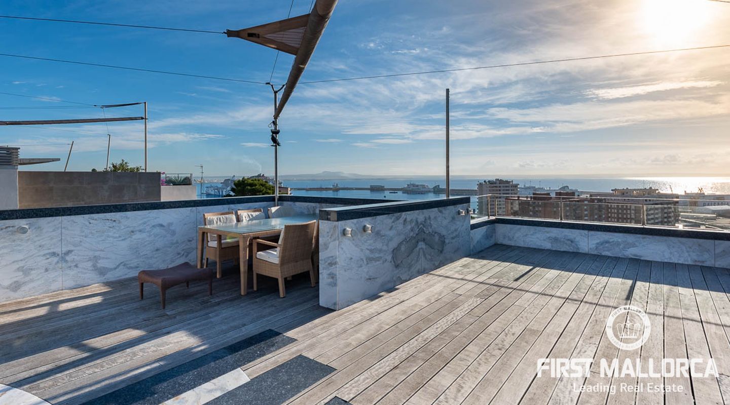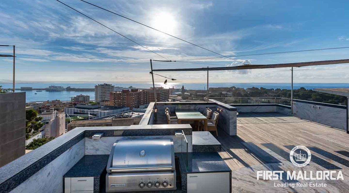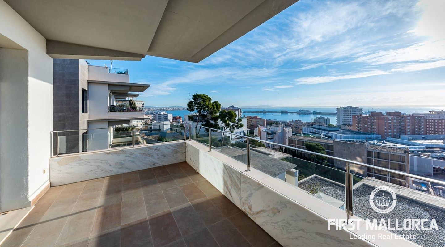Ático extraordinario en un exclusivo complejo residencial con piscina comunitaria. Se sitúa en la solicitada zona residencial de La Bonanova en Palma y disfruta de vistas panorámicas al mar y a la bahía de Palma. La propiedad de 3 dormitorios y 3 baños cuenta con una superficie construida de aproximadamente 132 m2 incluyendo una terraza cubierta de 14 m2 más una azotea de aproximadamente 90 m2. Otras características incluyen calefacción central por gas, 2 plazas de parking subterráneo, trastero y una piscina comunitaria con jacuzzi. Sin muebles. El complejo queda cerca del famoso Paseo Marítimo y a tan sólo pocos pasos de restaurantes y del centro comercial Porto Pi.