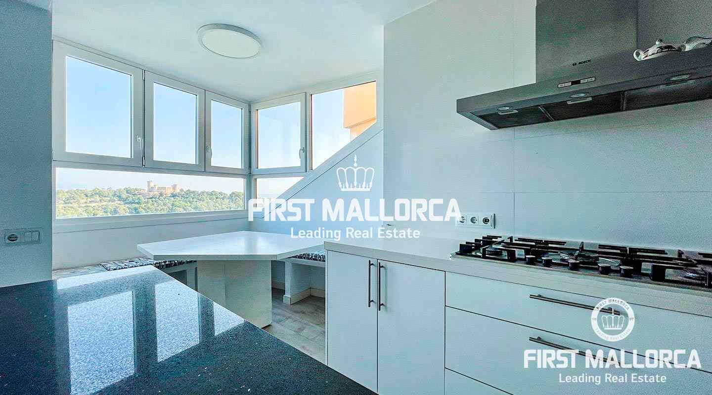 Ático verdaderamente espacioso en lujosa comunidad residencial, situada en el noble barrio La Bonanova, en Palma de Mallorca. La propiedad dispone de 4 dormitorios dobles, 3 baños, un espacioso salón con chimenea y zona de comedor, desde la cual se accede a una amplia terraza que bordea el inmueble. La comunidad ofrece servicio de conserjería 24/7, preciosos jardines, una gran zona de piscina. Dos plazas de aparcamiento y un trastero, también pertenecen a esta fantástica propiedad.
