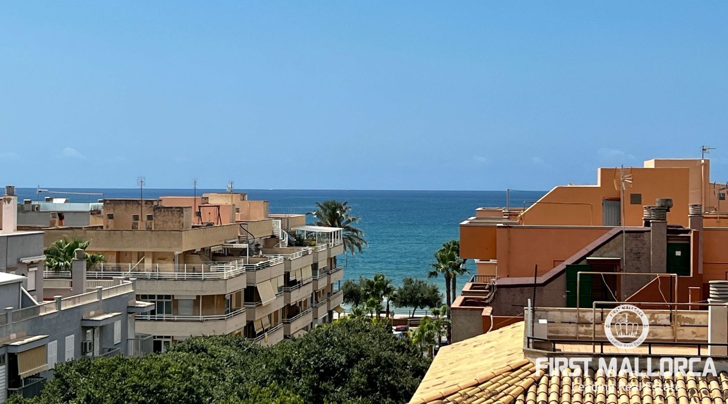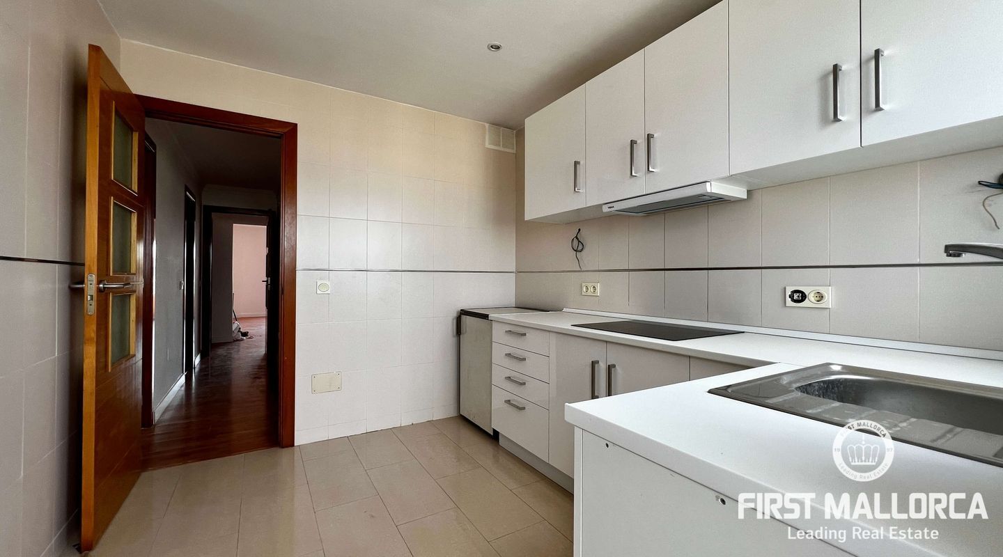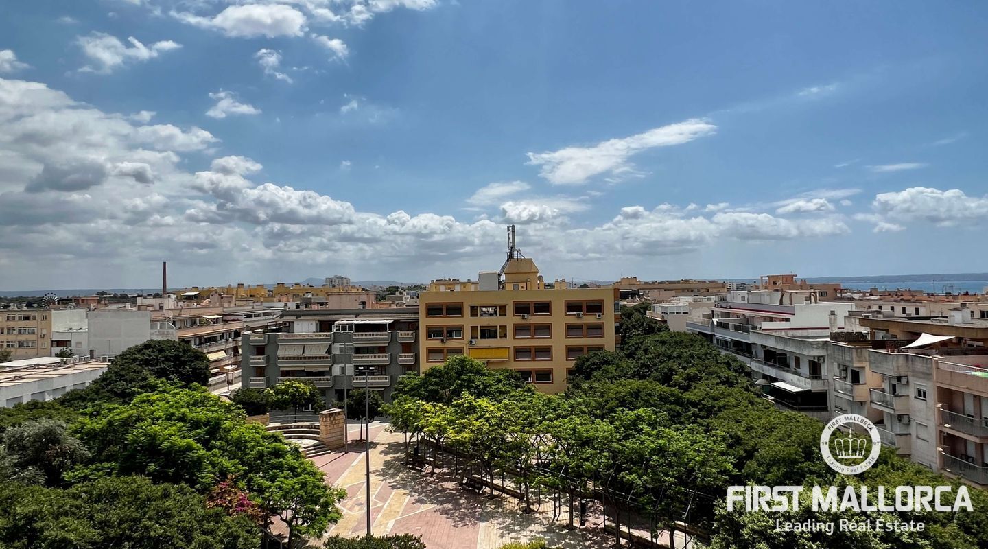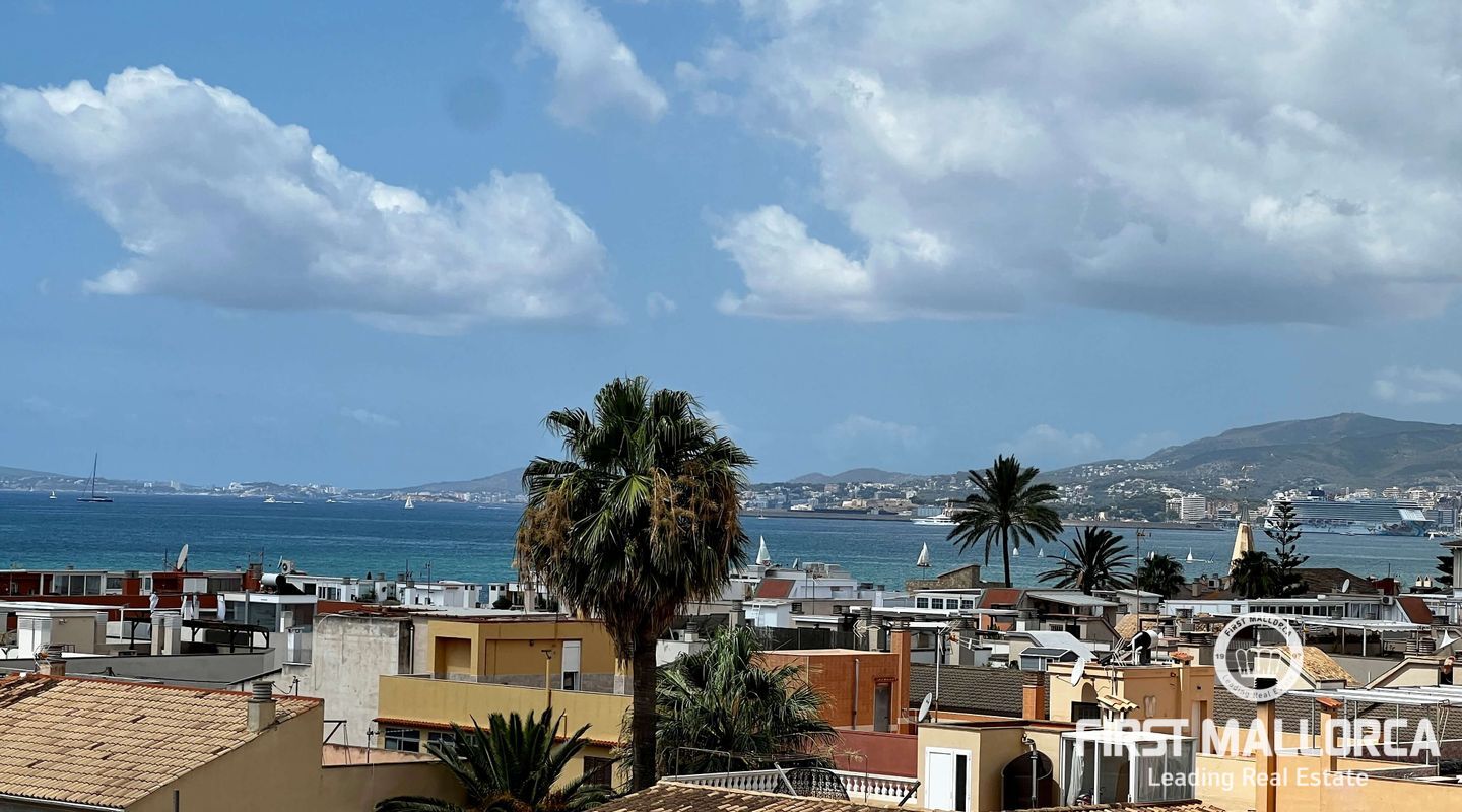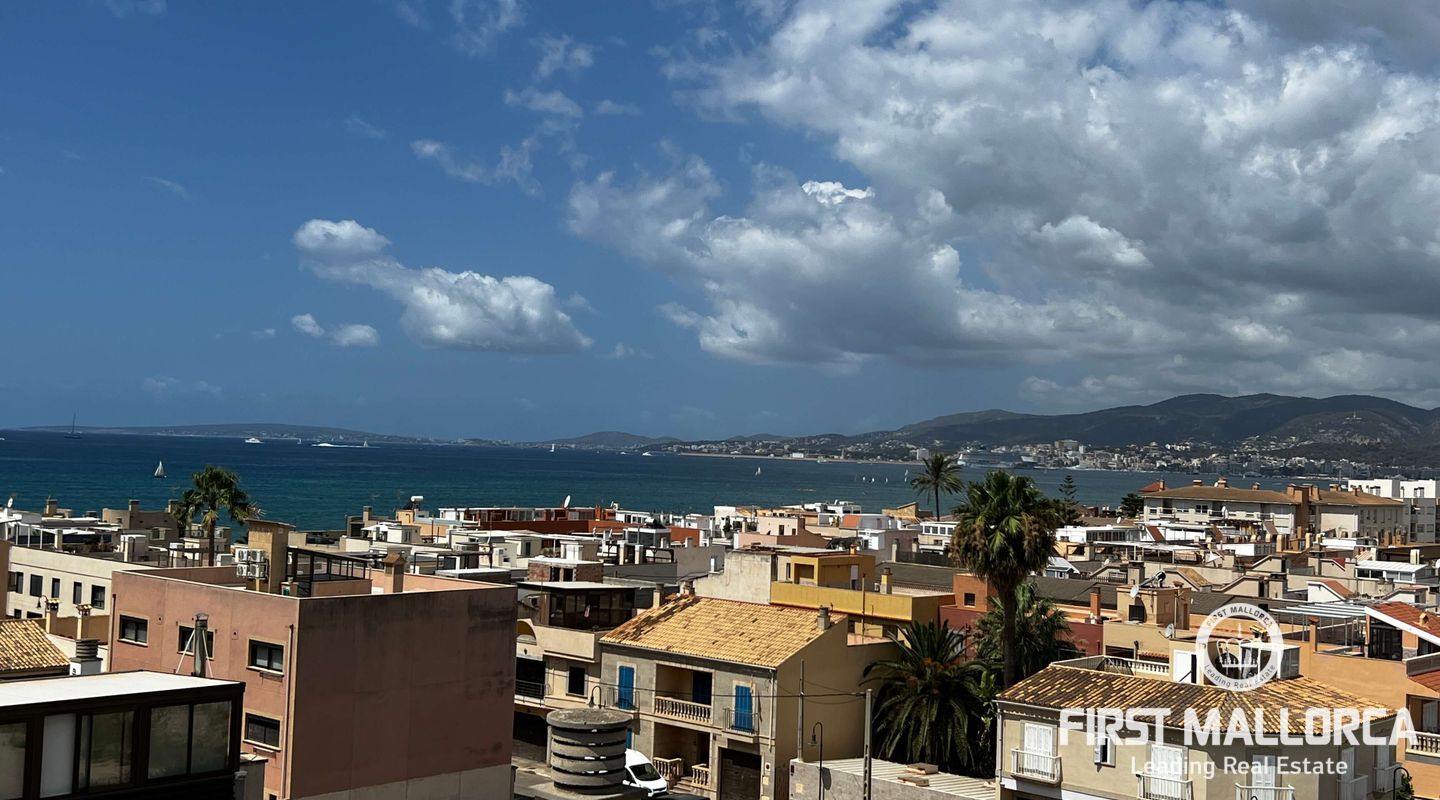 La joya de la corona de este ático es su acogedora terraza, que ofrece vistas a la plaza circundante y un atisbo del mar Mediterráneo. Tiene también una gran terraza comunitaria con impresionantes vistas sobre la bahía de Palma.
