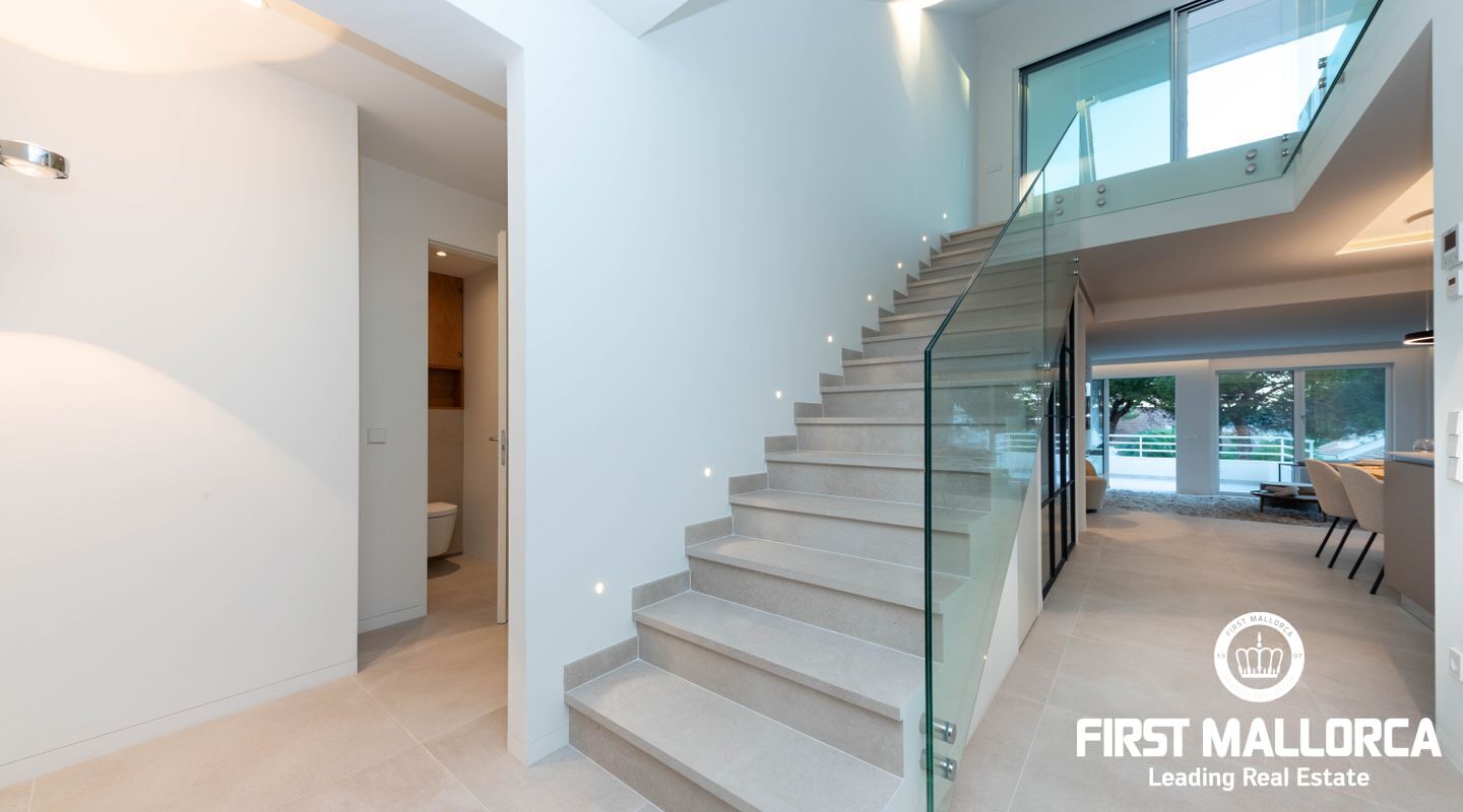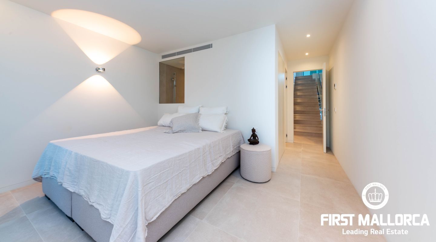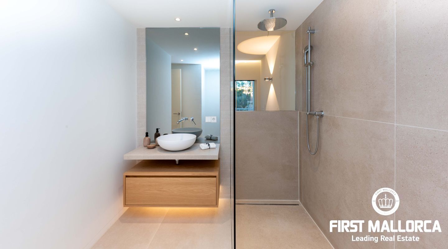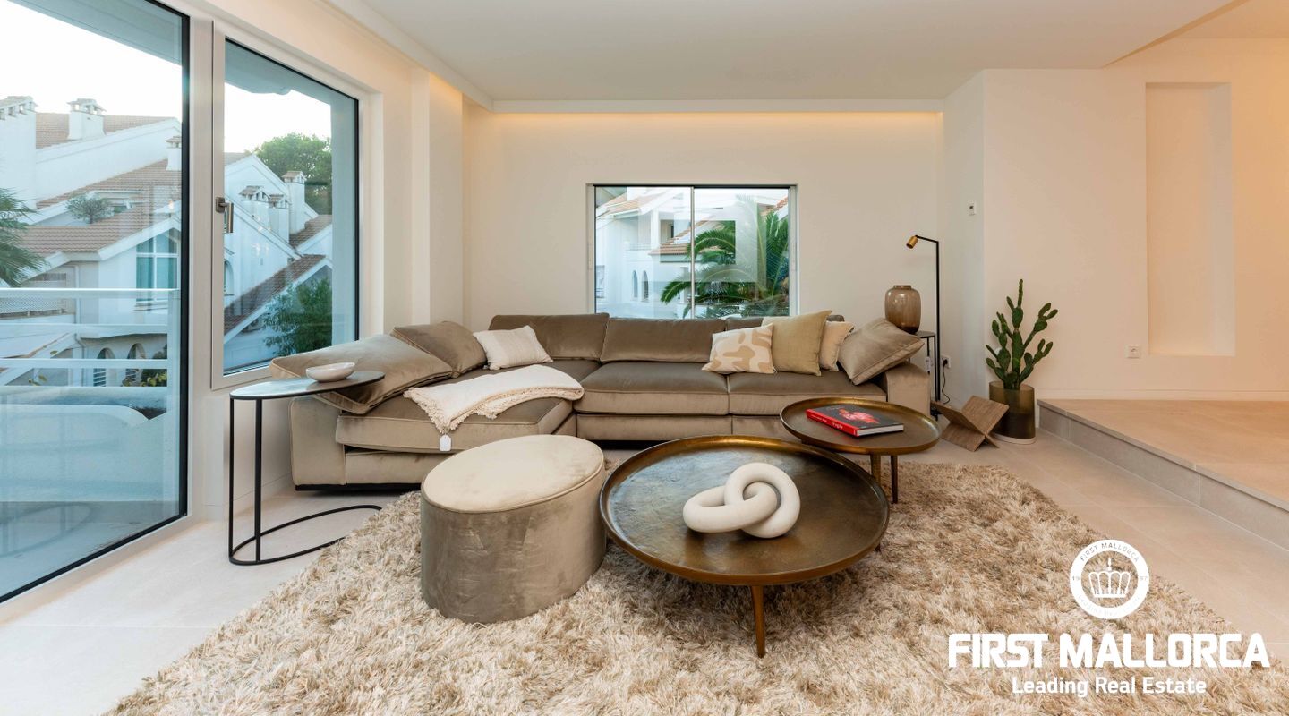 La propiedad cuenta con tres dormitorios, cada uno con su baño en suite. En la planta superior, se puede aprovechar un espacio adicional perfecto para una oficina o una sala de juegos, que también tiene acceso a otra terraza con vistas panorámicas a los jardines mediterráneos, la piscina estilo laguna y el mar. Su proximidad a Port Adriano, con su variada oferta de restaurantes y opciones de entretenimiento, y la cercanía a la playa de El Toro, hacen de esta vivienda una opción ideal para vivir todo el año. Además, está situada cerca de colegios internacionales, campos de golf y pistas de tenis.