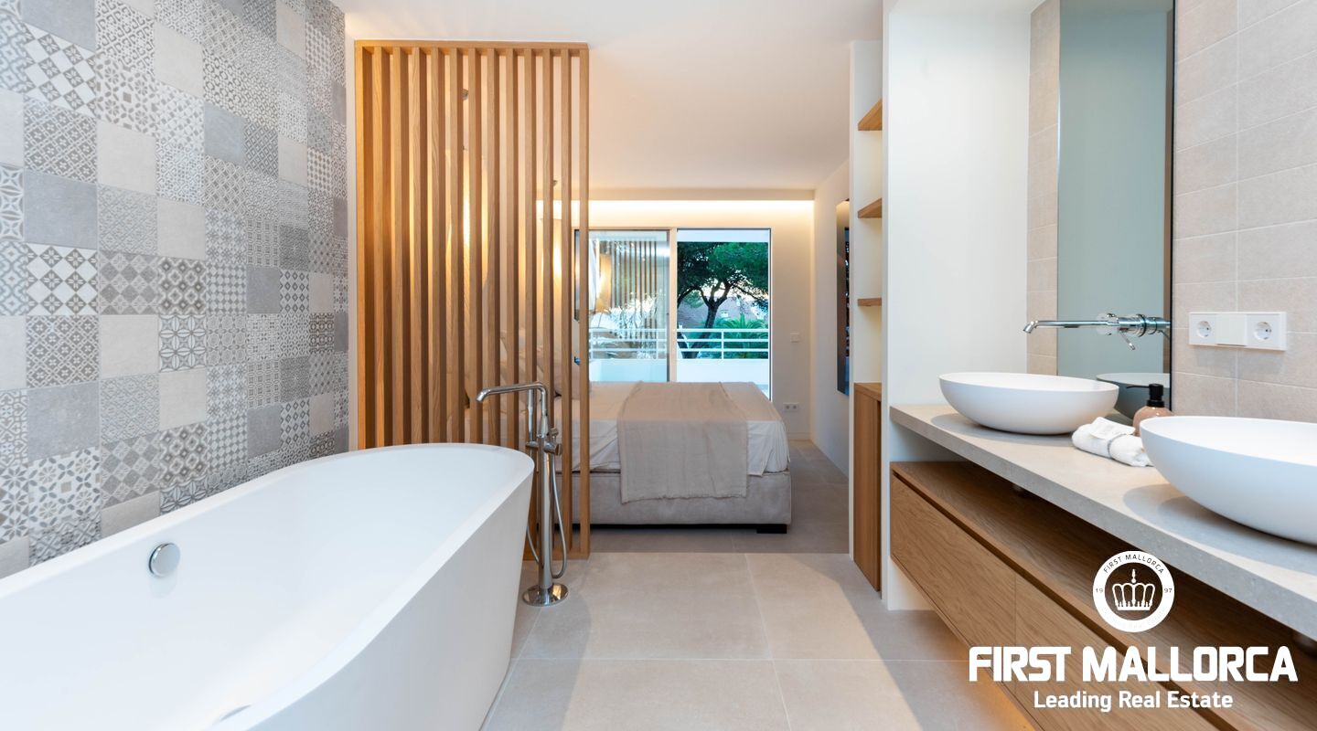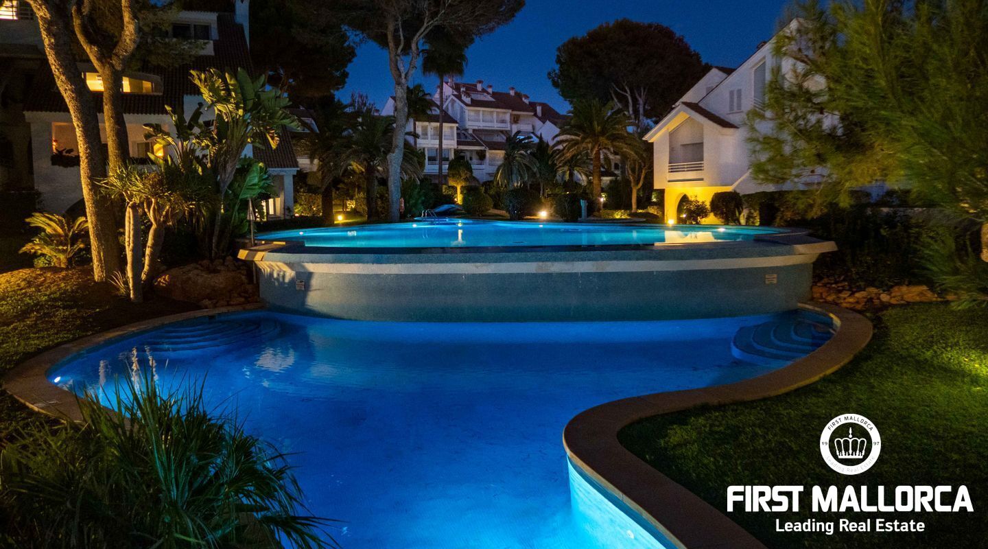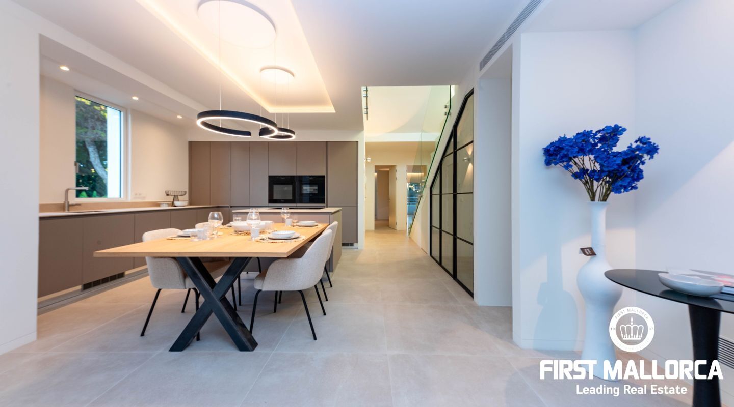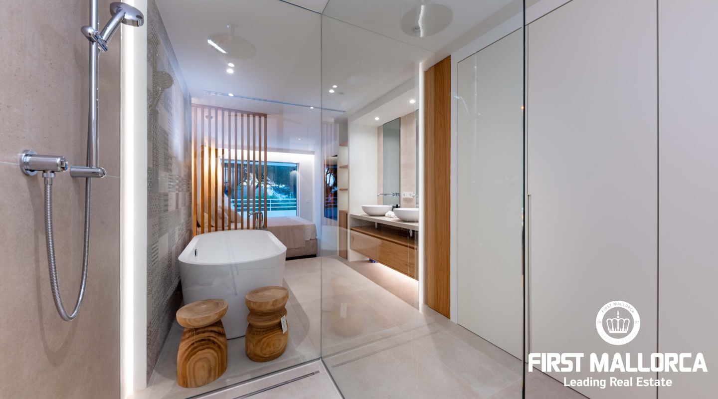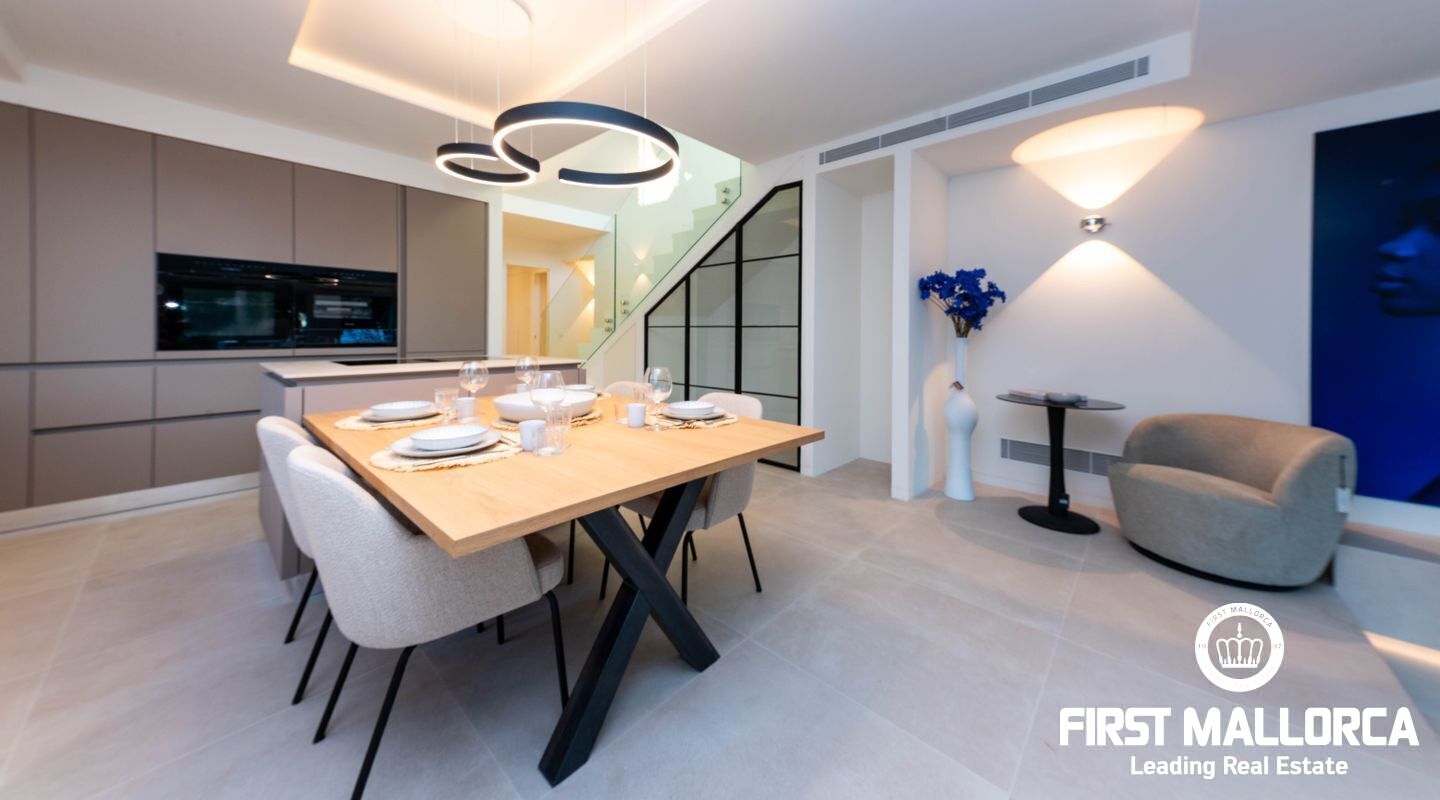 La propiedad cuenta con tres dormitorios, cada uno con su baño en suite. En la planta superior, se puede aprovechar un espacio adicional perfecto para una oficina o una sala de juegos, que también tiene acceso a otra terraza con vistas panorámicas a los jardines mediterráneos, la piscina estilo laguna y el mar. Su proximidad a Port Adriano, con su variada oferta de restaurantes y opciones de entretenimiento, y la cercanía a la playa de El Toro, hacen de esta vivienda una opción ideal para vivir todo el año. Además, está situada cerca de colegios internacionales, campos de golf y pistas de tenis.