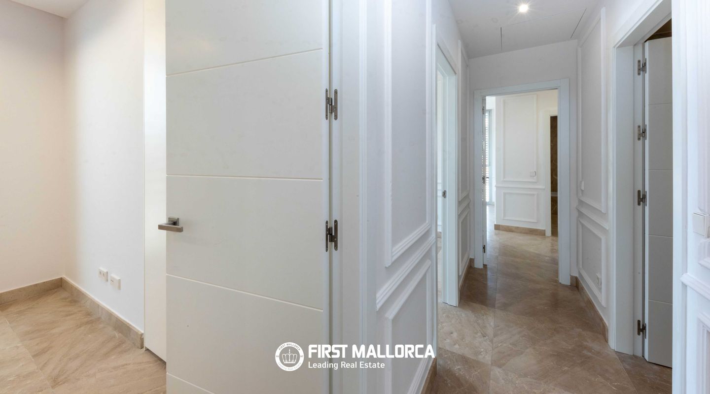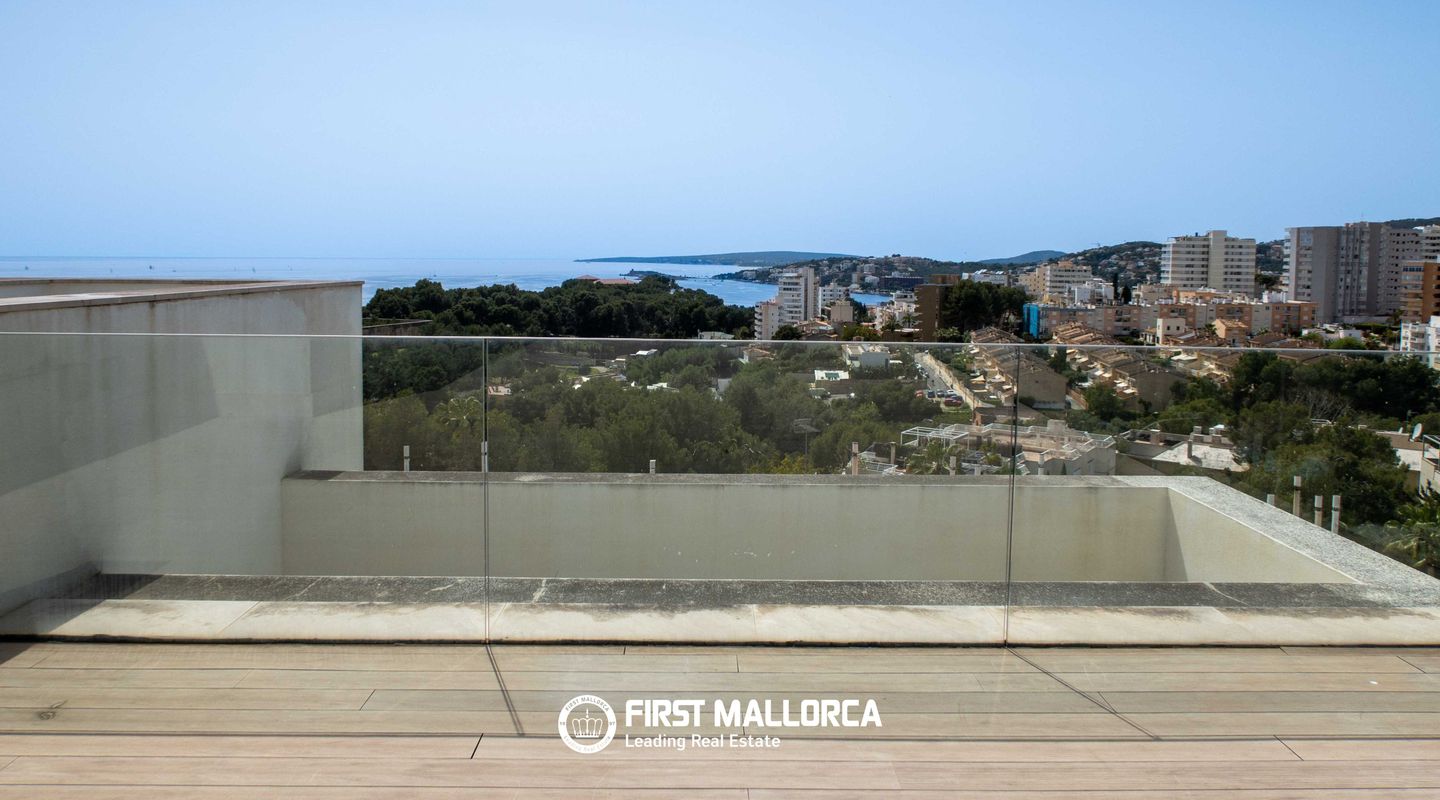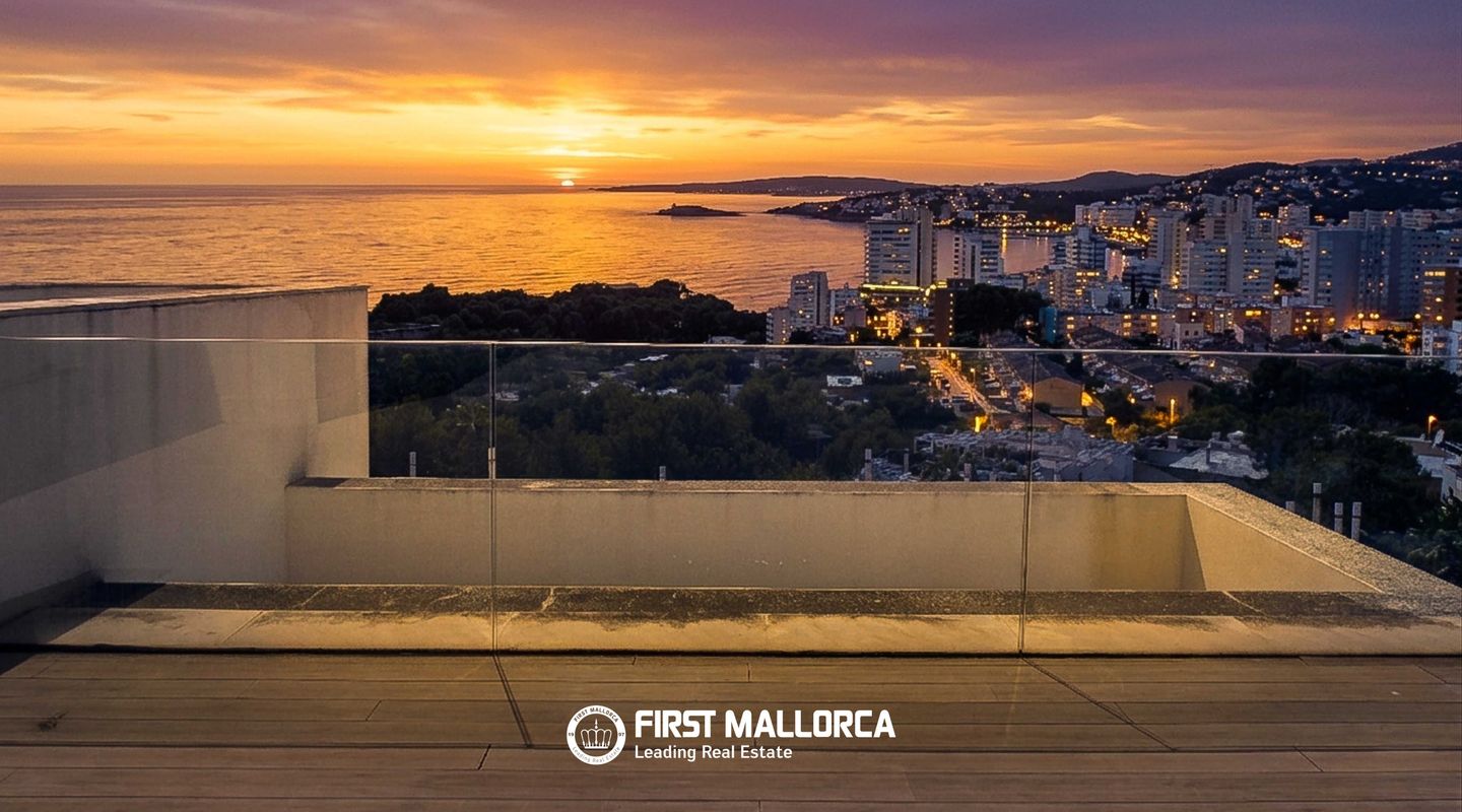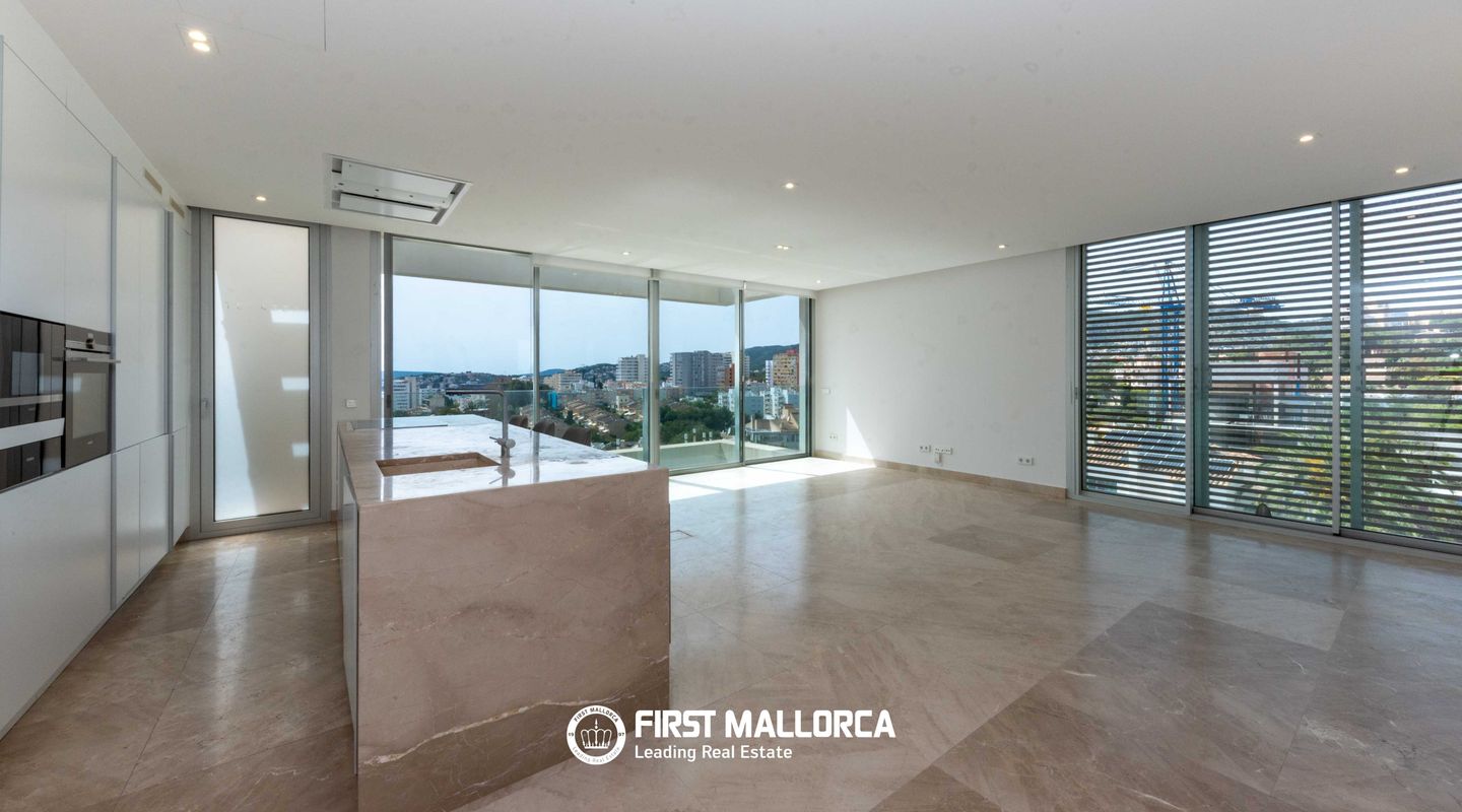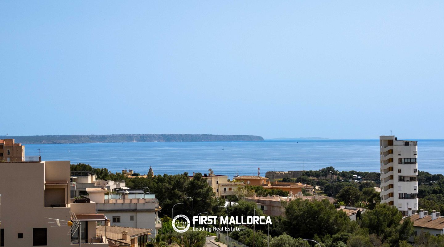 Impresionante ático con vistas panorámicas al mar y amplia terraza en la azotea en La Bonanova, Palma de Mallorca Ubicado en un atractivo y bien cuidado edificio a pocos minutos del dinámico centro comercial Porto Pi, este excepcional ático ofrece una combinación perfecta de confort, estilo y una ubicación privilegiada. Situado en la codiciada zona residencial de La Bonanova, la propiedad disfruta de un entorno tranquilo sin renunciar a una excelente conexión con el centro de Palma, fácilmente accesible tanto en coche como en transporte público. El apartamento, orientado al suroeste, destaca por sus amplios espacios llenos de luz natural. Dispone de tres dormitorios dobles y dos baños, uno de ellos en suite. El elegante salón-comedor de concepto abierto con cocina totalmente integrada está diseñado para un estilo de vida moderno, y cuenta con grandes ventanales panorámicos que enmarcan preciosas vistas al mar. Uno de los mayores atractivos de esta propiedad es su impresionante terraza privada en la azotea de aproximadamente 118 m², que ofrece espectaculares vistas panorámicas, ideal para relajarse, recibir invitados o disfrutar del excepcional clima de Mallorca. Entre sus características adicionales destacan el aire acondicionado frío/calor, calefacción por suelo radiante, doble acristalamiento, armarios empotrados, vestidor, sistema de alarma, puerta de seguridad, portero automático y un práctico trastero. Además, la propiedad incluye dos plazas de aparcamiento en garaje. Los residentes pueden disfrutar de un cuidado jardín comunitario con piscina y zona de terraza, proporcionando un agradable espacio de descanso dentro del complejo. La Bonanova es una de las zonas residenciales más deseadas de Palma, conocida por su ambiente tranquilo, su proximidad al centro de la ciudad y su excelente infraestructura. El barrio es especialmente valorado por sus prestigiosos colegios internacionales y su cercanía al centro comercial Porto Pi, así como al hermoso bosque de Bellver, ideal para actividades al aire libre y para los amantes de la naturaleza. Características principales Orientación suroeste con vistas al mar Terraza privada en la azotea (aprox. 118 m²) 3 dormitorios dobles, 2 baños (1 en suite) Salón-comedor de concepto abierto con cocina integrada Aire acondicionado (frío/calor) y suelo radiante Doble acristalamiento y suelos de piedra Armarios empotrados y vestidor Sistema de alarma y puerta de seguridad Ascensor Trastero 2 plazas de garaje Jardín comunitario, piscina y zona de terraza