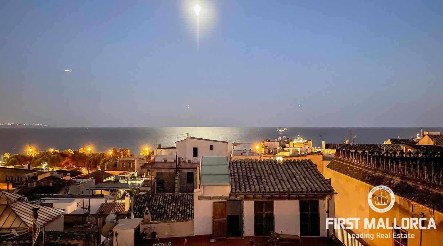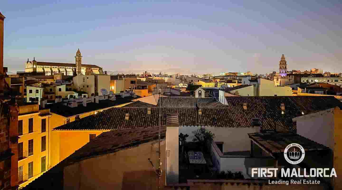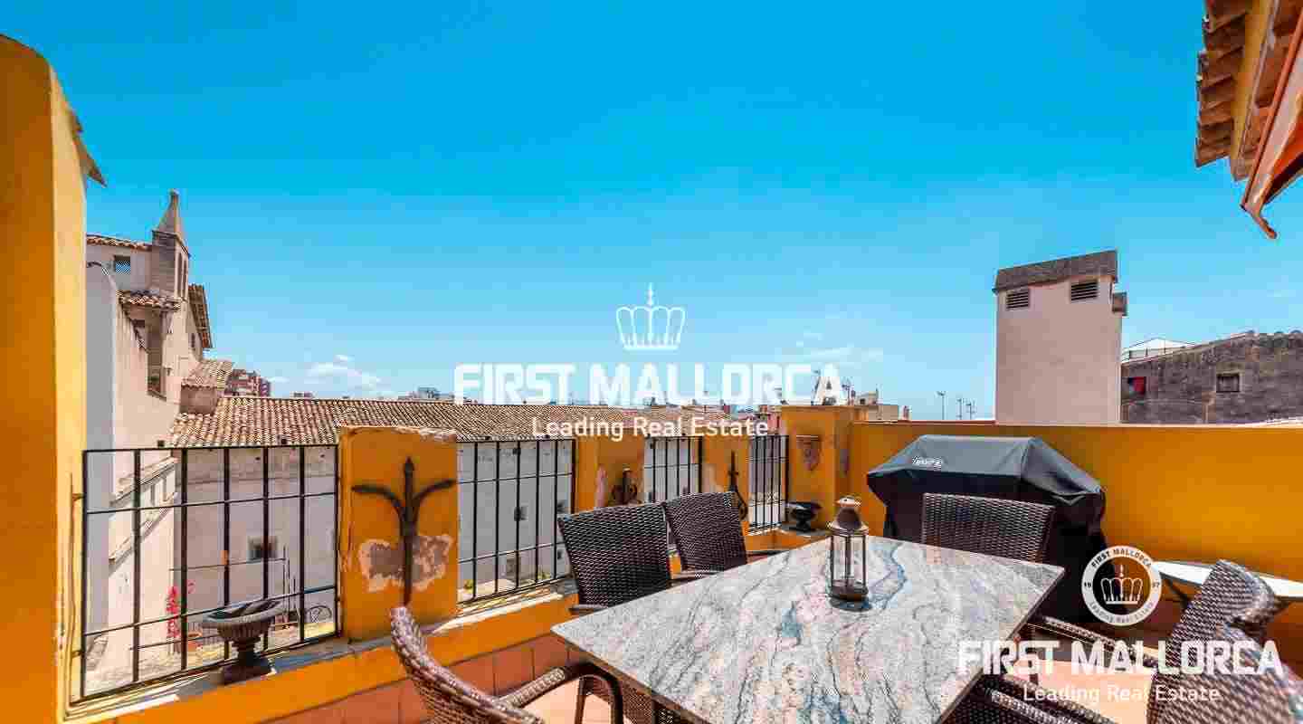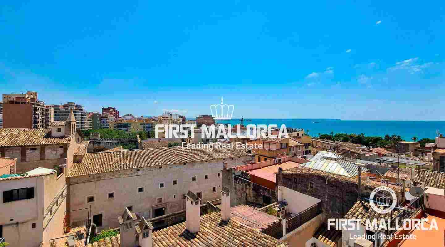 Este ático único está situado en el barrio más emblemático y elegante de la ciudad de Palma, La Calatrava. La propiedad se encuentra dentro de un edificio histórico de sólo tres unidades, ocupando la última planta, una gran terraza en la azotea y una torre con vistas al mar. Además, hay un apartamento independiente para invitados. La residencia principal ofrece un amplio dormitorio en suite, con la posibilidad de añadir otro dormitorio, una cocina totalmente equipada, salón con chimenea, salón comedor con techo de cristal retráctil y una terraza justo al lado de la cocina. En el nivel superior se encuentra la gran terraza de la azotea, magníficamente privada, ideal para el entretenimiento con la familia y los amigos. El vecino más cercano a la azotea es la iglesia Monti-Sion del siglo XV, que proporciona un ambiente único y una atmósfera histórica. También hay un pequeño despacho en la torre que ofrece vistas a la Bahía de Palma y a toda la ciudad. En la planta inferior se encuentra el apartamento de invitados de un dormitorio con baño completo y una bodega privada con techos abovedados originales y un generoso trastero. Las características adicionales incluyen un ascensor y un garaje privado para un coche pequeño. La zona de Calatrava es la más privilegiada para vivir en el Casco Antiguo de Palma. Está idealmente situada entre el moderno centro de la ciudad y las playas y la zona de moda del Portitxol.