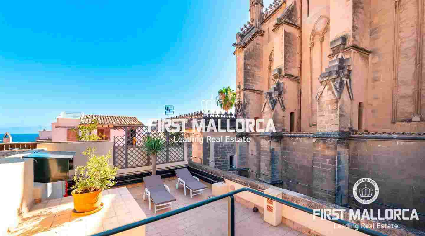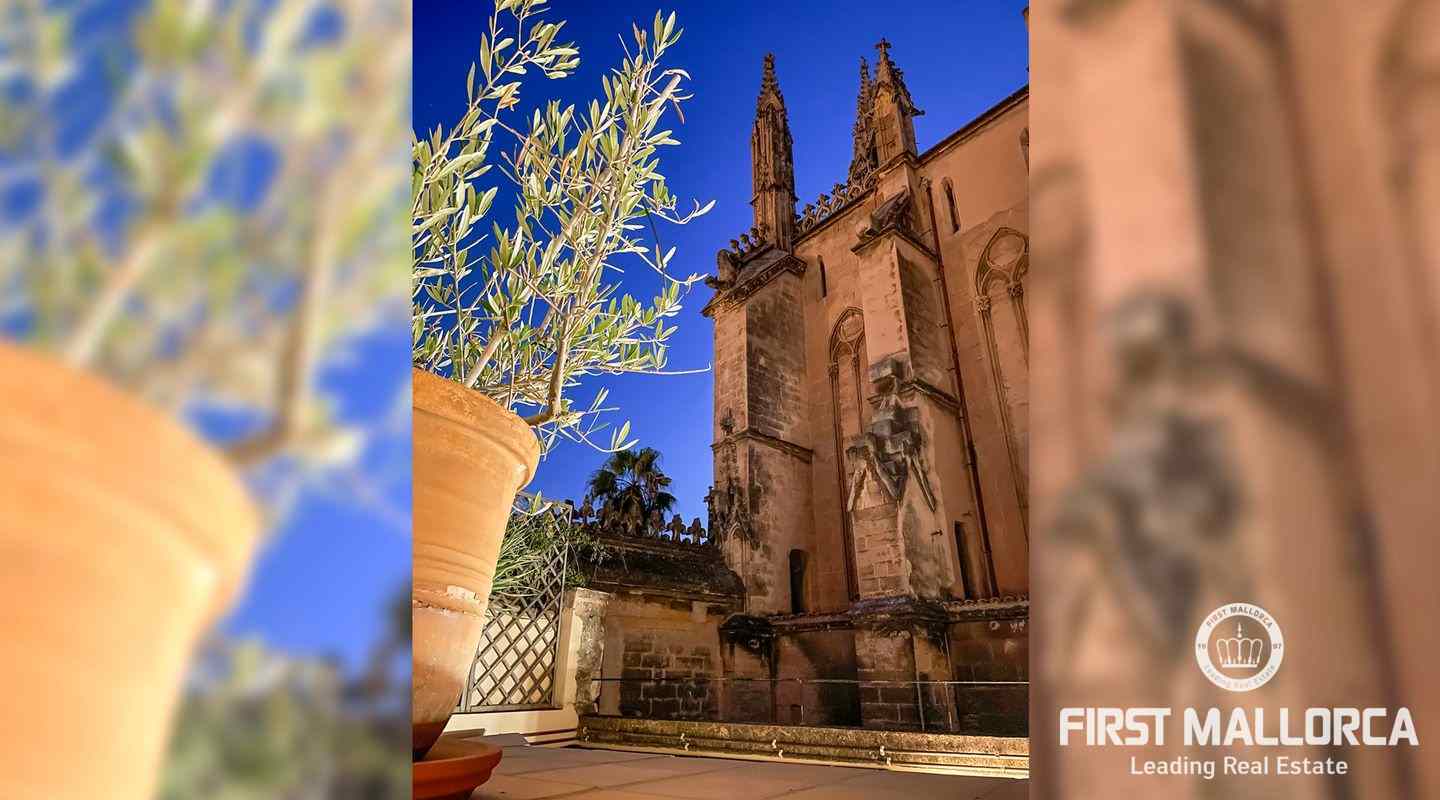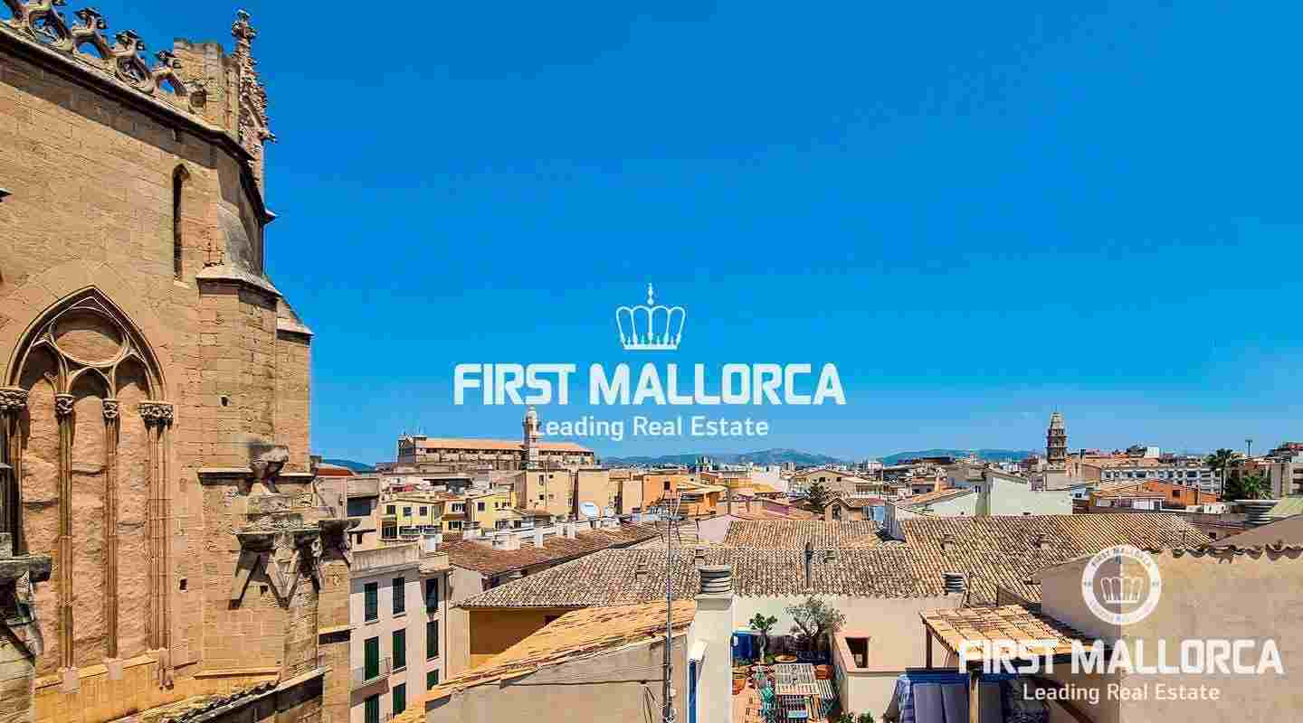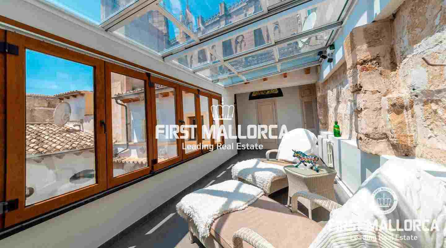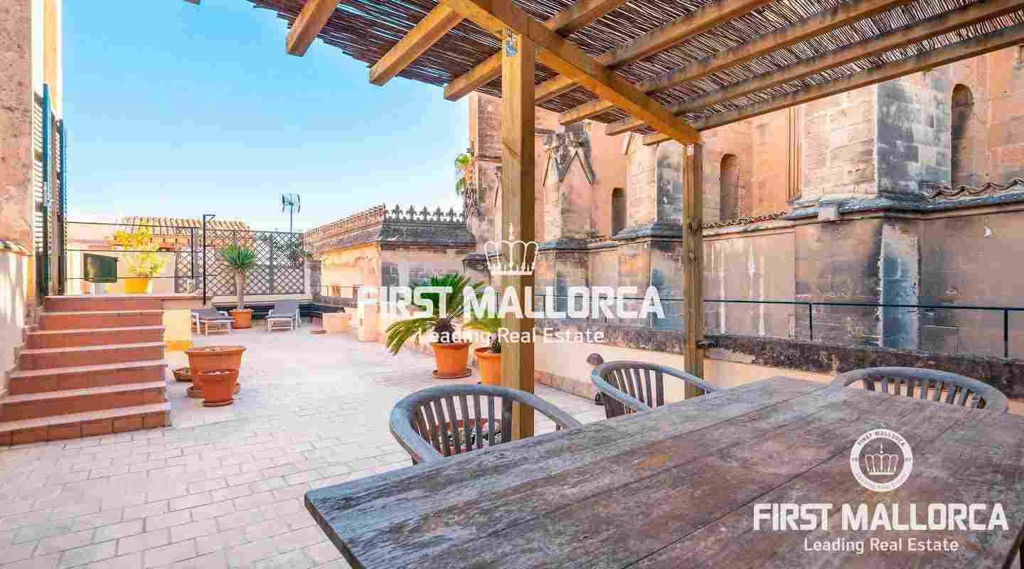 Este ático único está situado en el barrio más emblemático y elegante de la ciudad de Palma, La Calatrava. La propiedad se encuentra dentro de un edificio histórico de sólo tres unidades, ocupando la última planta, una gran terraza en la azotea y una torre con vistas al mar. Además, hay un apartamento independiente para invitados. La residencia principal ofrece un amplio dormitorio en suite, con la posibilidad de añadir otro dormitorio, una cocina totalmente equipada, salón con chimenea, salón comedor con techo de cristal retráctil y una terraza justo al lado de la cocina. En el nivel superior se encuentra la gran terraza de la azotea, magníficamente privada, ideal para el entretenimiento con la familia y los amigos. El vecino más cercano a la azotea es la iglesia Monti-Sion del siglo XV, que proporciona un ambiente único y una atmósfera histórica. También hay un pequeño despacho en la torre que ofrece vistas a la Bahía de Palma y a toda la ciudad. En la planta inferior se encuentra el apartamento de invitados de un dormitorio con baño completo y una bodega privada con techos abovedados originales y un generoso trastero. Las características adicionales incluyen un ascensor y un garaje privado para un coche pequeño. La zona de Calatrava es la más privilegiada para vivir en el Casco Antiguo de Palma. Está idealmente situada entre el moderno centro de la ciudad y las playas y la zona de moda del Portitxol.