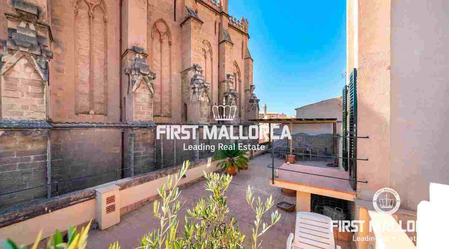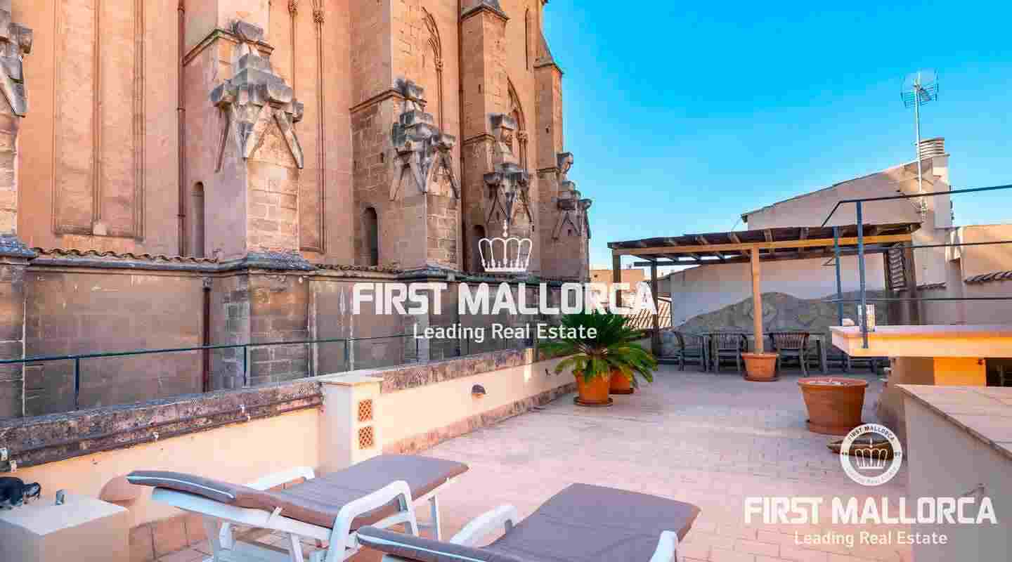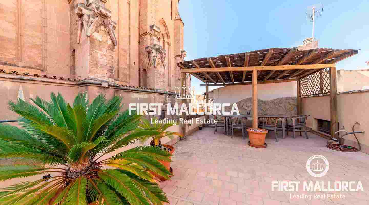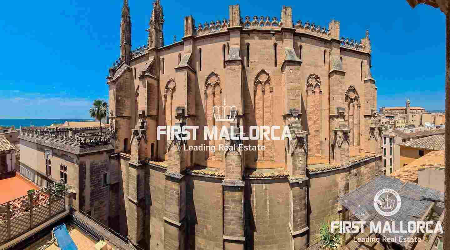 Este ático único está situado en el barrio más emblemático y elegante de la ciudad de Palma, La Calatrava. La propiedad se encuentra dentro de un edificio histórico de sólo tres unidades, ocupando la última planta, una gran terraza en la azotea y una torre con vistas al mar. Además, hay un apartamento independiente para invitados. La residencia principal ofrece un amplio dormitorio en suite, con la posibilidad de añadir otro dormitorio, una cocina totalmente equipada, salón con chimenea, salón comedor con techo de cristal retráctil y una terraza justo al lado de la cocina. En el nivel superior se encuentra la gran terraza de la azotea, magníficamente privada, ideal para el entretenimiento con la familia y los amigos. El vecino más cercano a la azotea es la iglesia Monti-Sion del siglo XV, que proporciona un ambiente único y una atmósfera histórica. También hay un pequeño despacho en la torre que ofrece vistas a la Bahía de Palma y a toda la ciudad. En la planta inferior se encuentra el apartamento de invitados de un dormitorio con baño completo y una bodega privada con techos abovedados originales y un generoso trastero. Las características adicionales incluyen un ascensor y un garaje privado para un coche pequeño. La zona de Calatrava es la más privilegiada para vivir en el Casco Antiguo de Palma. Está idealmente situada entre el moderno centro de la ciudad y las playas y la zona de moda del Portitxol.