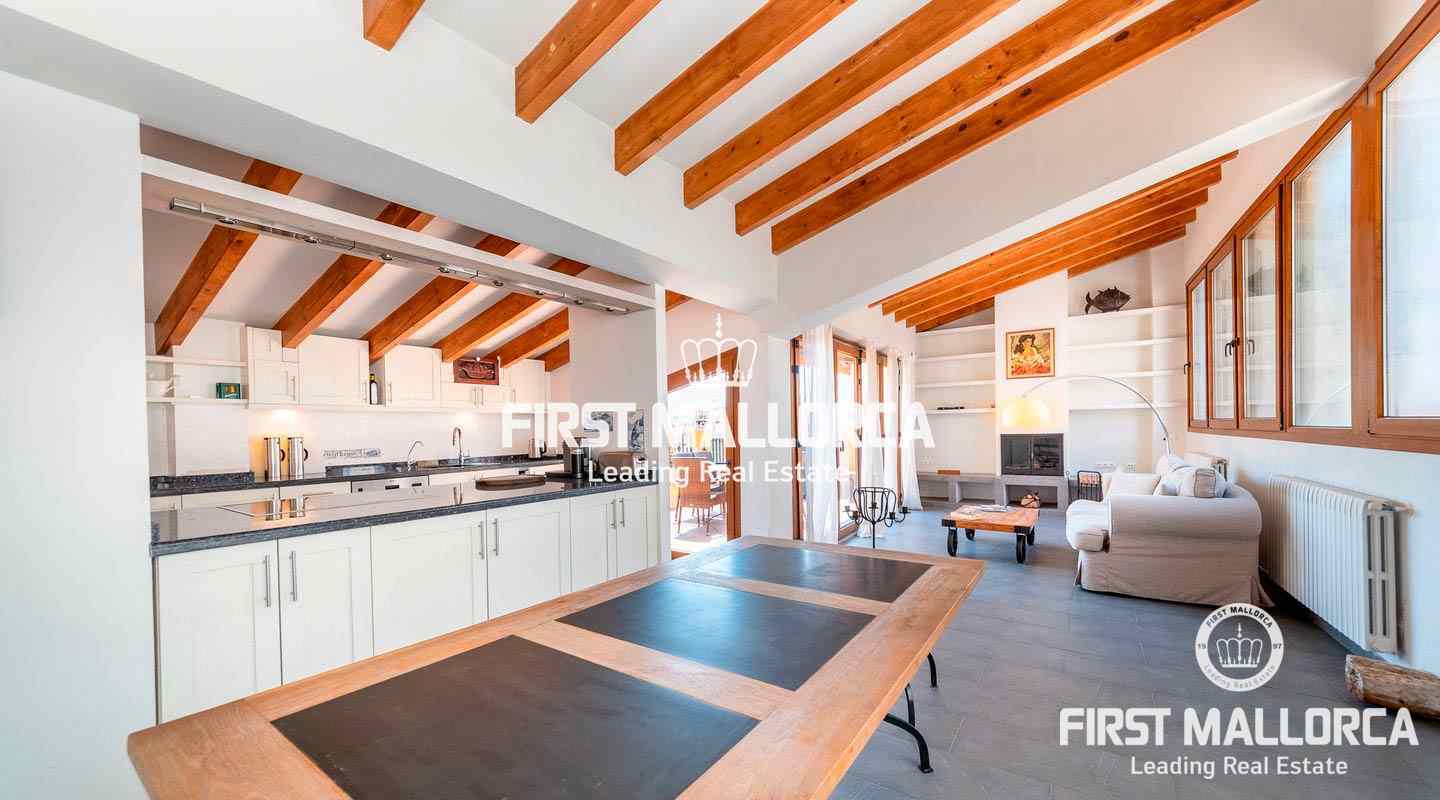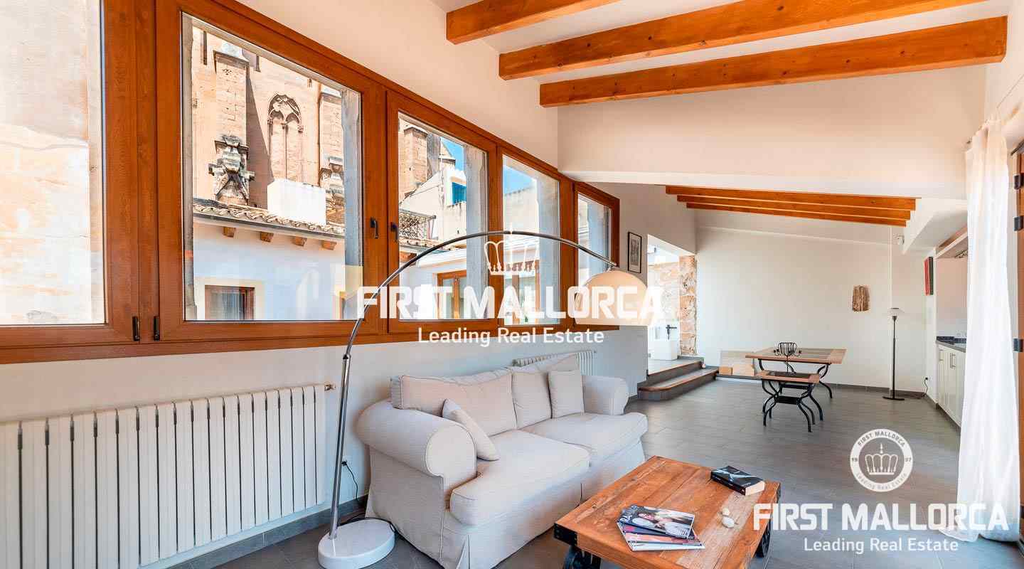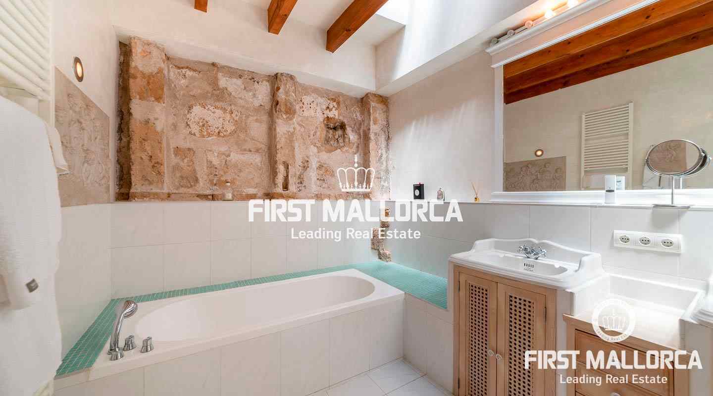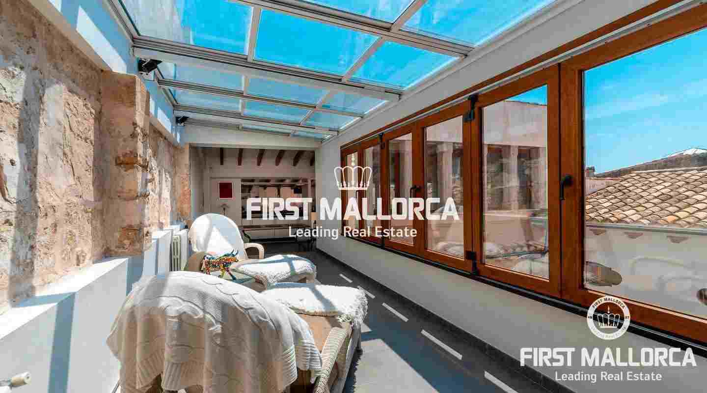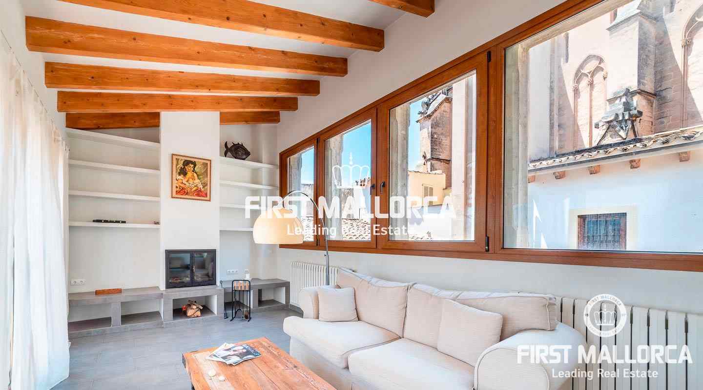 Este ático único está situado en el barrio más emblemático y elegante de la ciudad de Palma, La Calatrava. La propiedad se encuentra dentro de un edificio histórico de sólo tres unidades, ocupando la última planta, una gran terraza en la azotea y una torre con vistas al mar. Además, hay un apartamento independiente para invitados. La residencia principal ofrece un amplio dormitorio en suite, con la posibilidad de añadir otro dormitorio, una cocina totalmente equipada, salón con chimenea, salón comedor con techo de cristal retráctil y una terraza justo al lado de la cocina. En el nivel superior se encuentra la gran terraza de la azotea, magníficamente privada, ideal para el entretenimiento con la familia y los amigos. El vecino más cercano a la azotea es la iglesia Monti-Sion del siglo XV, que proporciona un ambiente único y una atmósfera histórica. También hay un pequeño despacho en la torre que ofrece vistas a la Bahía de Palma y a toda la ciudad. En la planta inferior se encuentra el apartamento de invitados de un dormitorio con baño completo y una bodega privada con techos abovedados originales y un generoso trastero. Las características adicionales incluyen un ascensor y un garaje privado para un coche pequeño. La zona de Calatrava es la más privilegiada para vivir en el Casco Antiguo de Palma. Está idealmente situada entre el moderno centro de la ciudad y las playas y la zona de moda del Portitxol.