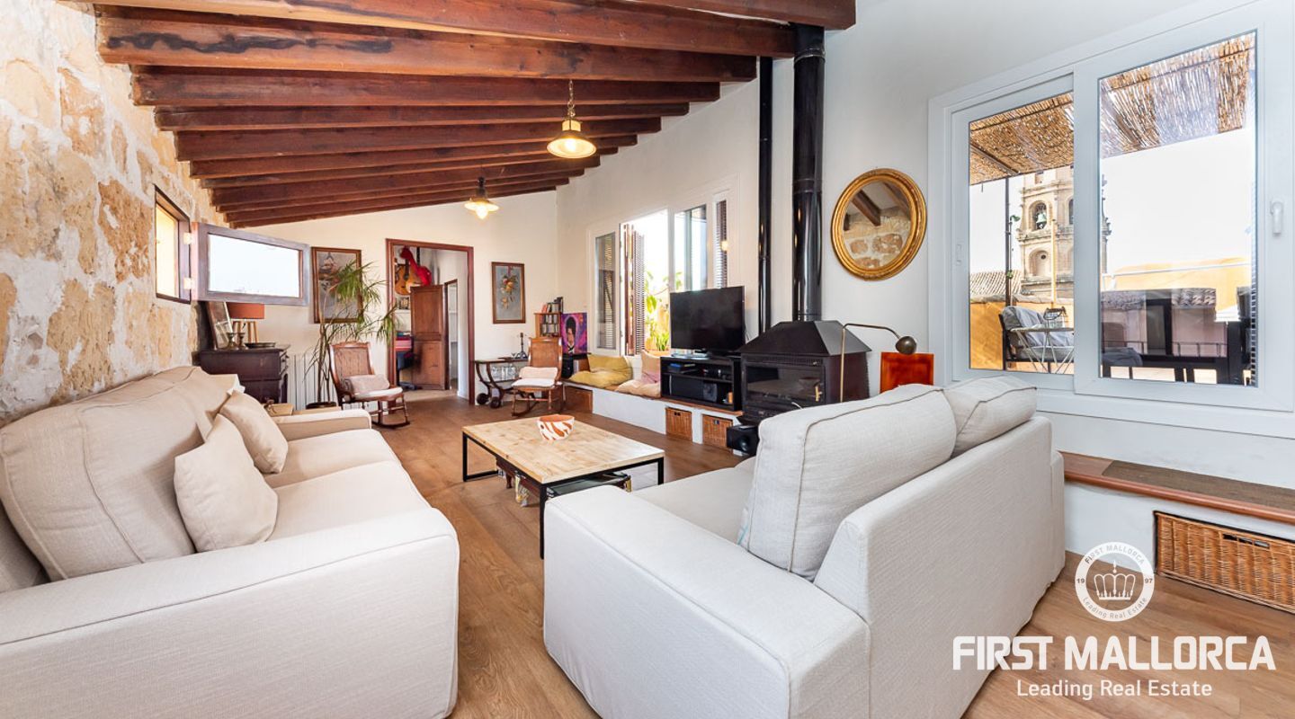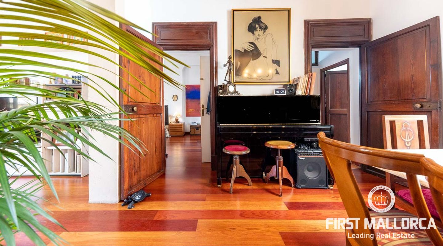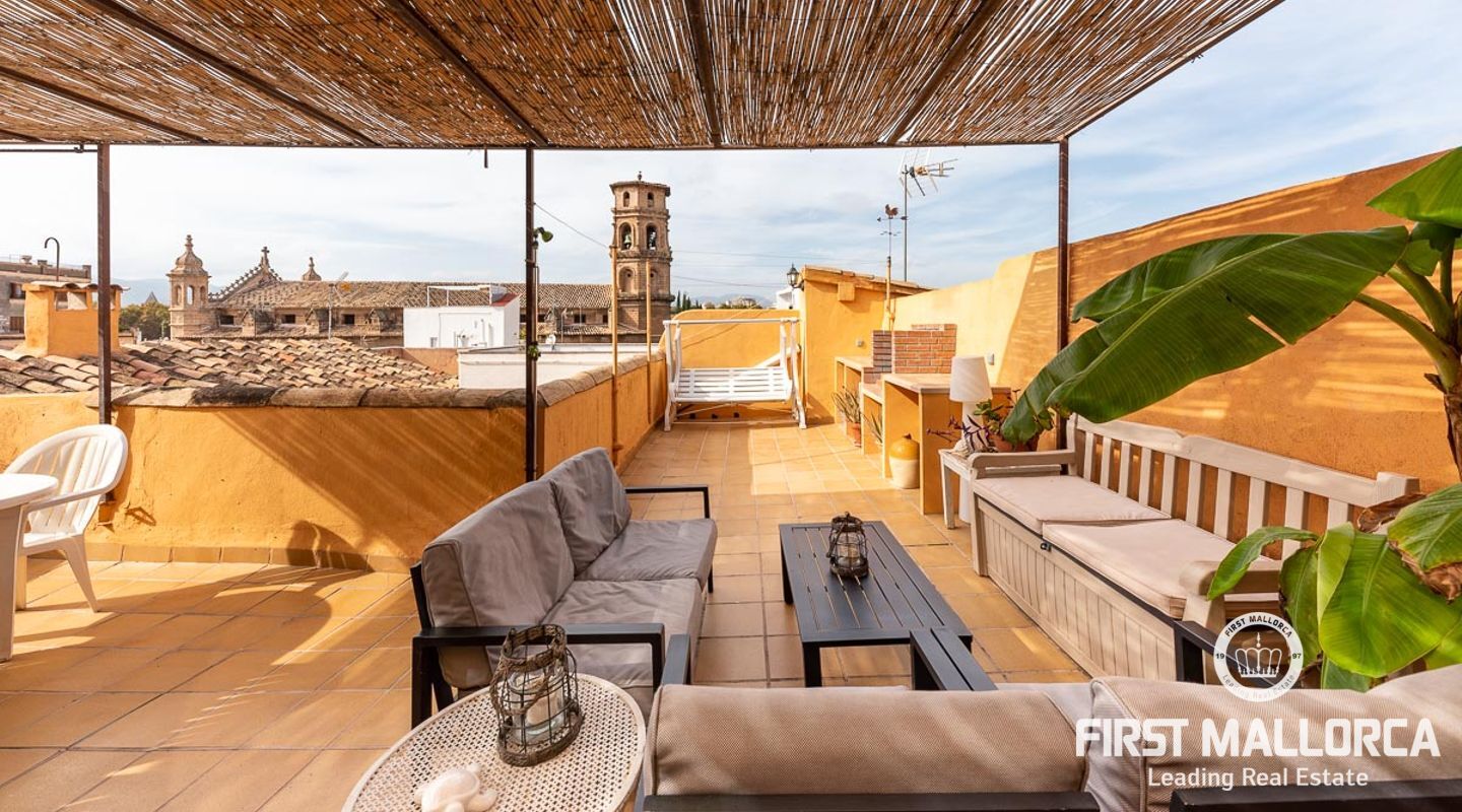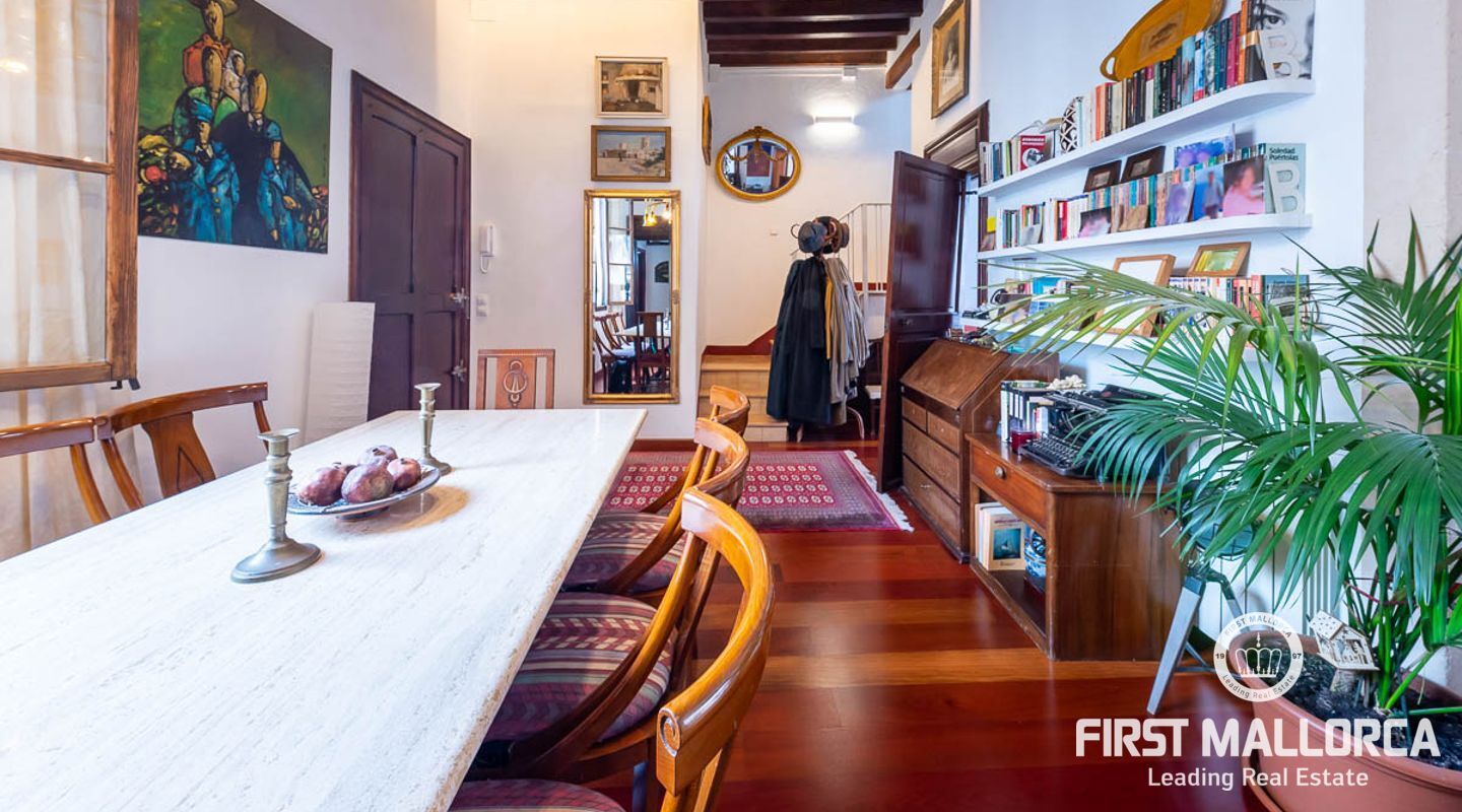 Este precioso ático ofrece una magnífica terraza donde tiene la oportunidad de disfrutar del buen tiempo que ofrece Mallorca, hacer una barbacoa con amigos y familiares o disfrutar de un momento de tranquilidad. Debido a la ubicación del edificio, la terraza se convierte en algo muy privado a pesar de estar en medio del casco antiguo. Cuando las noches son frías, puede disfrutar de la chimenea que se encuentra en el salón junto a la terraza. En la planta baja se encuentran los dormitorios, el comedor, la cocina y un baño. Todo en la planta baja se siente muy espacioso debido a los techos altos y la luz que se obtiene de las diferentes ventanas. La cocina es muy amplia y tiene una gran despensa al lado.