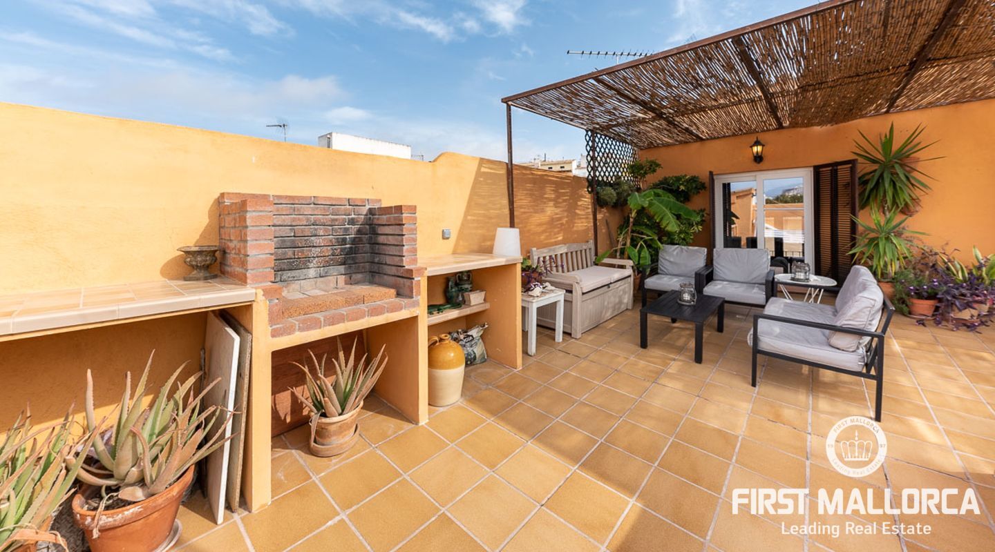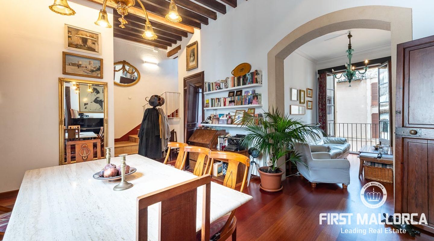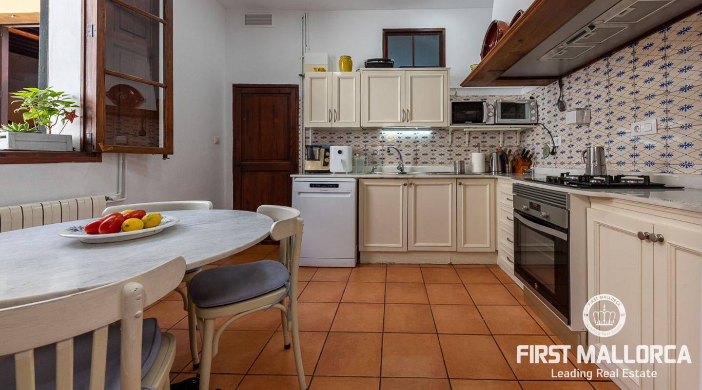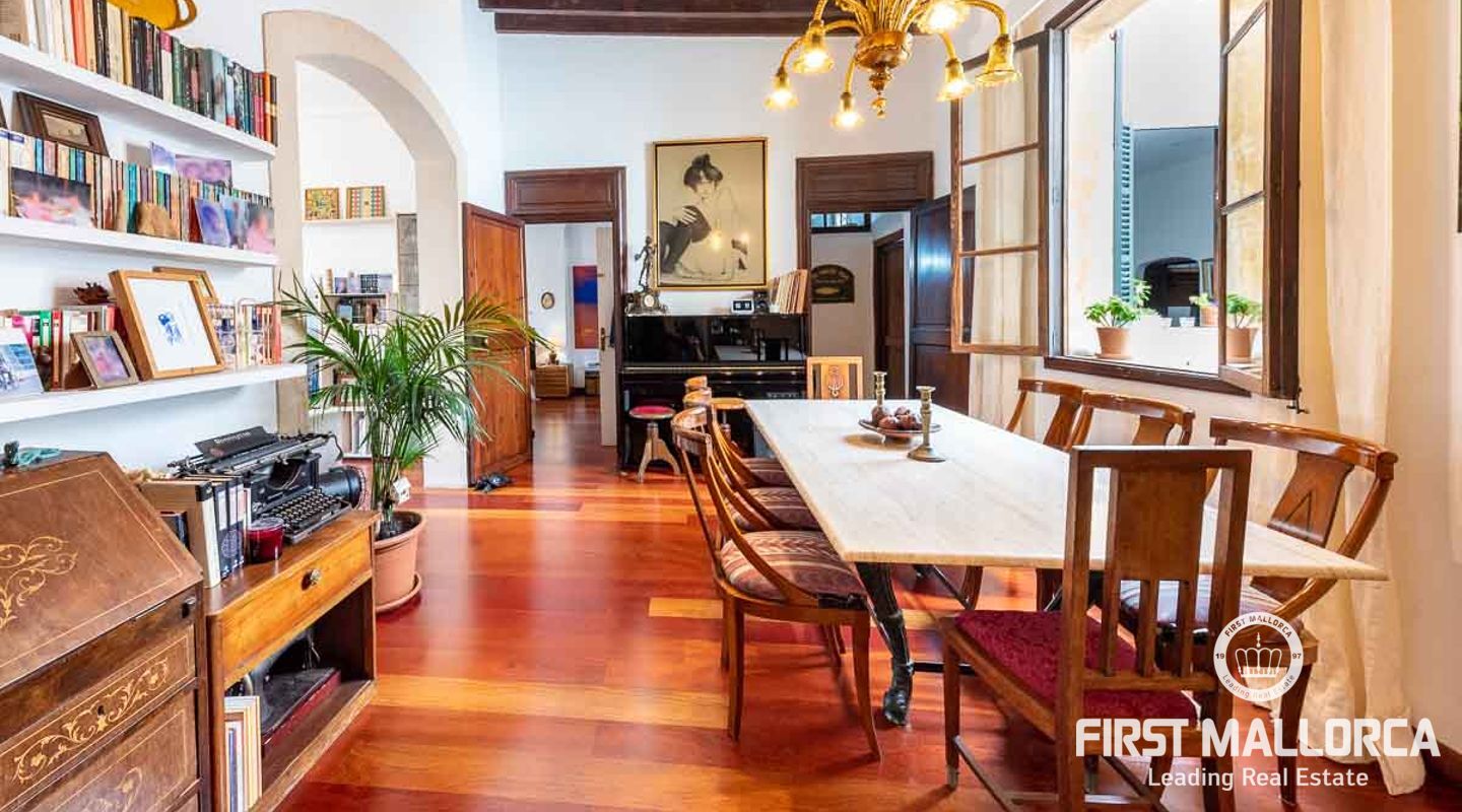 Este precioso ático ofrece una magnífica terraza donde tiene la oportunidad de disfrutar del buen tiempo que ofrece Mallorca, hacer una barbacoa con amigos y familiares o disfrutar de un momento de tranquilidad. Debido a la ubicación del edificio, la terraza se convierte en algo muy privado a pesar de estar en medio del casco antiguo. Cuando las noches son frías, puede disfrutar de la chimenea que se encuentra en el salón junto a la terraza. En la planta baja se encuentran los dormitorios, el comedor, la cocina y un baño. Todo en la planta baja se siente muy espacioso debido a los techos altos y la luz que se obtiene de las diferentes ventanas. La cocina es muy amplia y tiene una gran despensa al lado.
