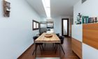 La planta superior (5ª) alberga un amplio y luminoso salón-comedor con impresionantes vistas sobre los tejados del casco antiguo, un segundo dormitorio doble con terraza privada en la fachada principal, y un baño completo de diseño. La moderna cocina, equipada con electrodomésticos de alta gama Gaggenau, se complementa con una práctica coladuría/lavandería y una segunda terraza orientada hacia la Iglesia de Santa Cruz.