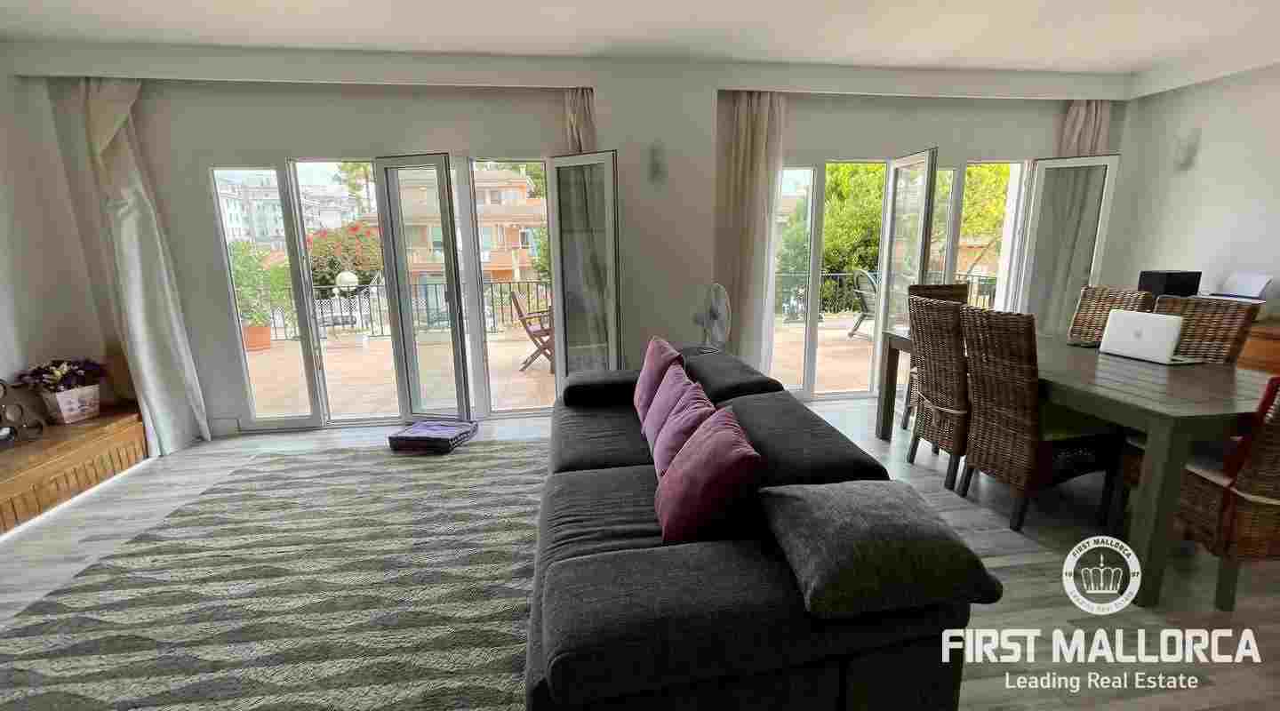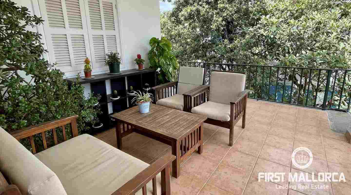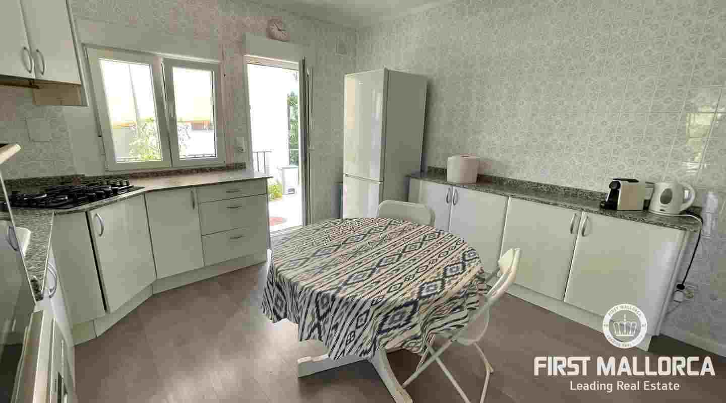A pocos metros de la playa de Puerto Alcudia, este ático se encuentra en una pequeña comunidad que consta de dos unidades. La propiedad tiene un total de 4 dormitorios, dos baños uno de ellos en suite, una cocina totalmente equipada y un amplio salón/comedor. Desde todas las habitaciones se puede acceder a la gran terraza circundante, que es lo más destacado del piso. La terraza ofrece una zona cubierta y otra descubierta y proporciona suficiente espacio para pasar agradables veladas con la familia y los amigos. Además de una hermosa vista del frondoso barrio, también se puede ver la playa desde aquí. Una escalera que baja desde la terraza conduce a un edificio separado que ofrece un pequeño estudio con baño. El estudio es ideal para convertirlo en una zona de invitados. La popular playa de arena de Puerto Alcudia está a pocos metros. Así como una selección de restaurantes y cafés recomendados. No dude en ponerse en contacto con nuestro equipo de FIRST MALLORCA Pollensa para obtener más información y concertar una visita.