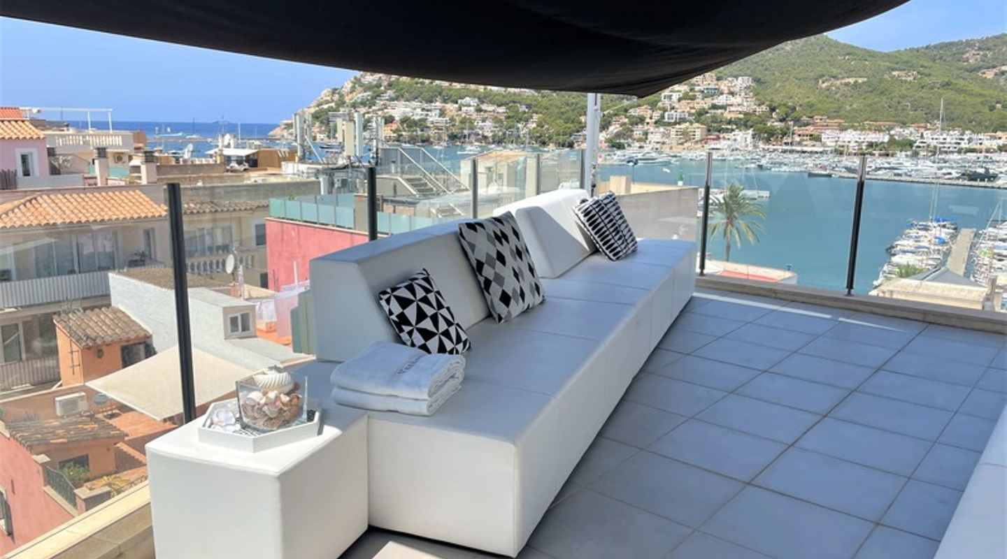 Esta propiedad ofrece 2 dormitorios con baños en suite, una cocina/comedor abierta con salón y vistas al Puerto de Andratx. Construido en 2 plantas, con la sala de estar en la primera planta y una terraza en la azotea muy espaciosa con su propia cocina y entrada independiente.
