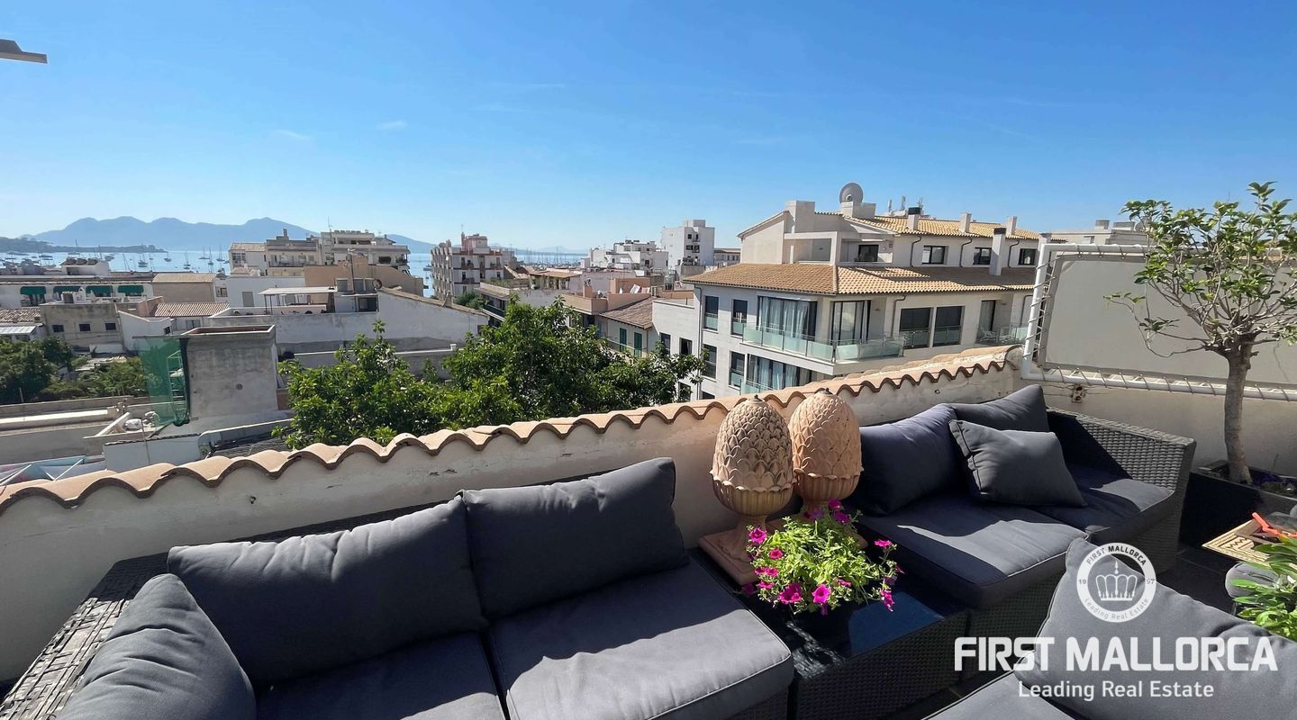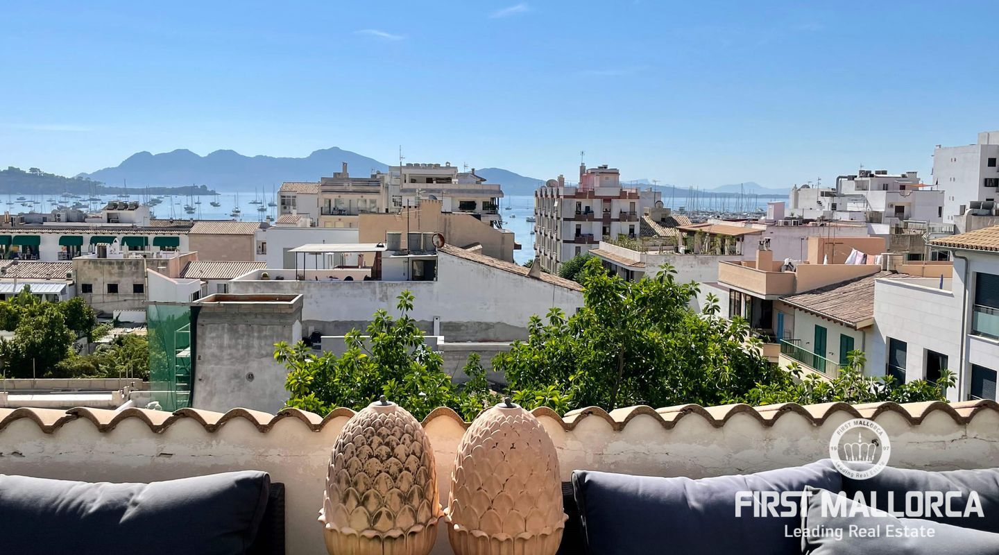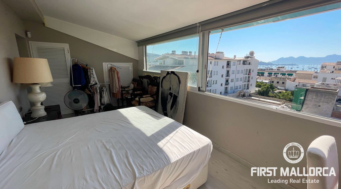 Este magnífico ático en la 4ª planta con ascensor ofrece fantásticas vistas al mar y se encuentra a pocos pasos del puerto y las playas de Puerto de Pollensa. También hay muchas tiendas y restaurantes a poca distancia. El piso tiene 2 dormitorios y 2 baños, uno de ellos ensuite y un salón-comedor abierto. La superficie construida es de 117m² incluyendo dos terrazas de unos 15m² con espacio para relajarse o cenar fuera.