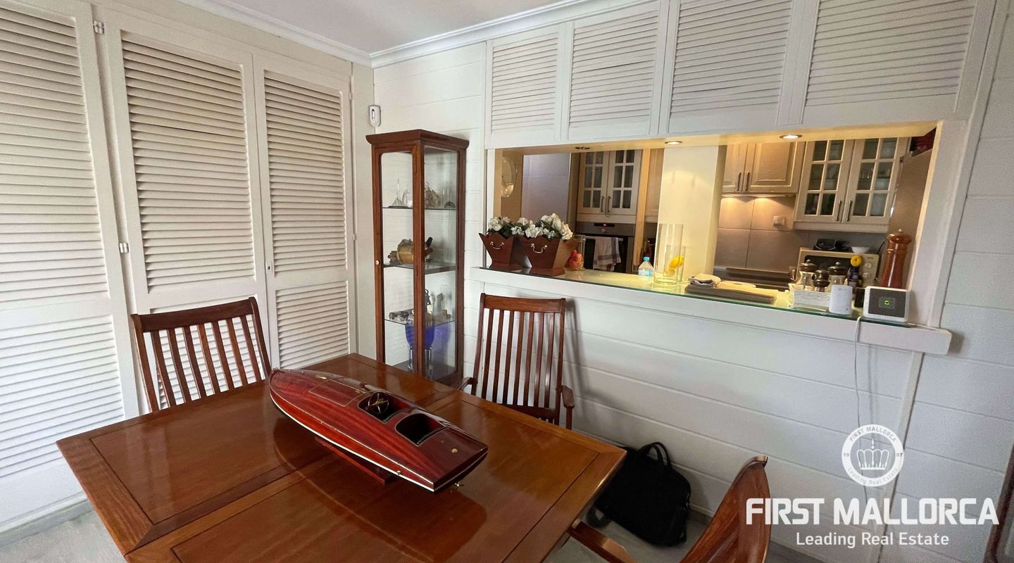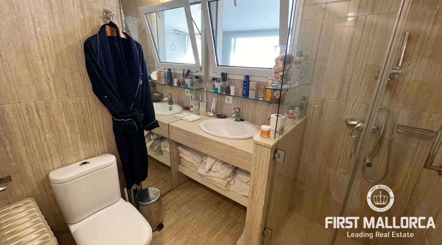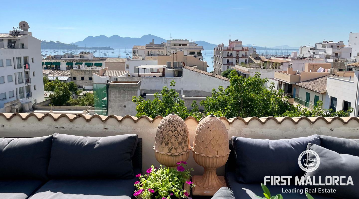 Este magnífico ático en la 4ª planta con ascensor ofrece fantásticas vistas al mar y se encuentra a pocos pasos del puerto y las playas de Puerto de Pollensa. También hay muchas tiendas y restaurantes a poca distancia. El piso tiene 2 dormitorios y 2 baños, uno de ellos ensuite y un salón-comedor abierto. La superficie construida es de 117m² incluyendo dos terrazas de unos 15m² con espacio para relajarse o cenar fuera.