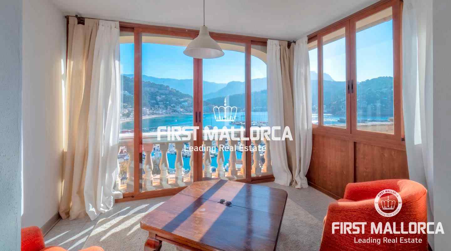 Este amplio ático en el famoso barrio pesquero de Santa Catalina goza de magníficas vistas a toda la bahía del Puerto de Sóller y se encuentra a escasos minutos andando del paseo marítimo con sus exclusivas tiendas y los excelentes restaurantes de tapas y mariscos, así como de la preciosa y larga playa de arena.