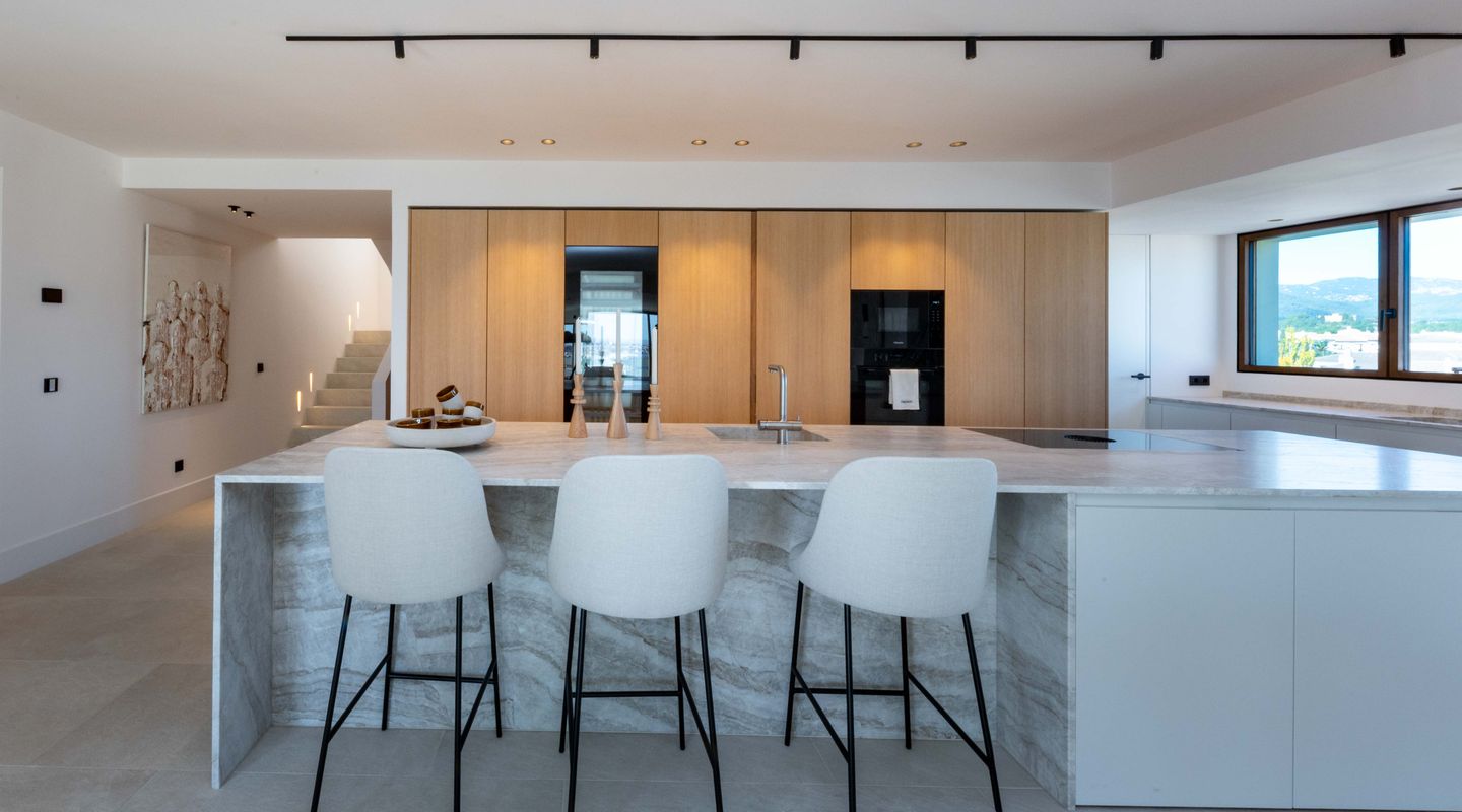 El impecable diseño interior y la arquitectura definen el carácter de este ático de dos plantas, en el que cada detalle ha sido cuidadosamente elaborado para crear un espacio visualmente impresionante y funcionalmente acogedor. La practicidad y la comodidad están garantizadas gracias a las dos plantas conectadas por una escalera interior, las terrazas de cada habitación, el estacionamiento subterráneo para dos coches y dos trasteros.