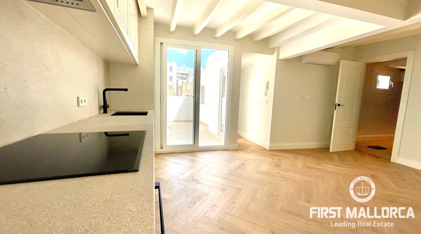 Recién reformado, este ático está en una de las zonas céntricas más tranquilas de Palma. La característica principal es su terraza al mismo nivel del salón, se puede usar prácticamente todos los días del año. Es el pied-à-terre ideal para disfrutar de Palma.