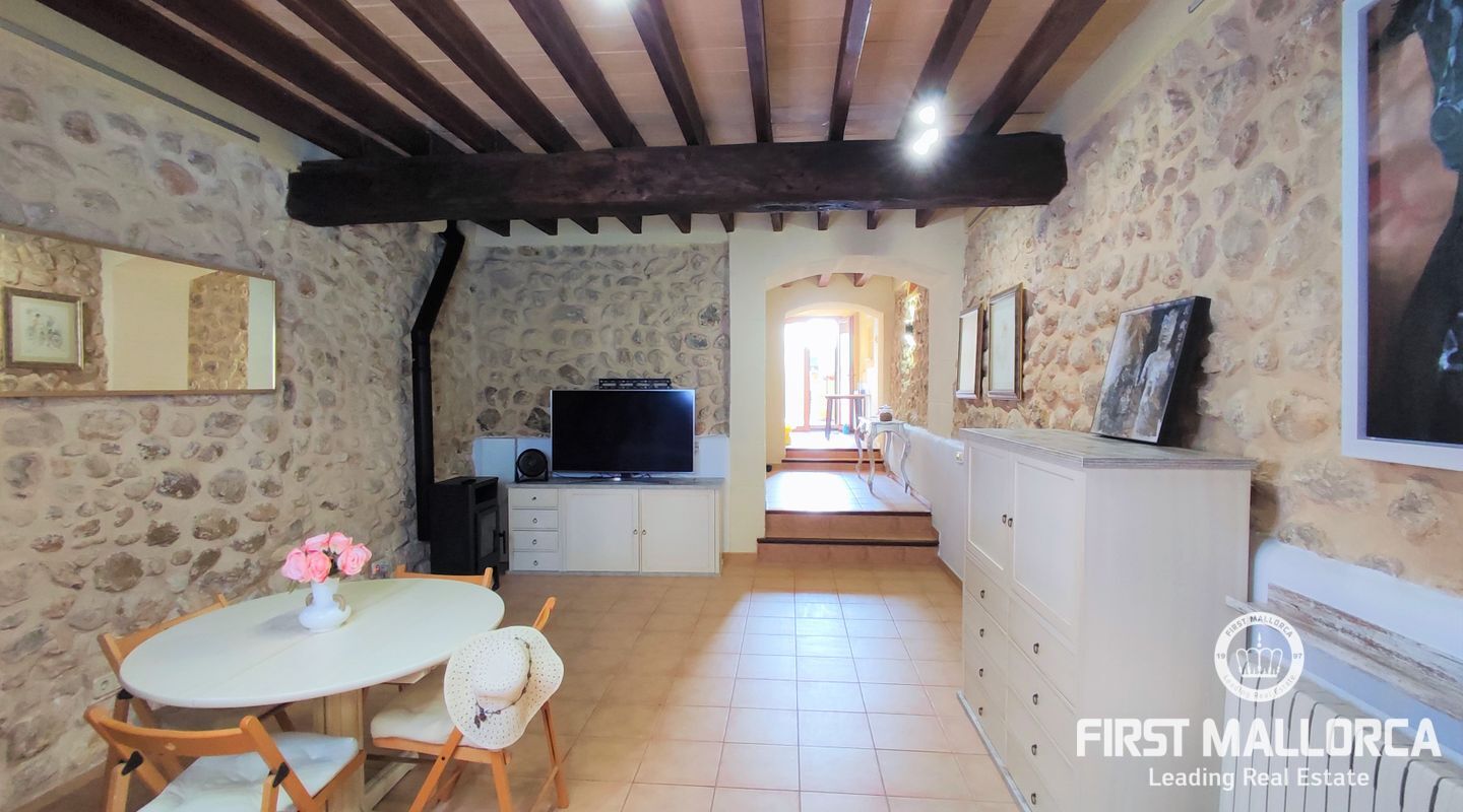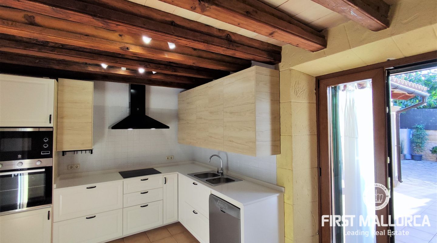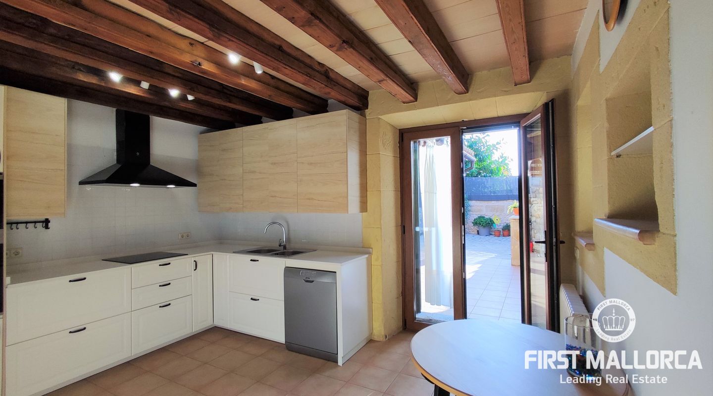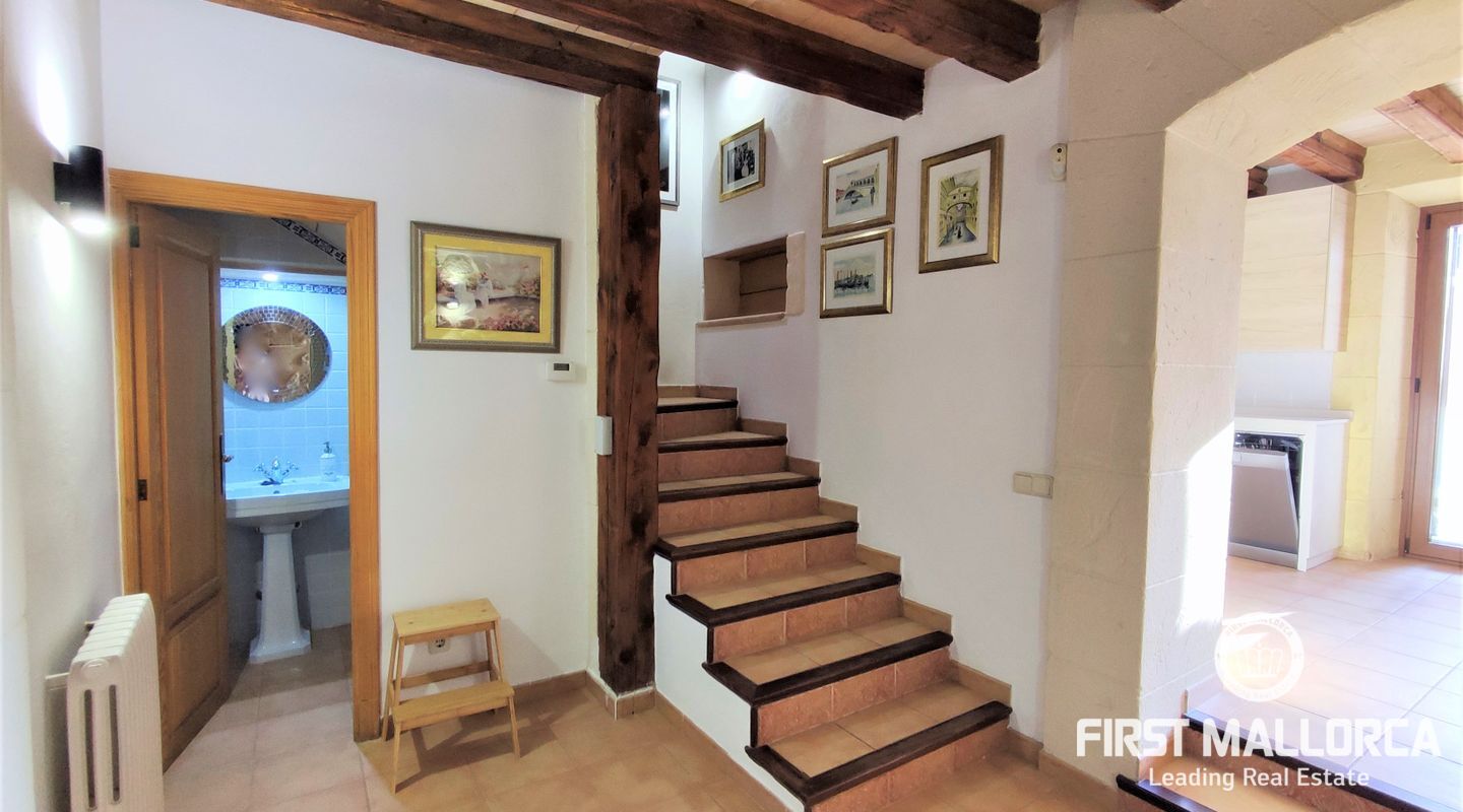En el centro histórico de Campanet encontramos esta preciosa casa lista para entrar a vivir con 159m2 construidos en una parcela de 131m2. Esta encantadora propiedad dispone de 3 dormitorios (2 triples con techos muy altos y 1 individual con armario empotrado) 2 baños y 1 aseo. El salón es amplio con paredes típicas mallorquinas de piedra, vigas vistas de madera y hormigón. La cocina está totalmente amueblada y perfectamente equipada. La casa dispone de calefacción por radiadores de gasoil, aire acondicionado, chimenea, ventanas de PVC con doble acristalamiento y puente térmico con aislamiento acústico. Las puertas de la vivienda son de madera maciza y la instalación eléctrica está toda renovada según normativa vigente. La propiedad tiene un patio empedrado con mucho encanto y también hay una plaza de garaje para un coche. No dude en ponerse en contacto con FIRST MALLORCA para más información o para concertar una visita. Nuestro equipo está a su disposición en todo momento.