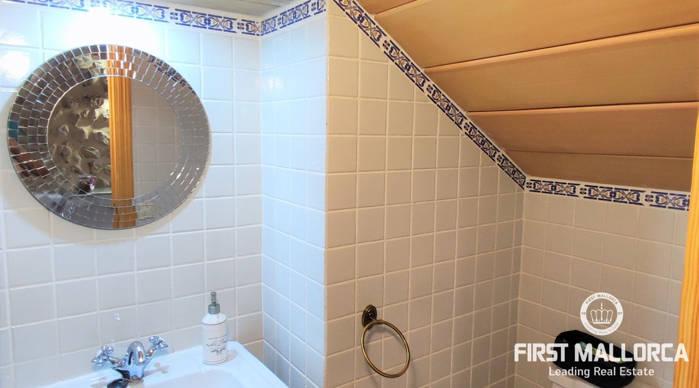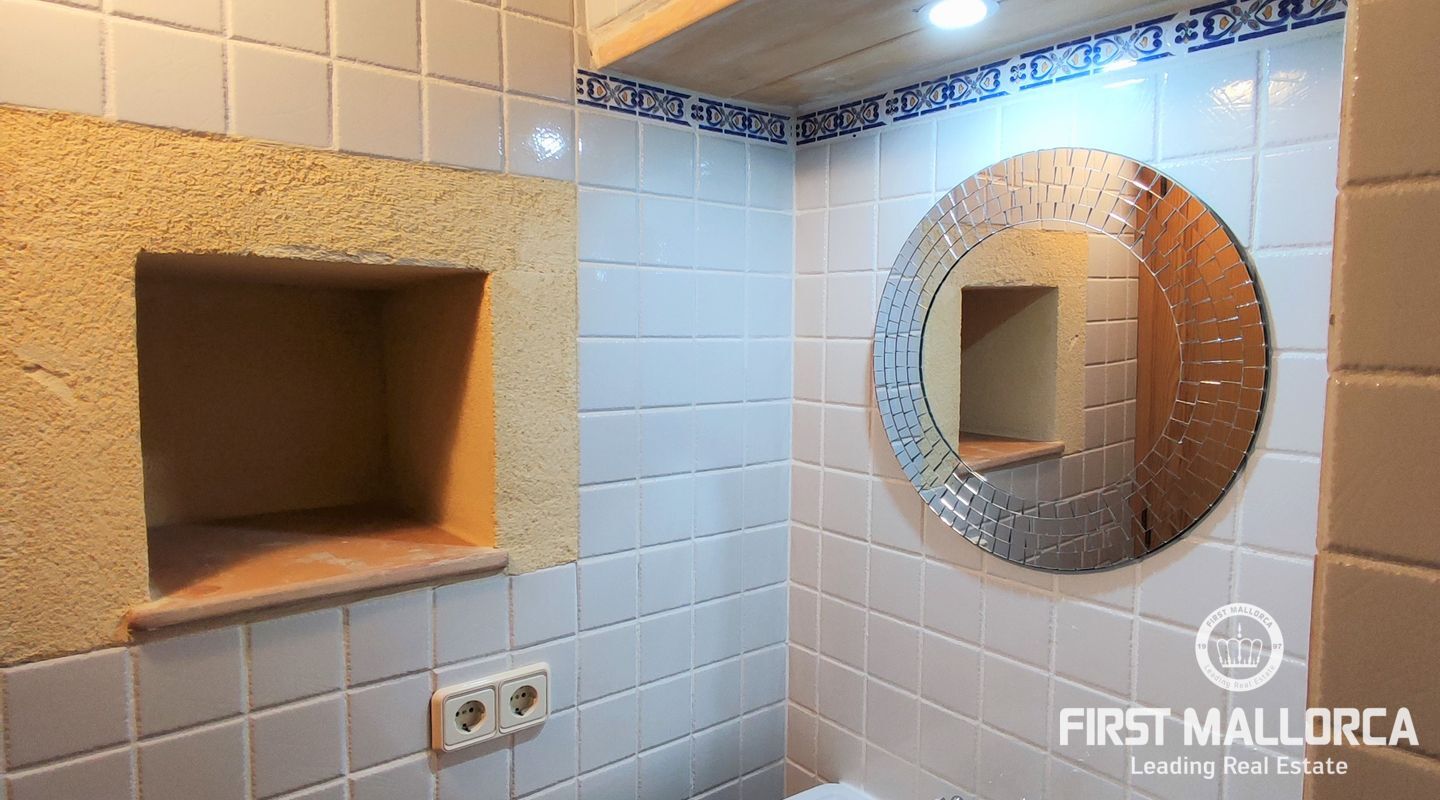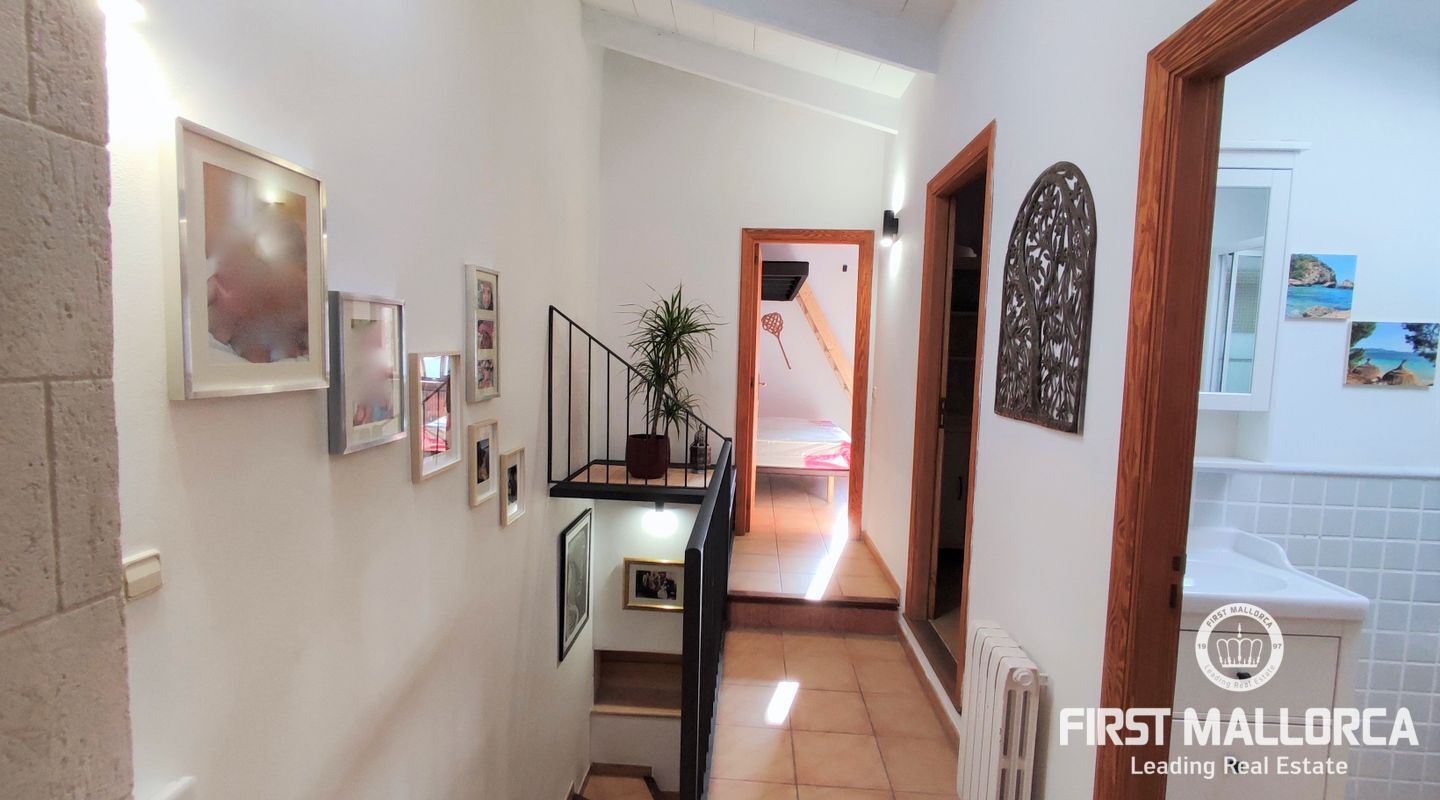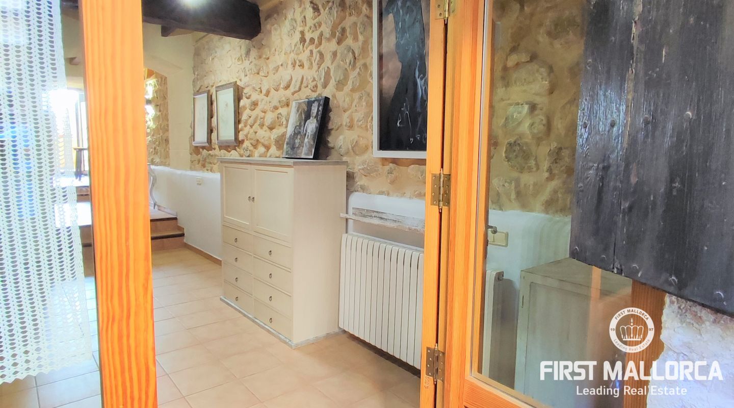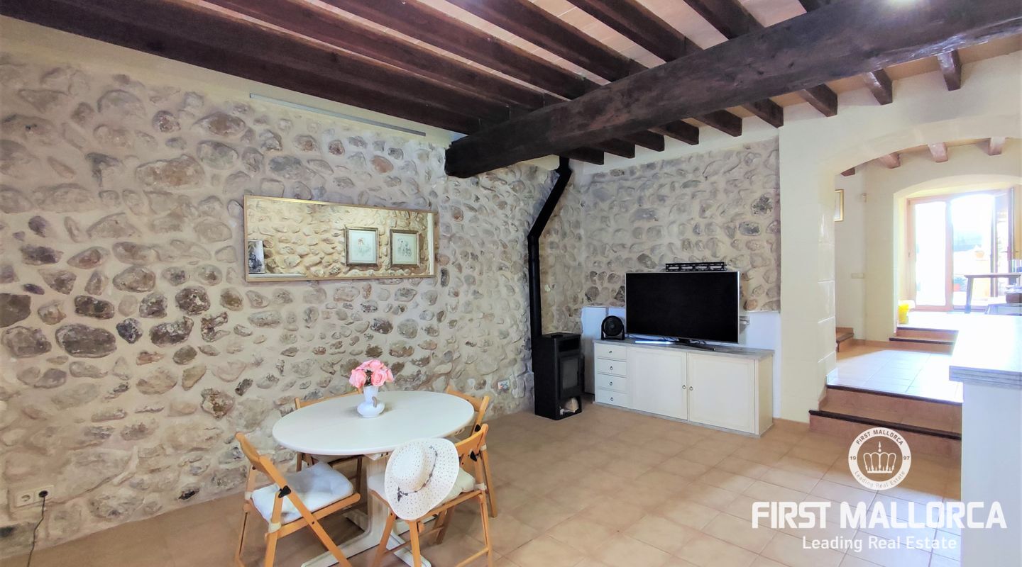 En el centro histórico de Campanet encontramos esta preciosa casa lista para entrar a vivir con 159m2 construidos en una parcela de 131m2. Esta encantadora propiedad dispone de 3 dormitorios (2 triples con techos muy altos y 1 individual con armario empotrado) 2 baños y 1 aseo. El salón es amplio con paredes típicas mallorquinas de piedra, vigas vistas de madera y hormigón. La cocina está totalmente amueblada y perfectamente equipada. La casa dispone de calefacción por radiadores de gasoil, aire acondicionado, chimenea, ventanas de PVC con doble acristalamiento y puente térmico con aislamiento acústico. Las puertas de la vivienda son de madera maciza y la instalación eléctrica está toda renovada según normativa vigente. La propiedad tiene un patio empedrado con mucho encanto y también hay una plaza de garaje para un coche. No dude en ponerse en contacto con FIRST MALLORCA para más información o para concertar una visita. Nuestro equipo está a su disposición en todo momento.