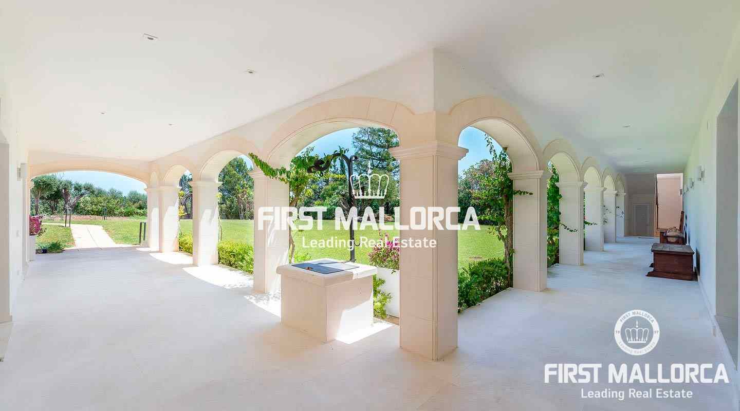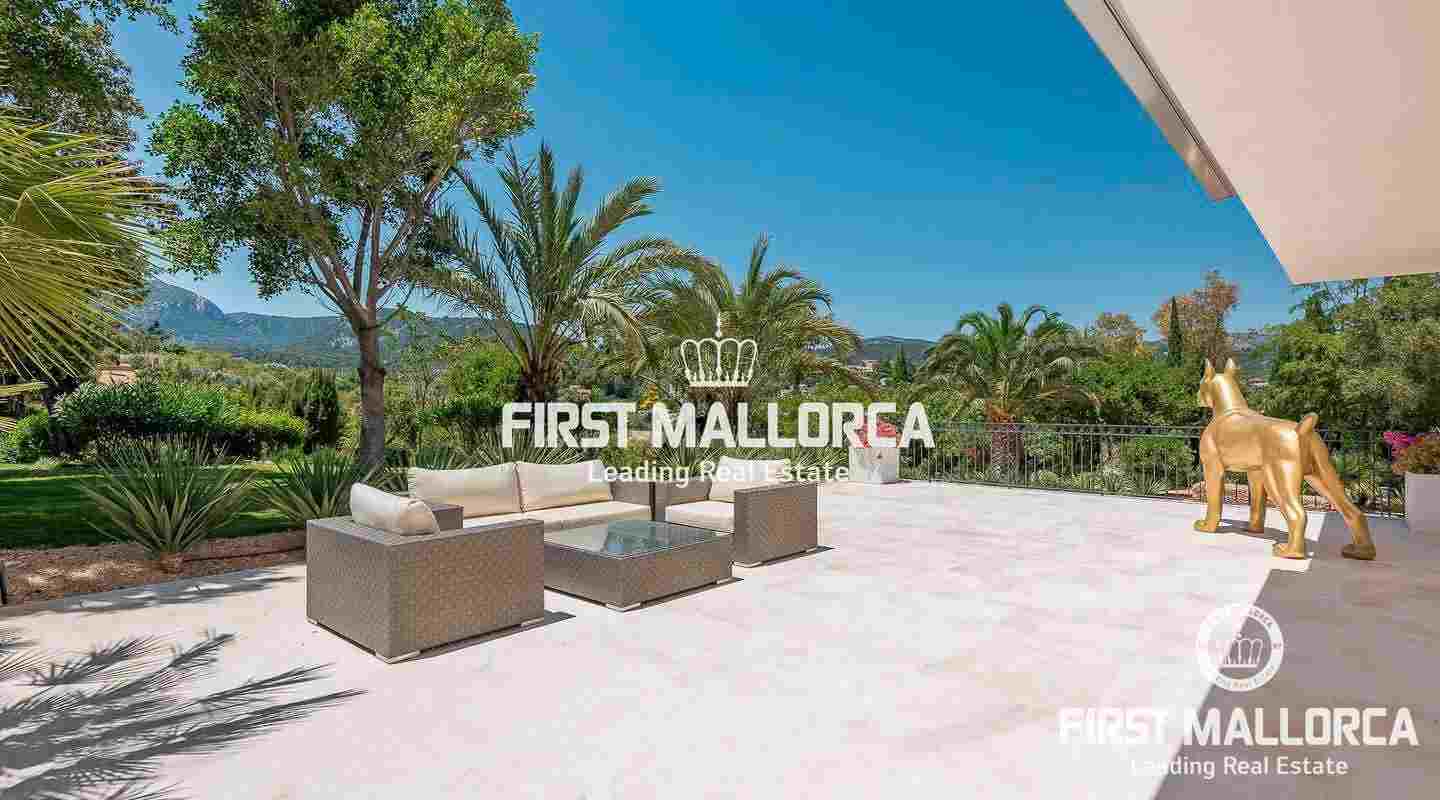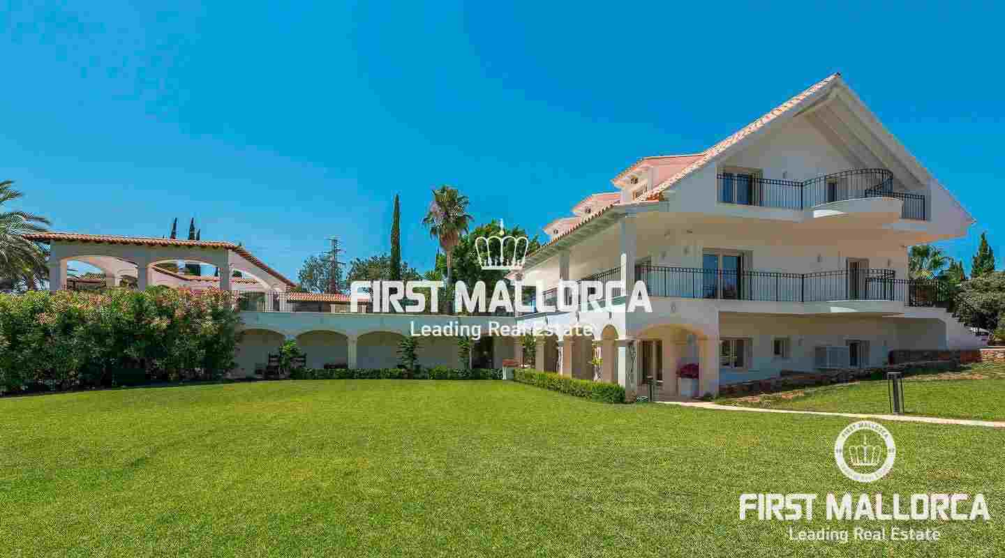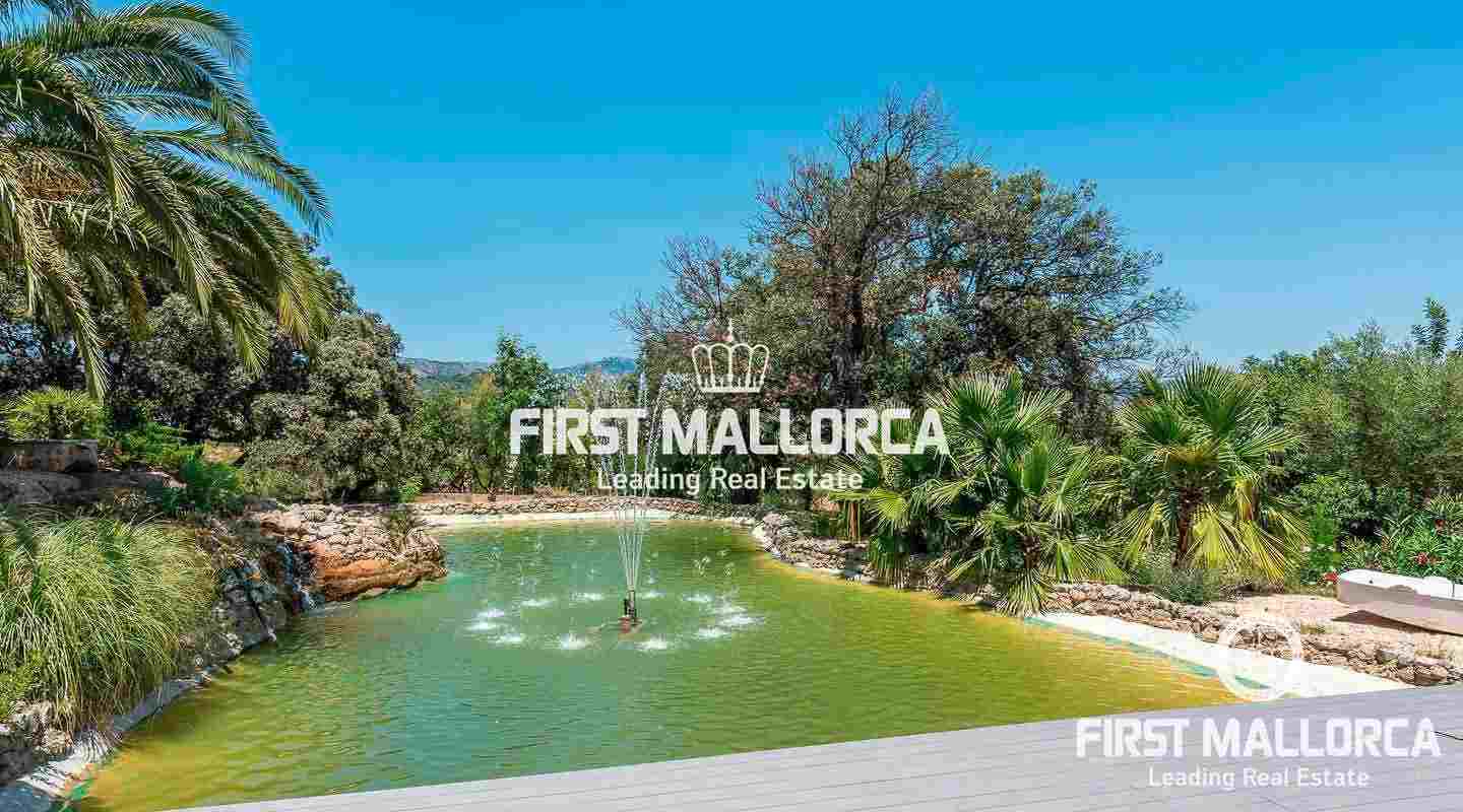 La parcela de 15,000m2 está completamente ajardinada, incluyendo un estanque de natación, con fauna diversa y césped plano. Ya desde el nivel de vida, esta villa de lujo tiene una fantástica vista de 180 grados del mar, Palma y el paisaje circundante. Las amplias terrazas con piscina lo invitan a relajarse y bañarse.
