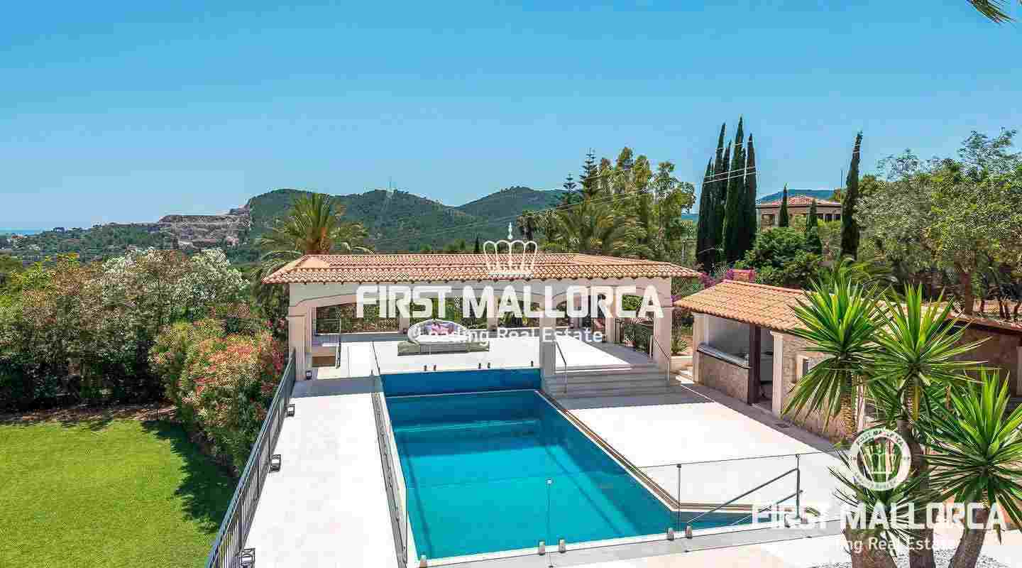 Esta villa, que acaba de completarse después de una amplia modernización, se encuentra en una ubicación privada elevada en un entorno tranquilo de Establiments, a solo unos minutos en coche del centro de Palma.