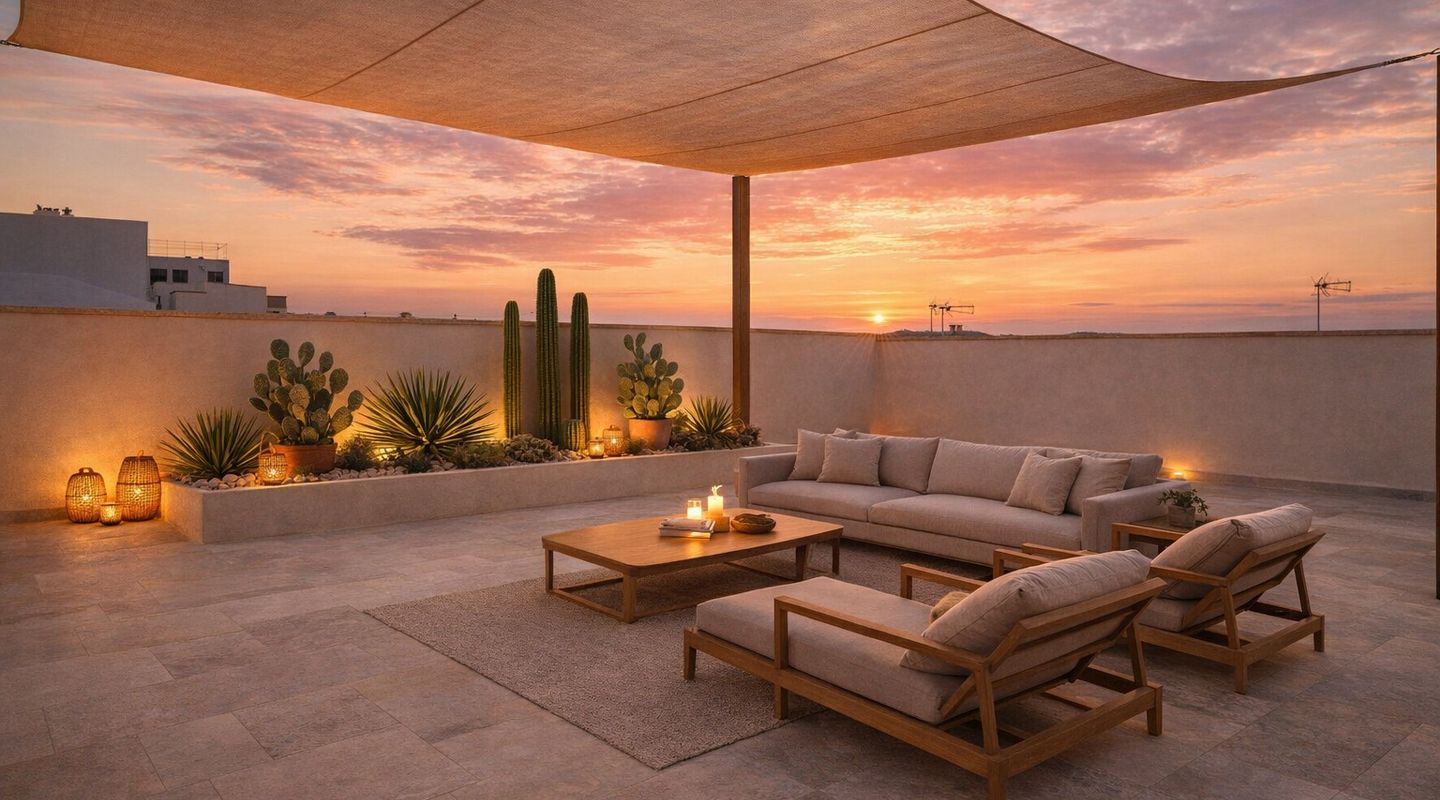 Nota: Parte del mobiliario (plantas, muebles, cocina) ha sido recreado virtualmente mediante IA y sirve únicamente como inspiración. La propiedad se vende sin amueblar.