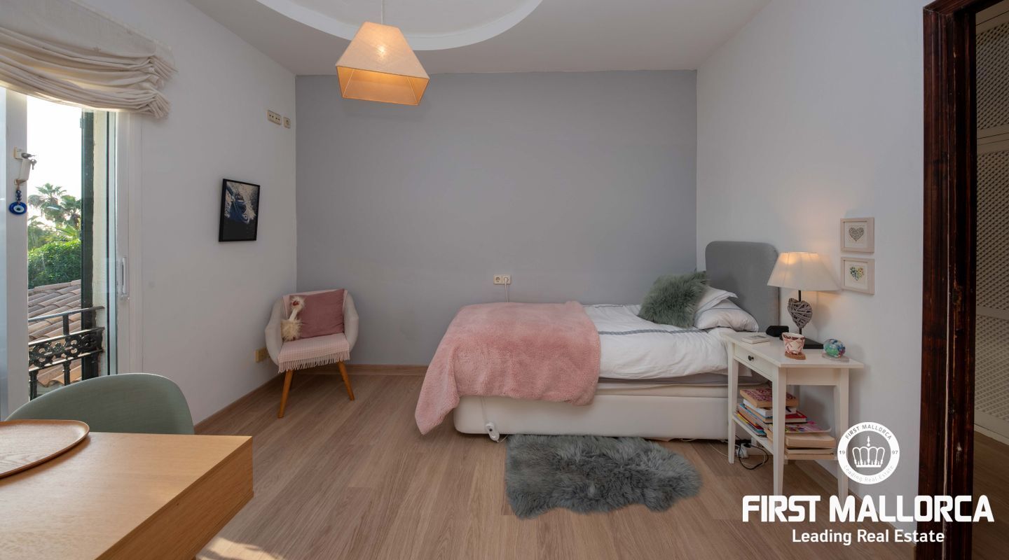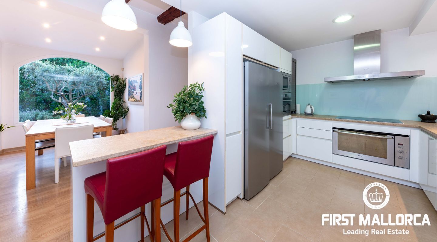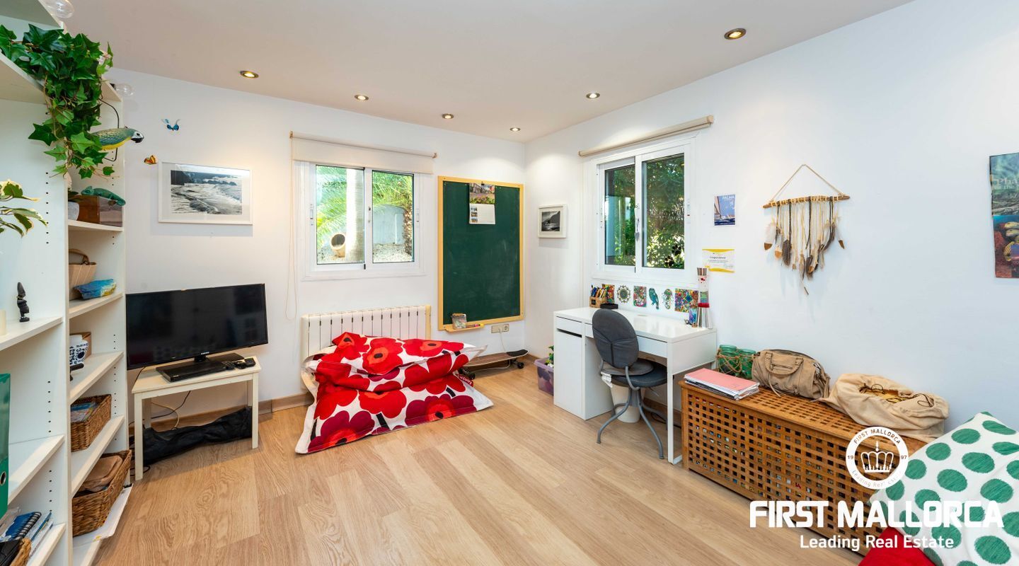 Construida en 1997 en una parcela plana de 1130 m2, esta casa ofrece un salón generoso e inundado de luz, con una nueva cocina abierta a la izquierda y acceso al jardín y a la zona de la piscina. Dos habitaciones y un aseo para invitados completan esta planta. en la primera planta encontramos el segundo dormitorio, un baño completo independiente y finalmente el dormitorio principal con baño en suite y una soleada terraza con vista parcial al mar y orientación sur-sureste. La propiedad dispone también de un garaje para dos coches. Detrás de la propiedad hay una zona verde, mientras que Port Adriano, los campos de golf y el pueblo de Santa Ponsa con todas sus comodidades están a sólo unos minutos. Si usted y su familia buscan mudarse a la isla, esta es la propiedad perfecta para usted y esperamos llevarlo a esta casa. También está disponible un vídeo de la propiedad.