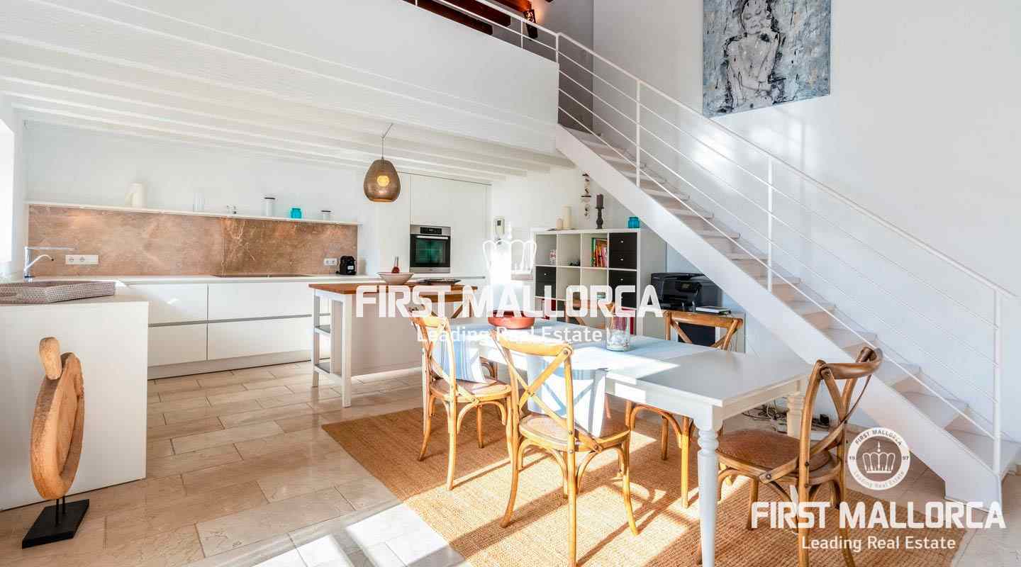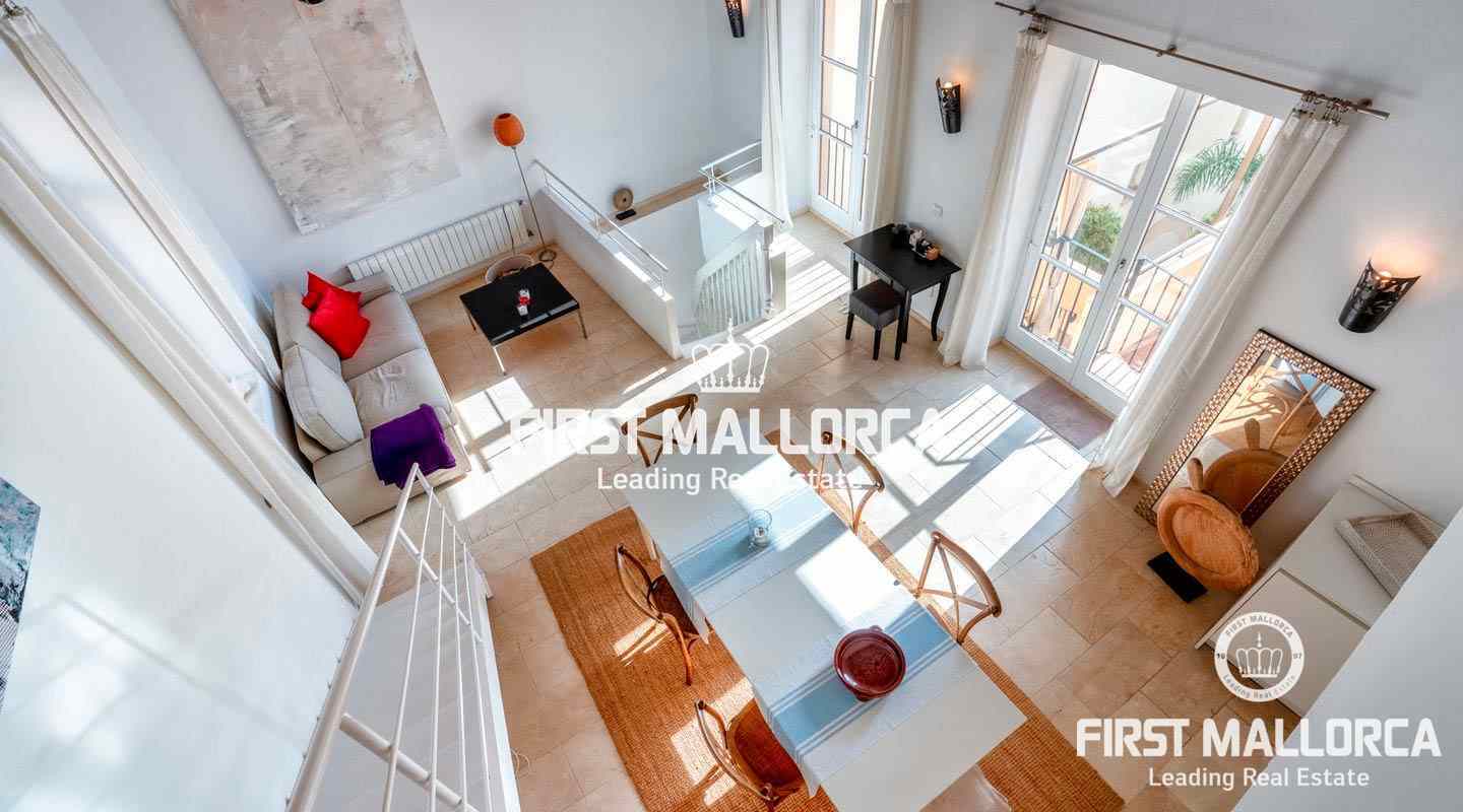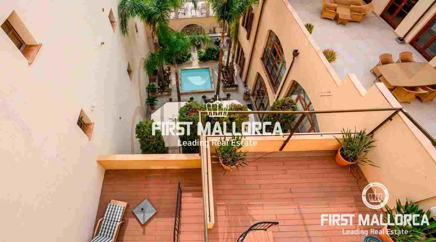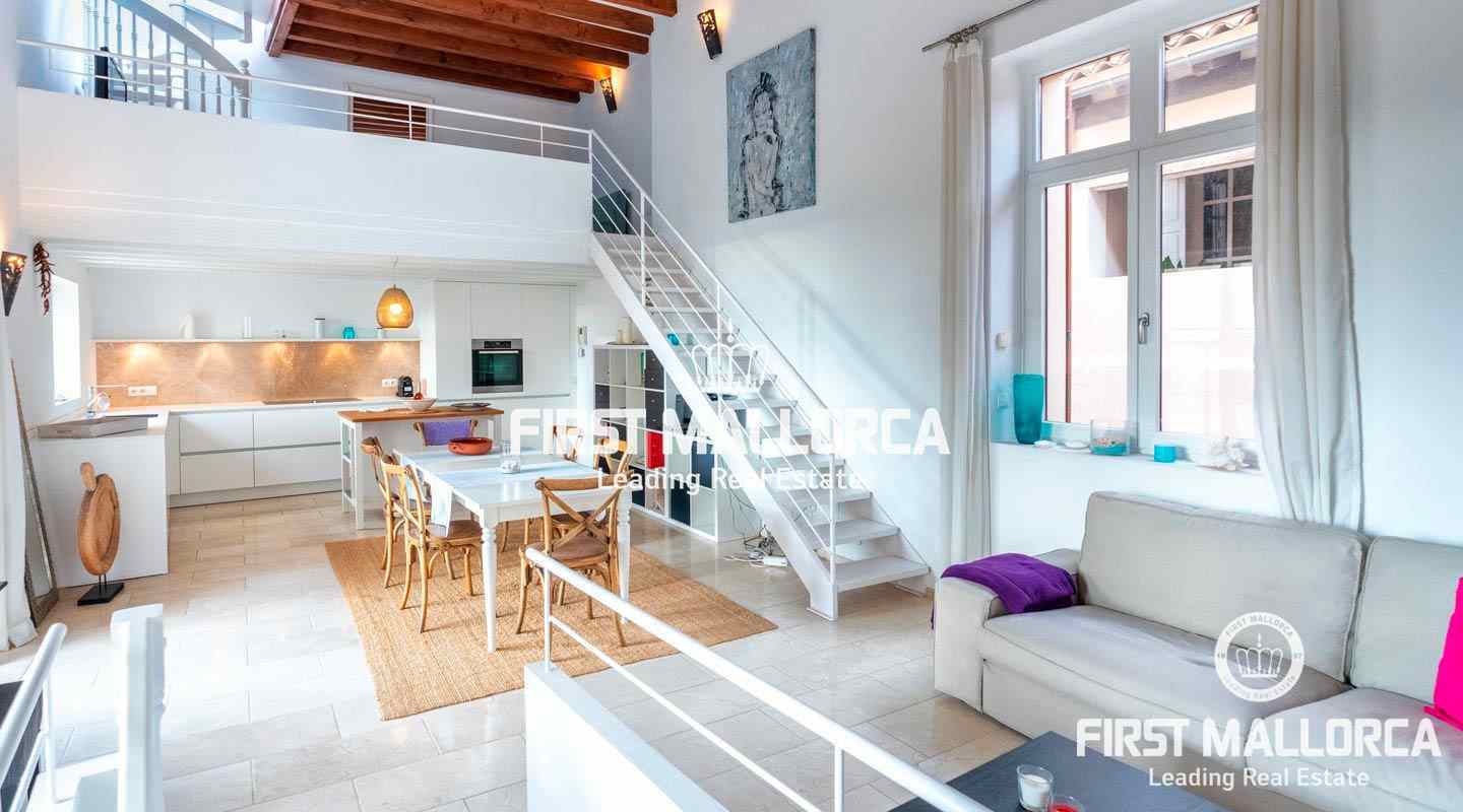 La propiedad cuenta, además, con un apartamento para invitados en la planta baja, con 2 entradas independientes desde la calle y el patio, y directamente conectado con la vivienda por un ascensor privado. Desde allí se puede acceder a la zona wellness en el sótano, con sauna, jacuzzi y baño. La casa adosada se vende amueblado y dispone de aire acondicionado, calefacción por suelo radiante, suelos de piedra natural y doble acristalamiento. Por favor, póngase en contacto con nuestra oficina inmobiliaria de FIRST MALLORCA en Palma para obtener más información.