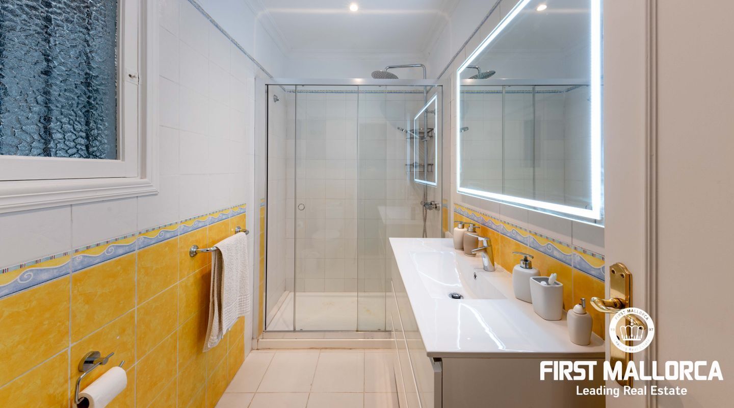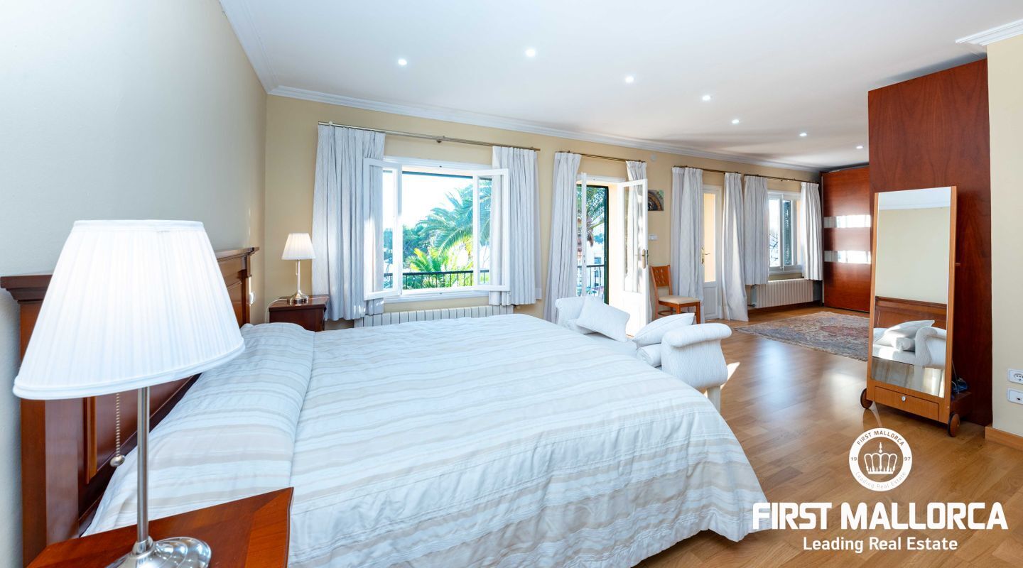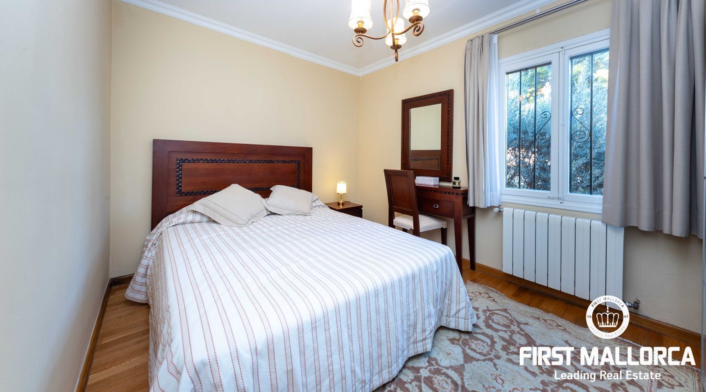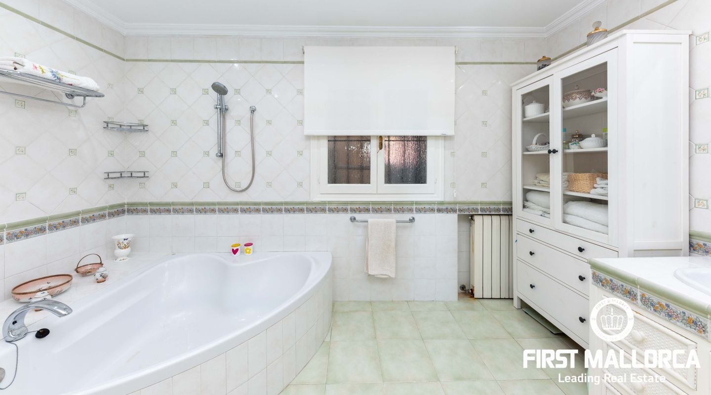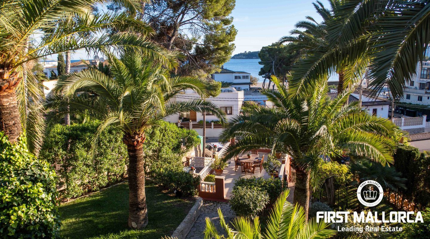 Preciosa villa con vista al mar y un bonito jardín con piscina en Palma Nova. La propiedad tiene una superficie construida de aproximadamente 582 m2 repartidos en 3 plantas. En el sótano encontramos un "apartamento" para invitados que tiene su acceso independiente con una cocina pequeña y un baño. La planta baja cuenta con un amplio y luminoso salón-comedor con chimenea, cocina y salida a la terraza con fácil acceso a la piscina y jardines mediterráneos con palmeras, árboles y plantas. En el mismo nivel también encontramos otro comedor, otro salón, 1 dormitorio y un aseo de invitados. Subiendo a la primera planta hay 4 dormitorios y 4 baños, uno de ellos es con baño en suite, y vestidor. También cuenta con coladuría y 2 salidas a unas escaleras exteriores que bajan hasta el jardín. La villa tiene aparcamiento y trastero. Esta propiedad impresiona especialmente por su ubicación céntrica y tranquila, la playa y el supermercado, tiendas, bares y restaurantes están a poca distancia y se puede llegar a Palma en coche en 10 minutos