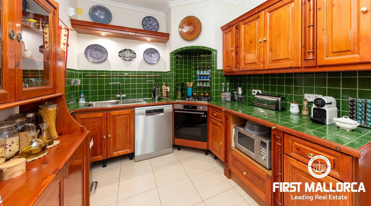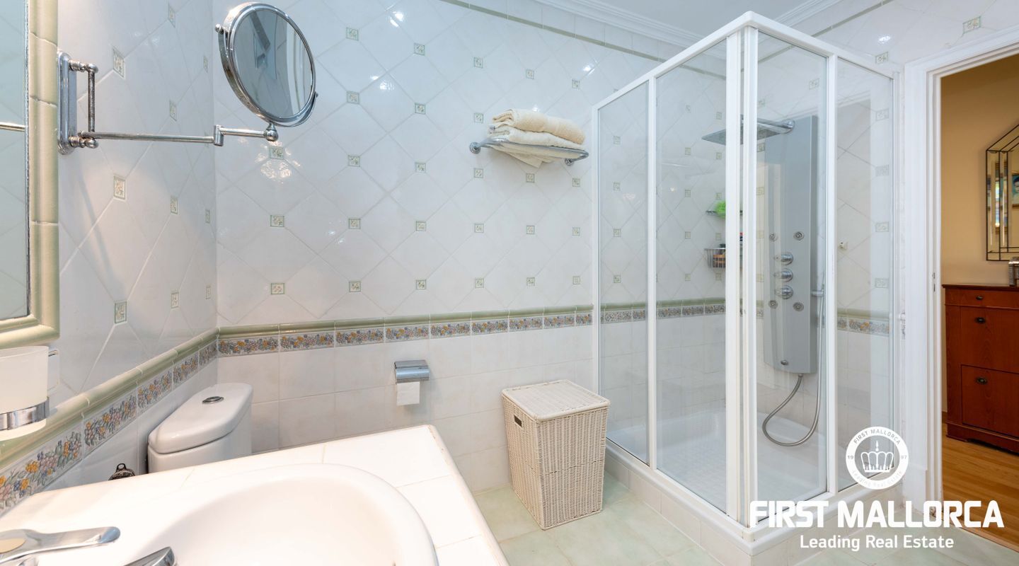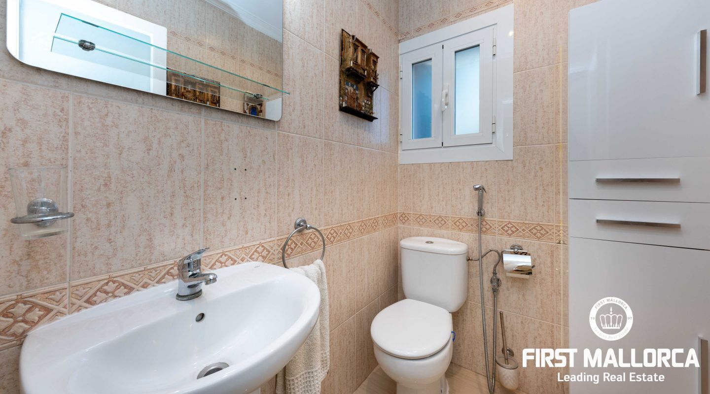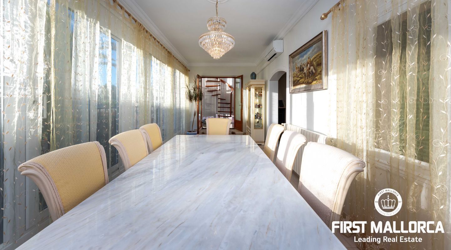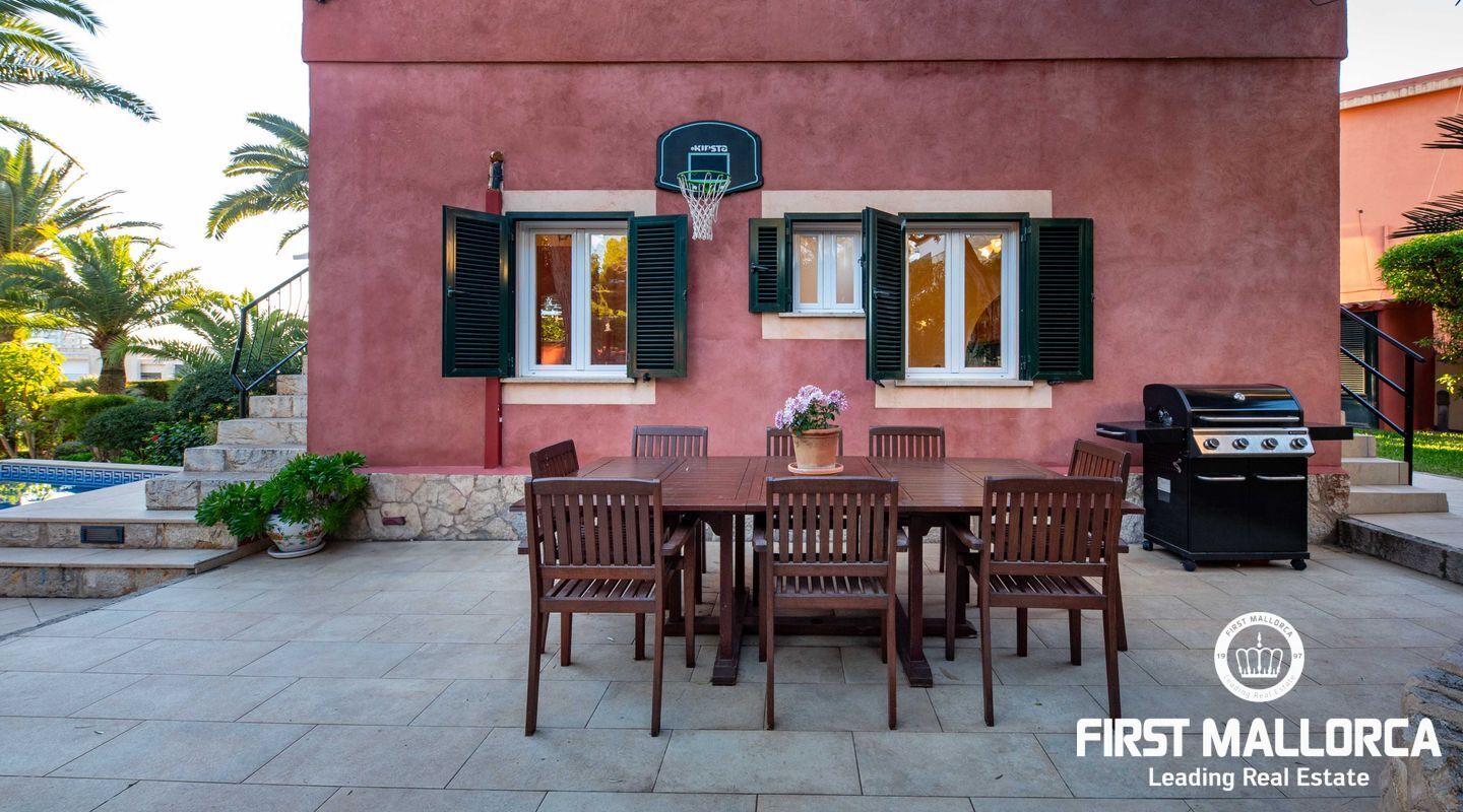 Preciosa villa con vista al mar y un bonito jardín con piscina en Palma Nova. La propiedad tiene una superficie construida de aproximadamente 582 m2 repartidos en 3 plantas. En el sótano encontramos un "apartamento" para invitados que tiene su acceso independiente con una cocina pequeña y un baño. La planta baja cuenta con un amplio y luminoso salón-comedor con chimenea, cocina y salida a la terraza con fácil acceso a la piscina y jardines mediterráneos con palmeras, árboles y plantas. En el mismo nivel también encontramos otro comedor, otro salón, 1 dormitorio y un aseo de invitados. Subiendo a la primera planta hay 4 dormitorios y 4 baños, uno de ellos es con baño en suite, y vestidor. También cuenta con coladuría y 2 salidas a unas escaleras exteriores que bajan hasta el jardín. La villa tiene aparcamiento y trastero. Esta propiedad impresiona especialmente por su ubicación céntrica y tranquila, la playa y el supermercado, tiendas, bares y restaurantes están a poca distancia y se puede llegar a Palma en coche en 10 minutos