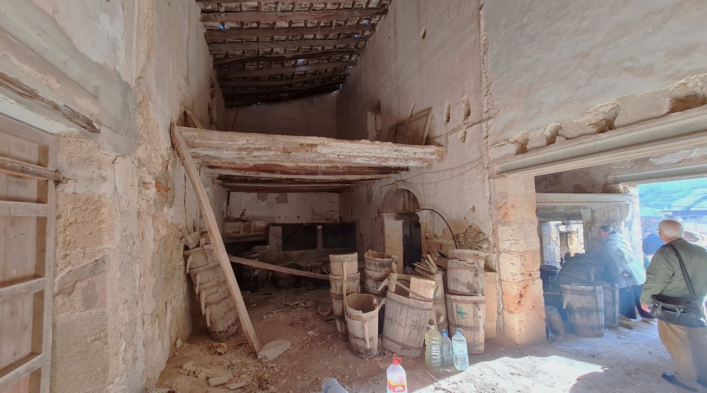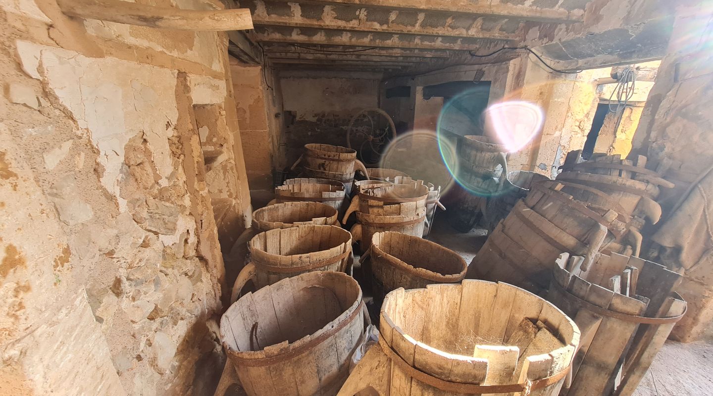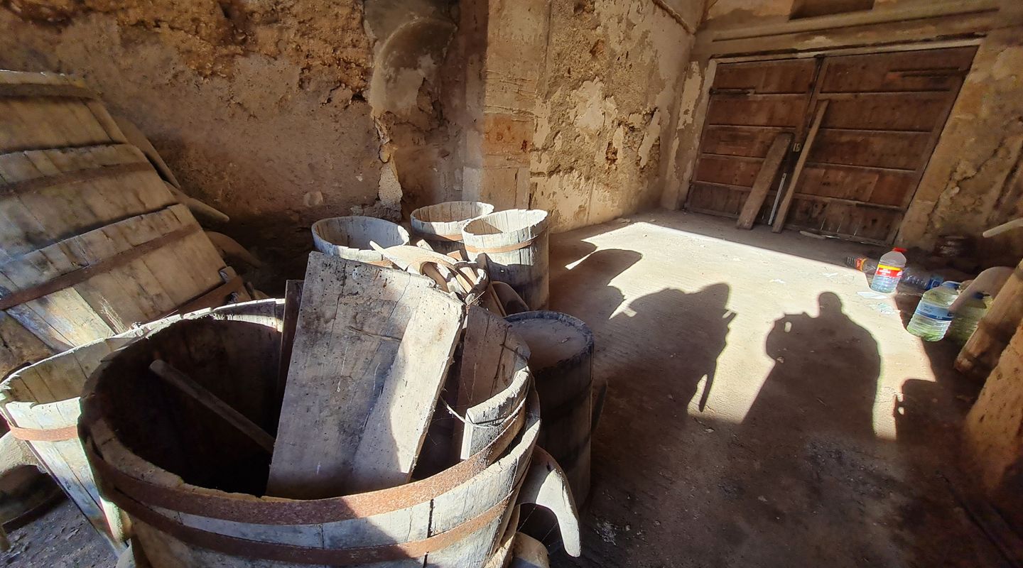 La edificación adyacente es una casa tradicional mallorquina, con estancias diferenciadas como salón, antigua cocina, baño, dormitorios y una terraza-patio que conecta directamente con la bodega.