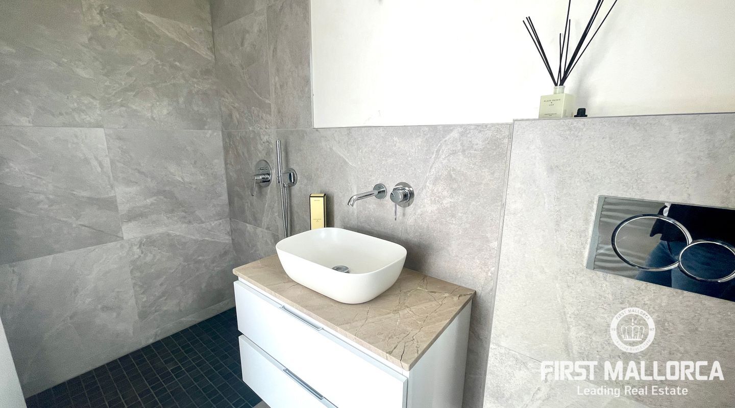 La planta superior es accesible a través de un ascensor interior o una escalera exterior. Aquí se encuentra otro dormitorio con su propio baño y terraza privada, así como una espaciosa suite principal con un baño de concepto abierto y una terraza privada. El ascensor también lleva a la terraza en la azotea, de aproximadamente 70 m², que ofrece impresionantes vistas panorámicas, incluyendo vistas al mar.